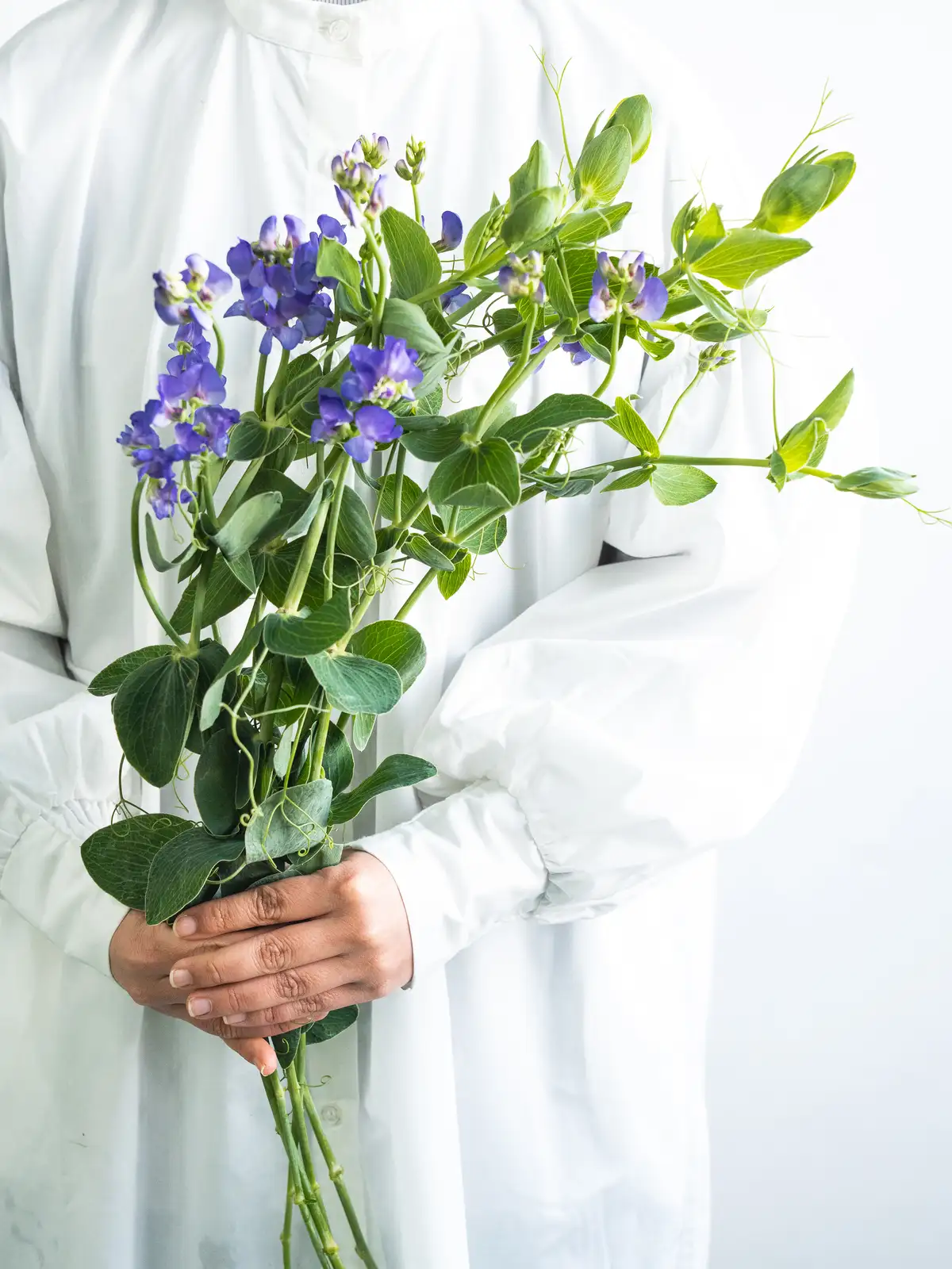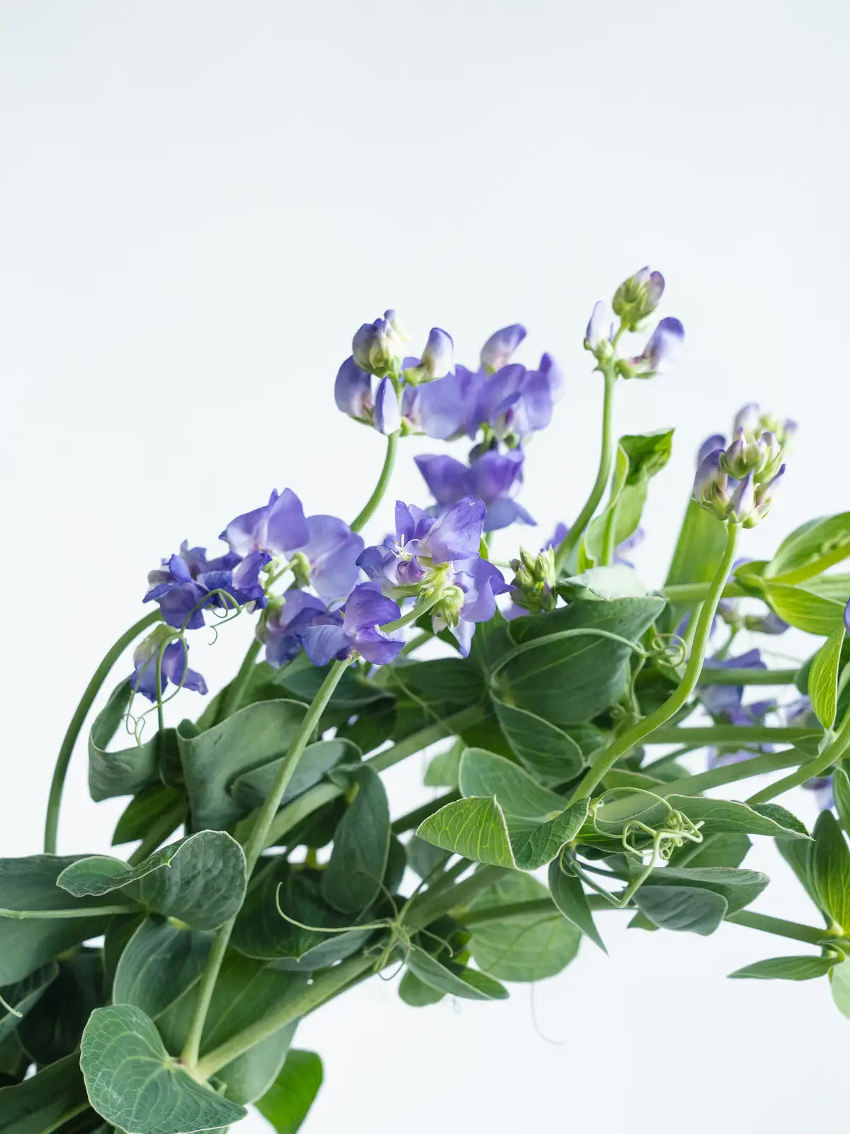 青みのある紫色が印象的な宿根タイプのスイートピー。花弁は軽やかなフリル状で、透明感のある色合いが魅力です。