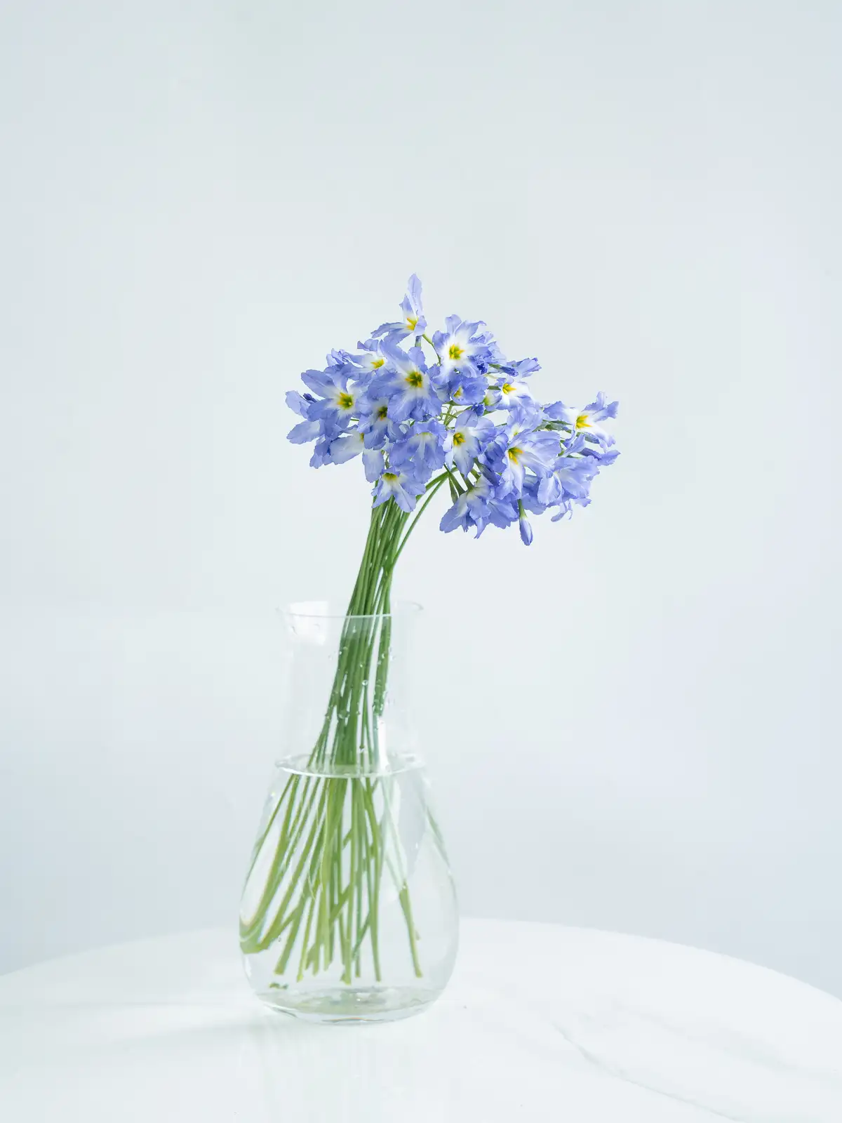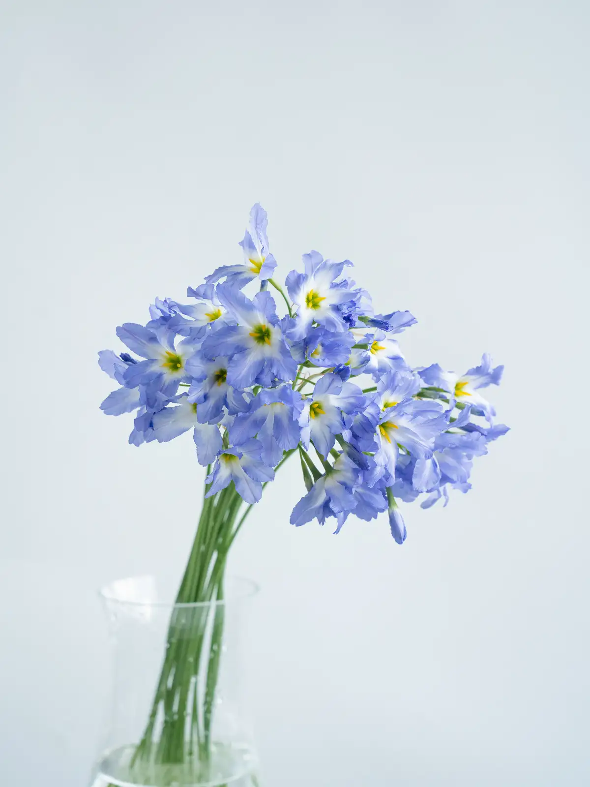 淡い紫色の花弁が星形に開くリューココリーネ。中心部の色の変化が美しく、可憐で軽やかな花姿が特徴です。