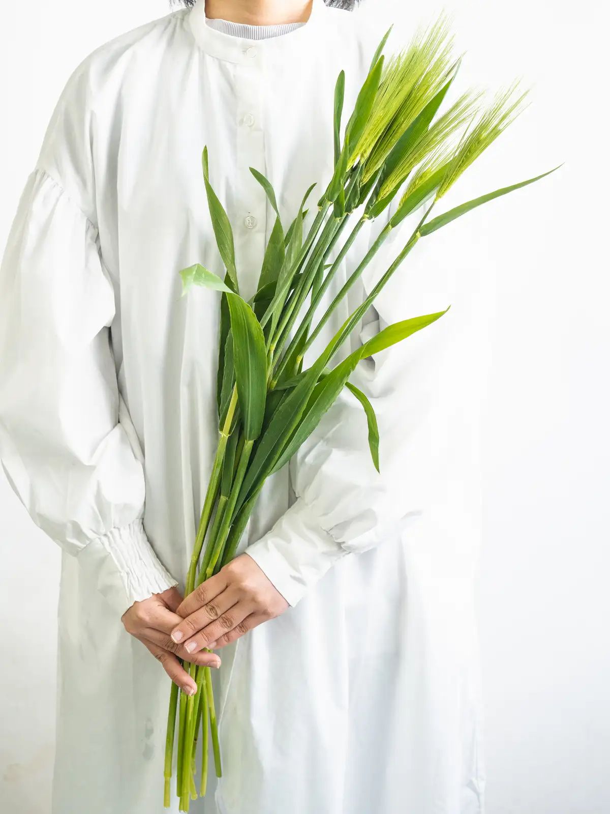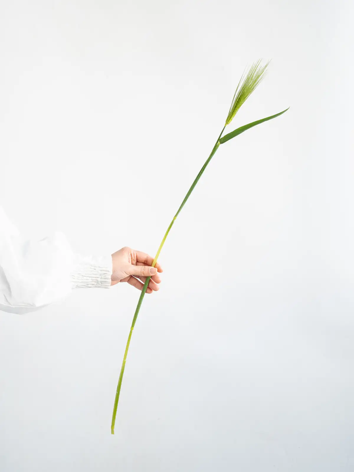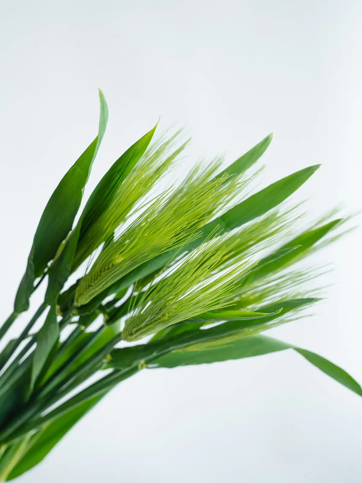 青みを帯びたグリーンの穂が並ぶ六条麦。穂のラインがすっきりとしており、軽やかな質感が特徴です。