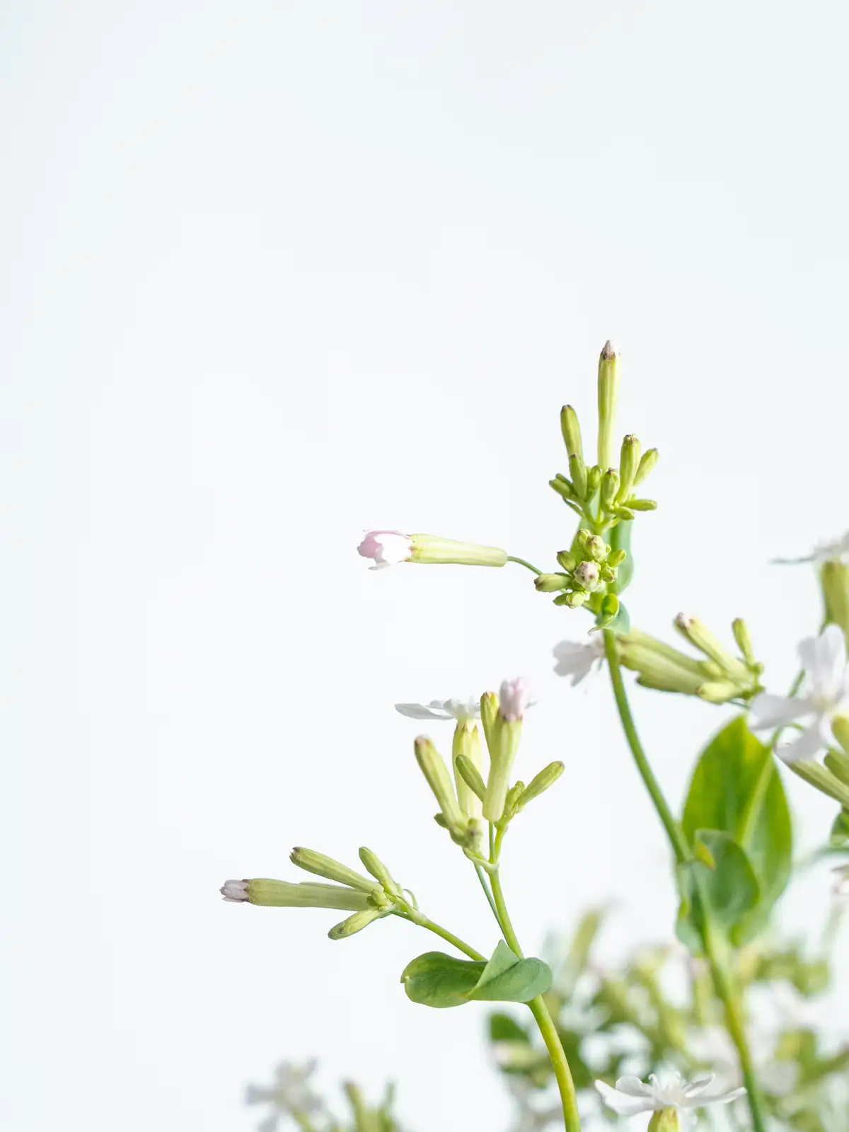 小さな鈴のような花(苞)が連なるグリーンベルのピンク系品種。淡いピンクがほのかに色づき、可憐な印象です。