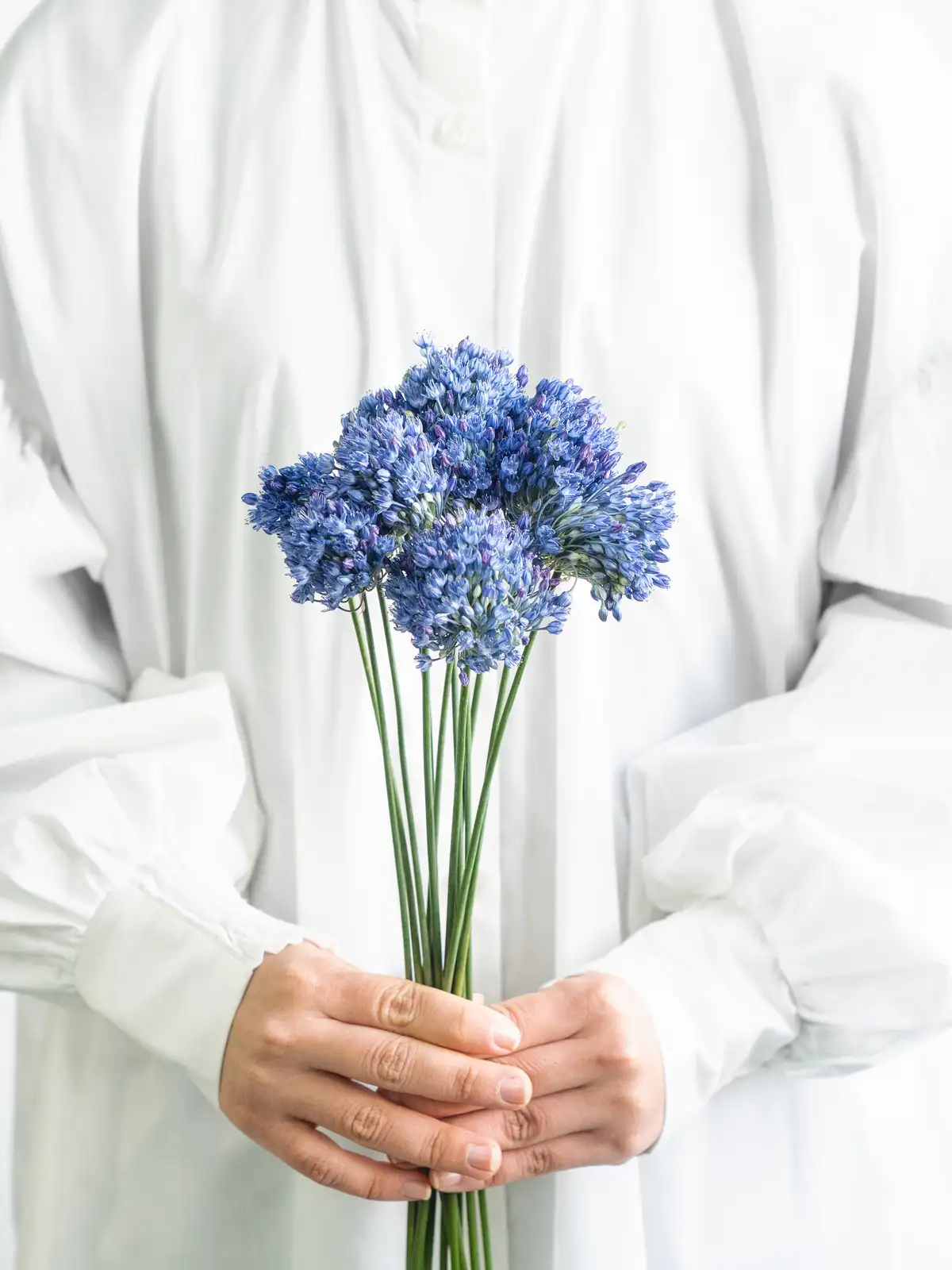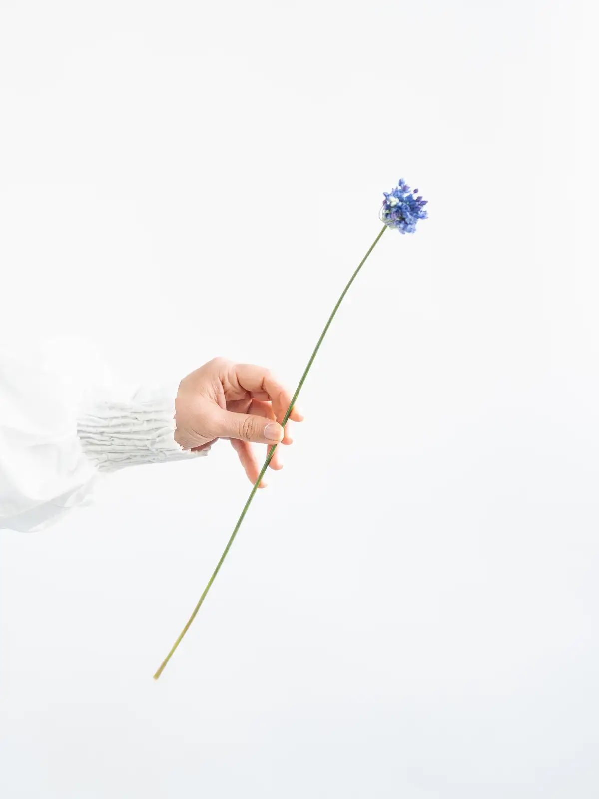 小花が球状に集まり、丸い花房をつくるアリウム。紫色の発色が美しく、花房の立体感が特徴です。
