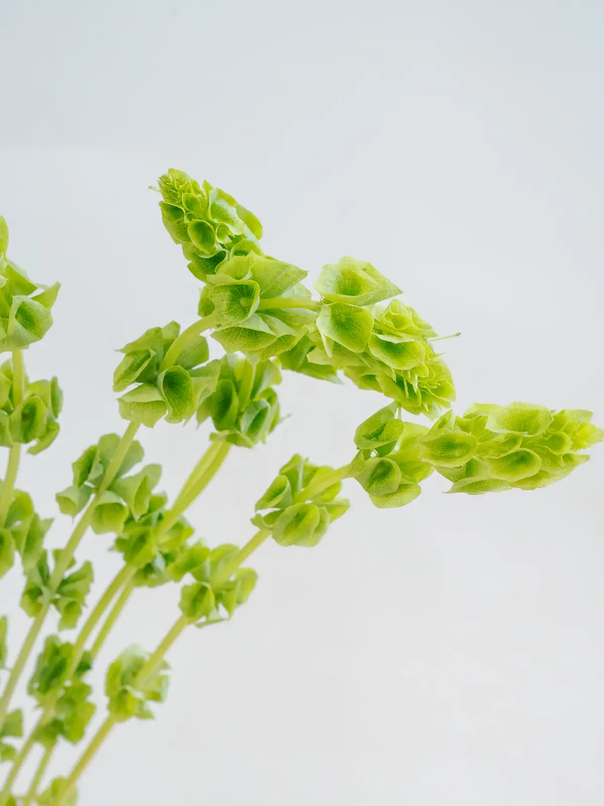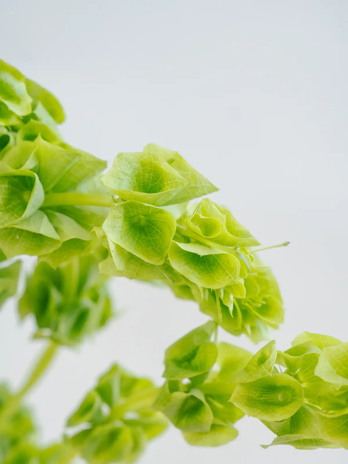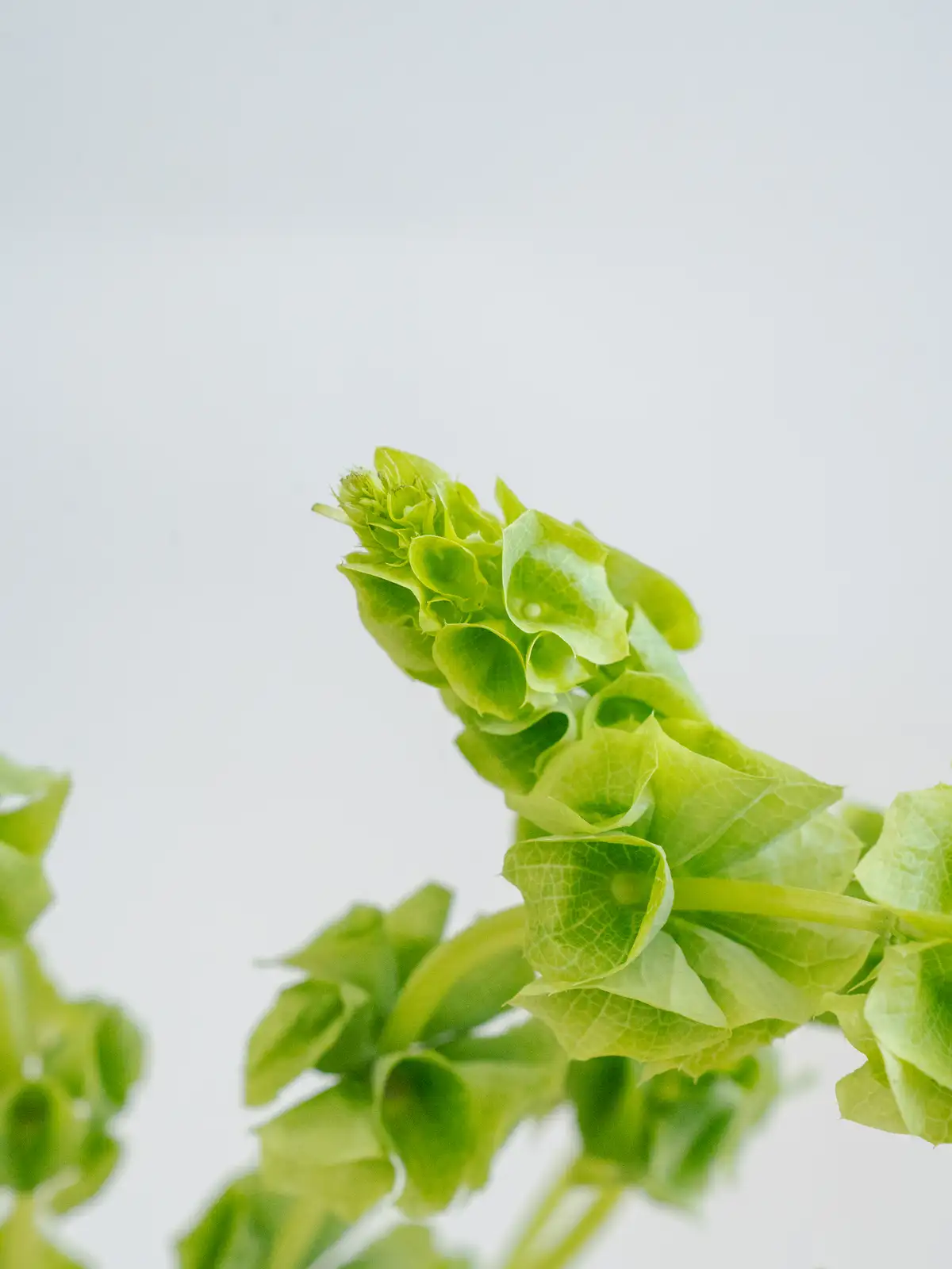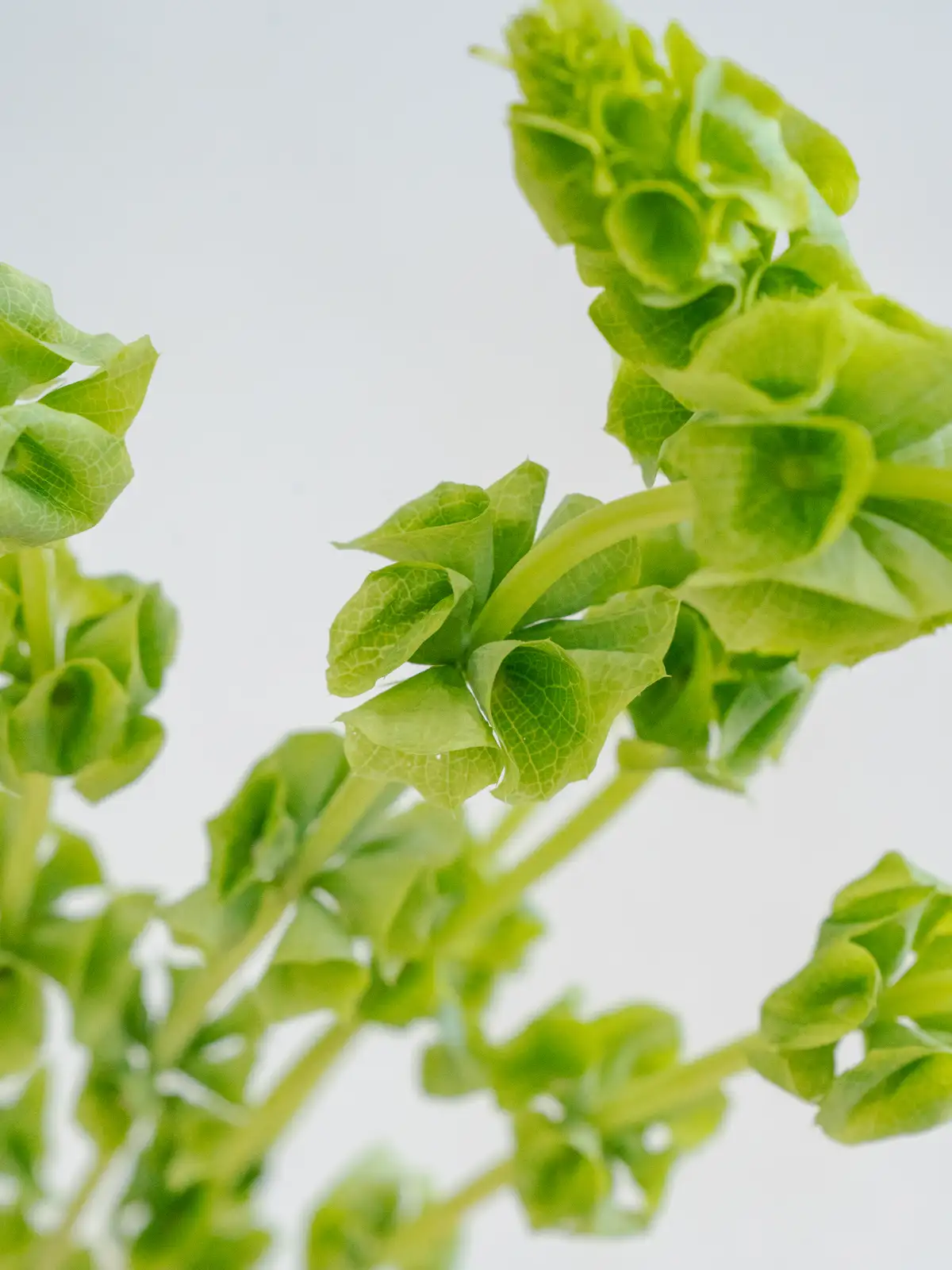 緑色の筒状の萼(がく)が階段状に連なる個性的な花姿。立体感があり、独特のフォルムが目を引くモルセラです。