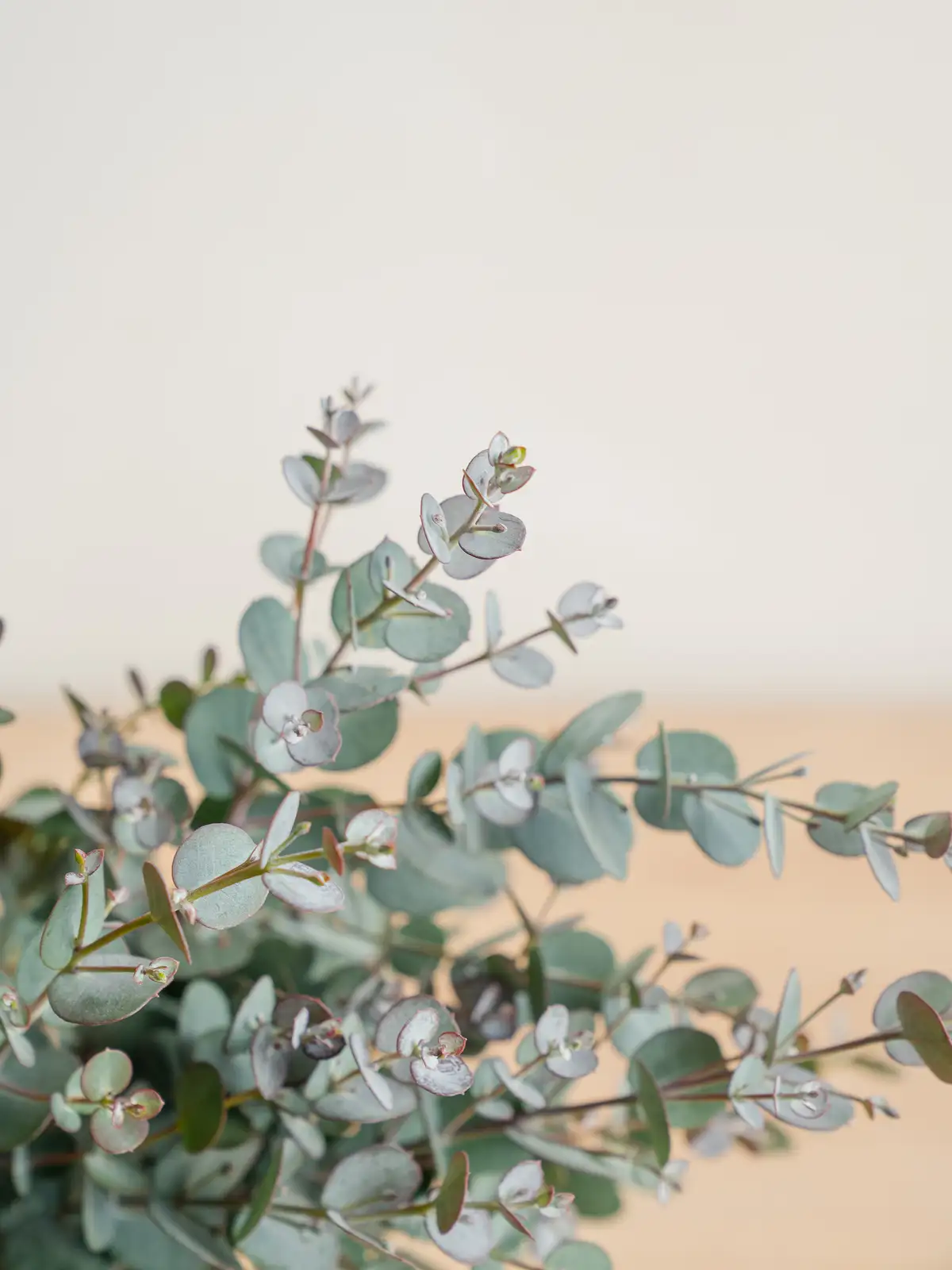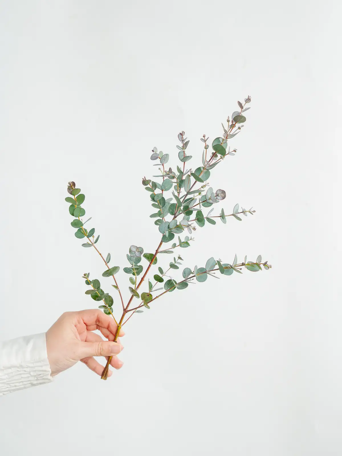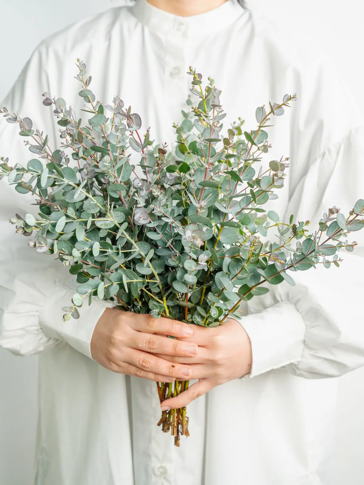 小さめの葉が密につくユーカリ。枝先まで葉付きがよく、軽やかなボリューム感と爽やかなグリーンが特徴です。
