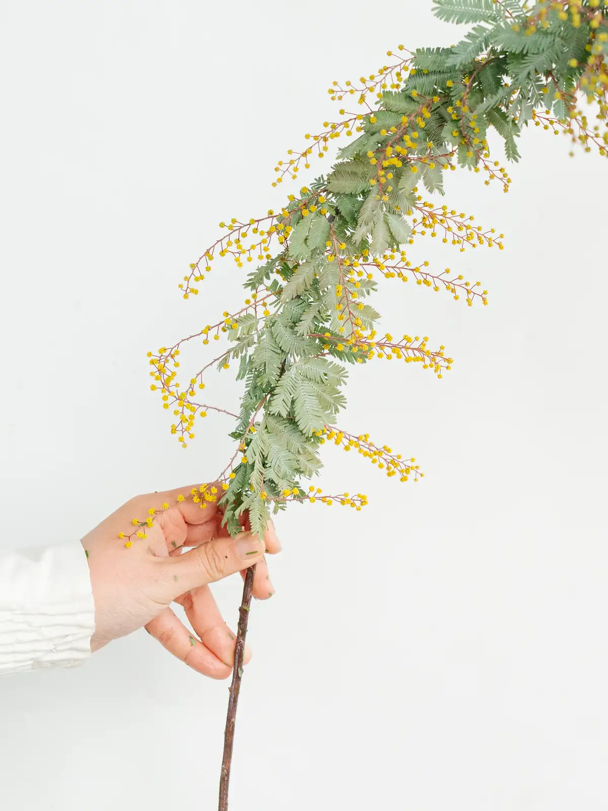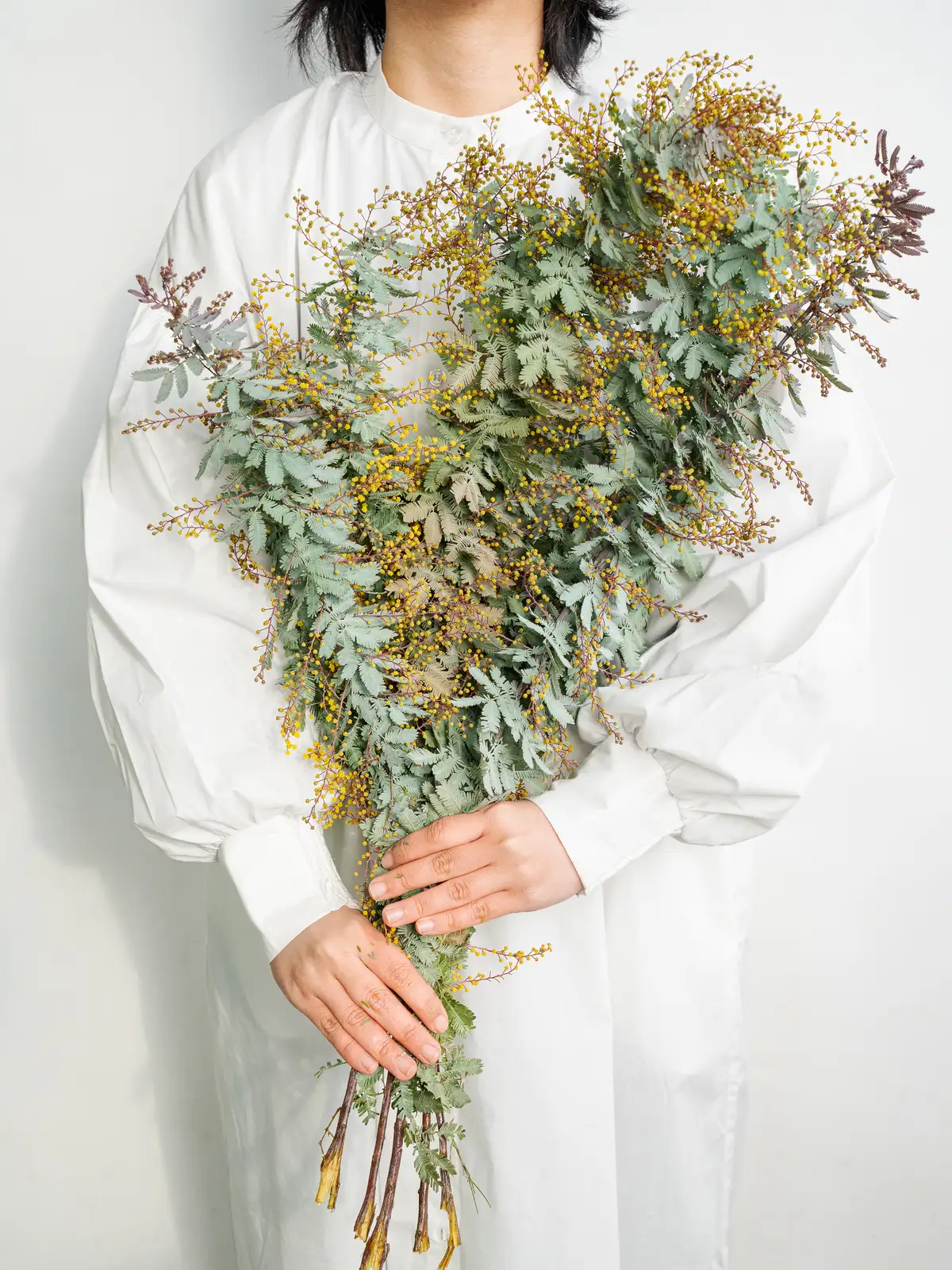 葉に赤紫〜ブロンズの色味が出るアカシアの品種。落ち着いた色合いと繊細な葉姿が特徴で、シックな雰囲気を作れます。