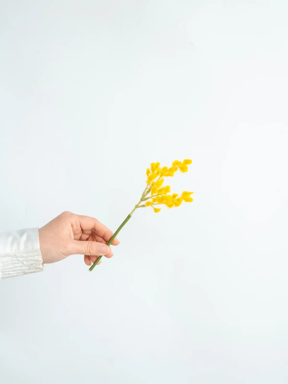 春の代表的な花材ミモザ。やわらかなイエローが魅力の造花です。水やり不要で美しさが長く続き、店舗ディスプレイや撮影、アレンジメントのベースとして幅広く活躍します。空間に明るさと軽やかさを添えてくれる一本です。