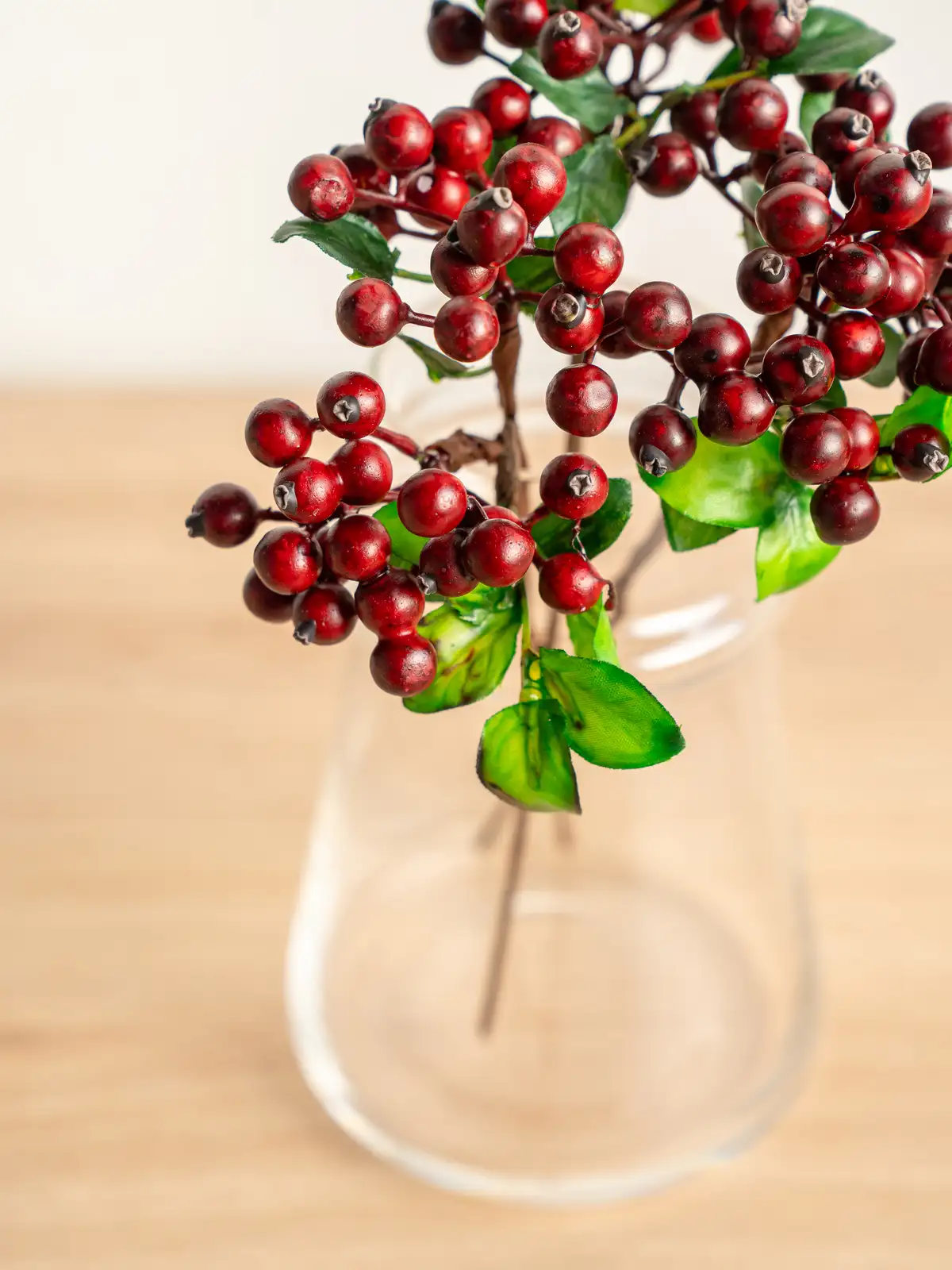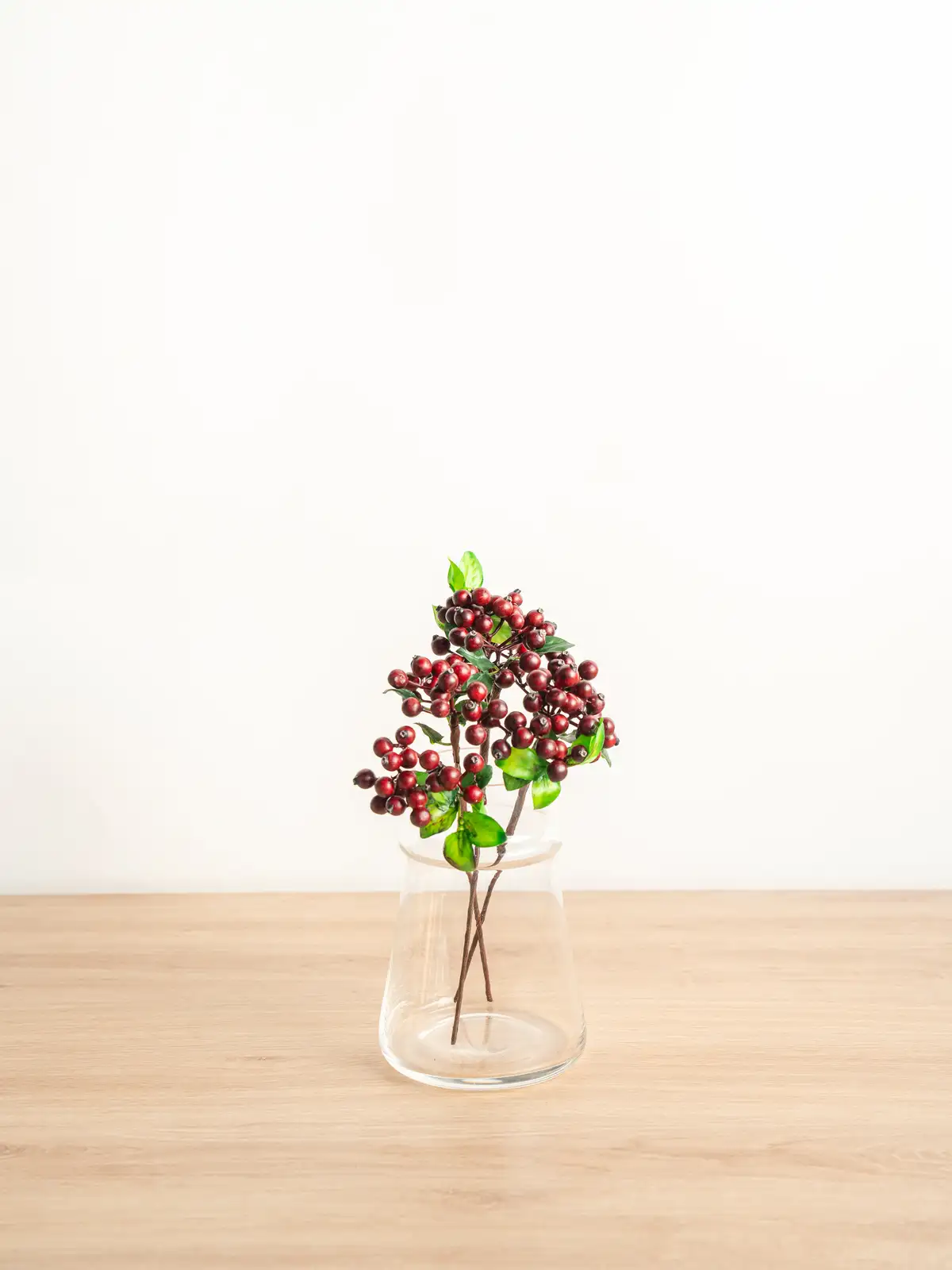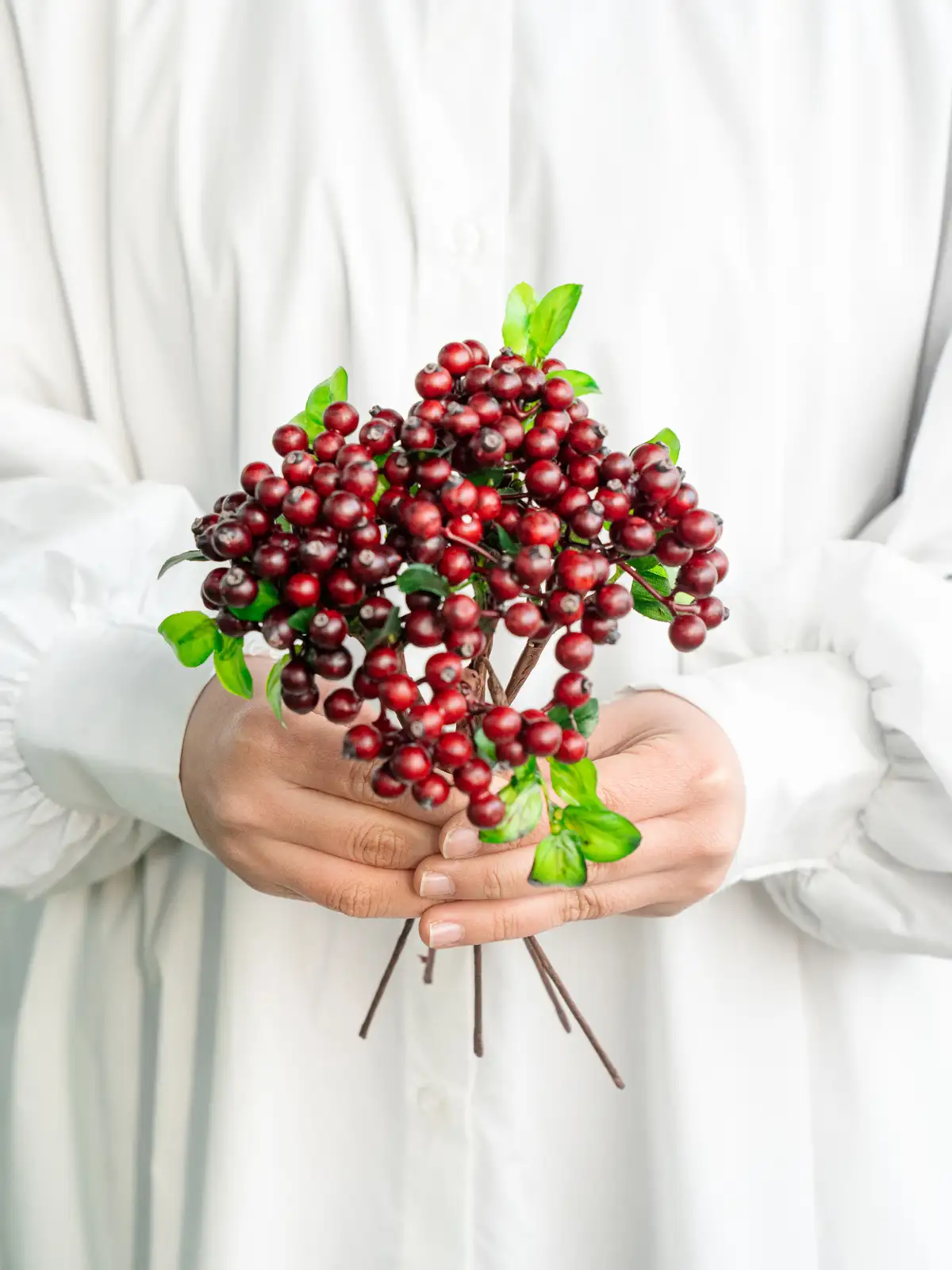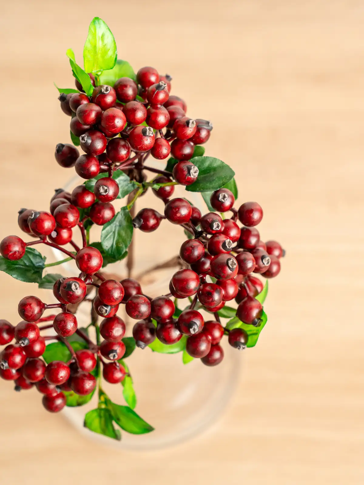 季節感とアクセントといえばこの花材、赤いベリーのピックタイプの造花です。実ものならではの立体感が装花やディスプレイに奥行きをプラスします。管理不要で手軽に差し込める、使い勝手の良いアイテムです。