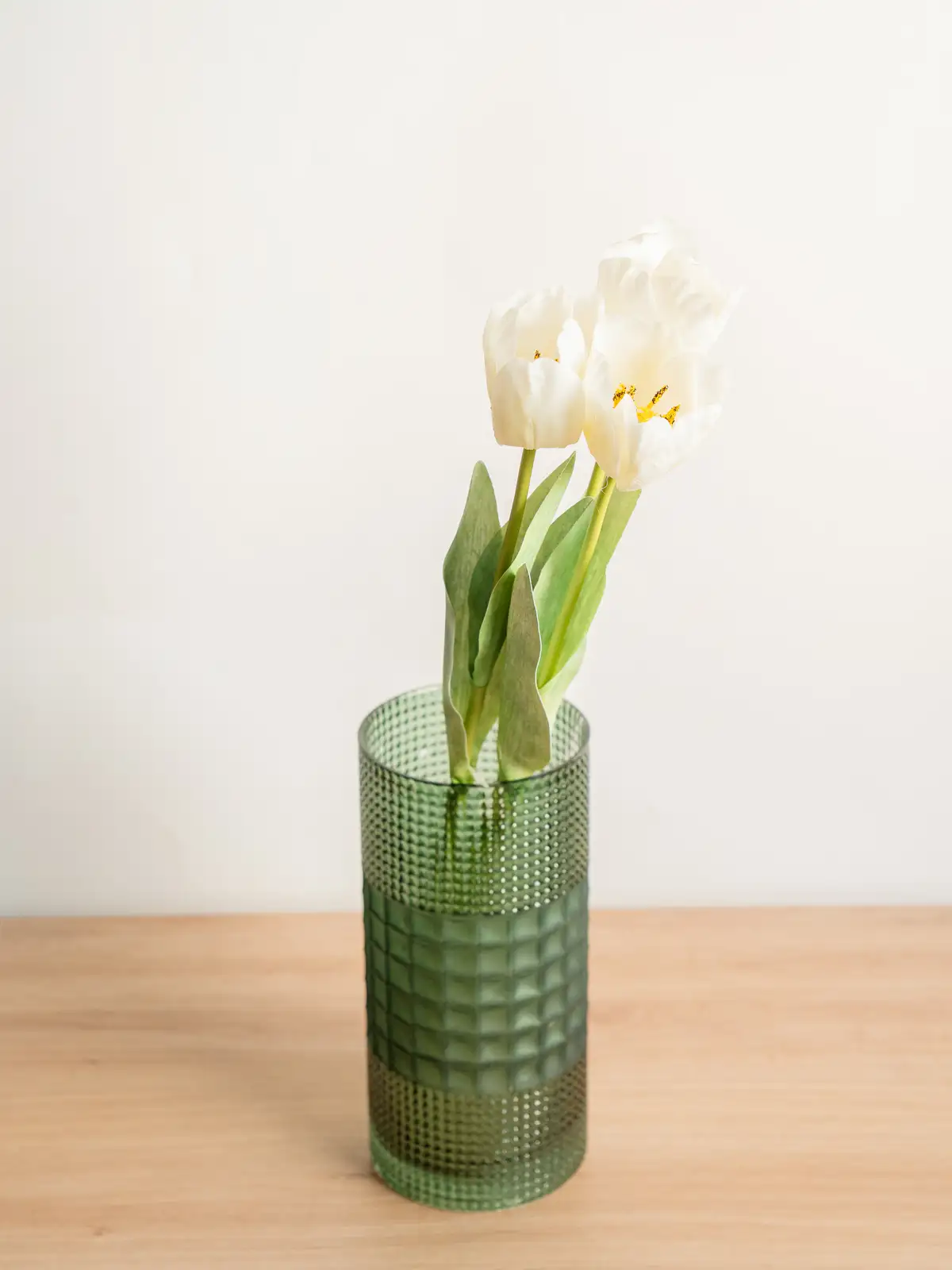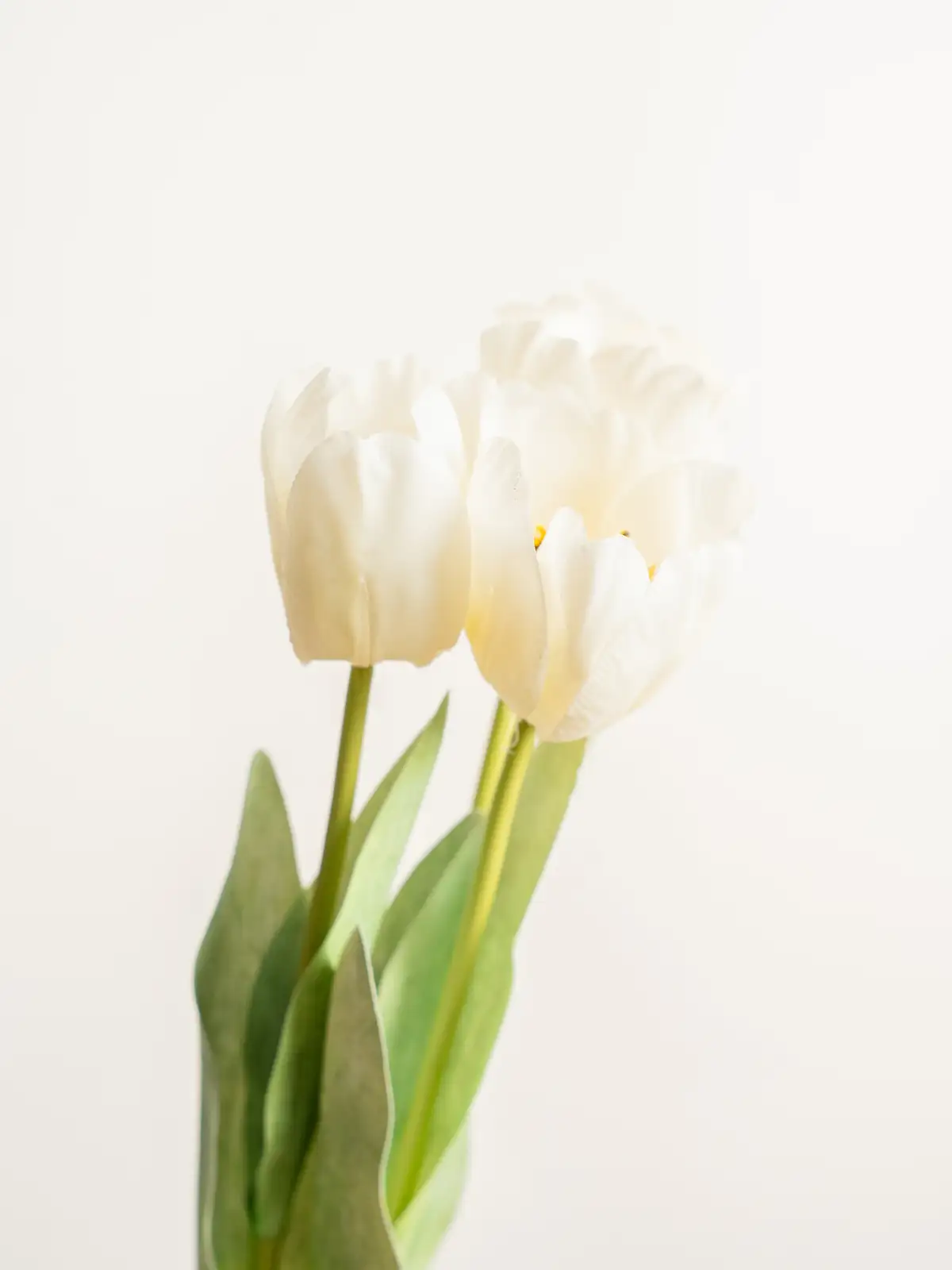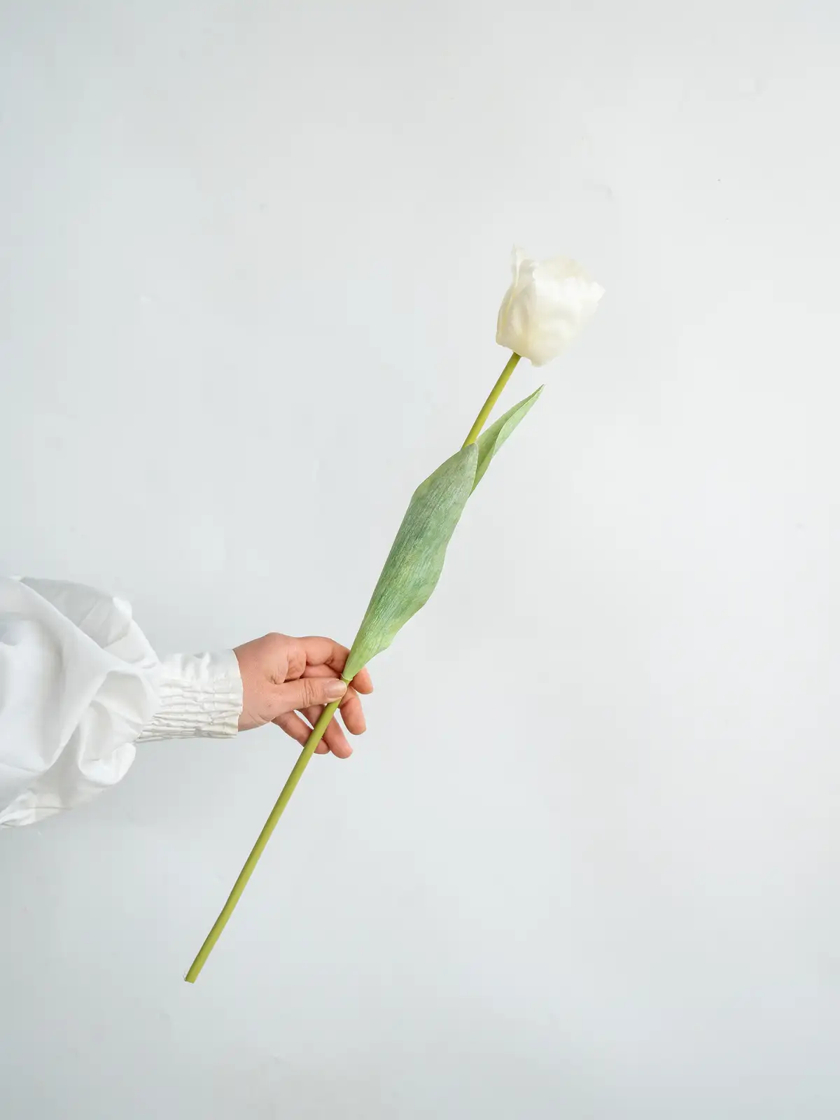 春の象徴といえばこの花材、白いチューリップの造花です。すっきりとした花姿が空間に清潔感と抜け感を演出します。管理不要で扱いやすく、季節ディスプレイに取り入れやすい一本です。