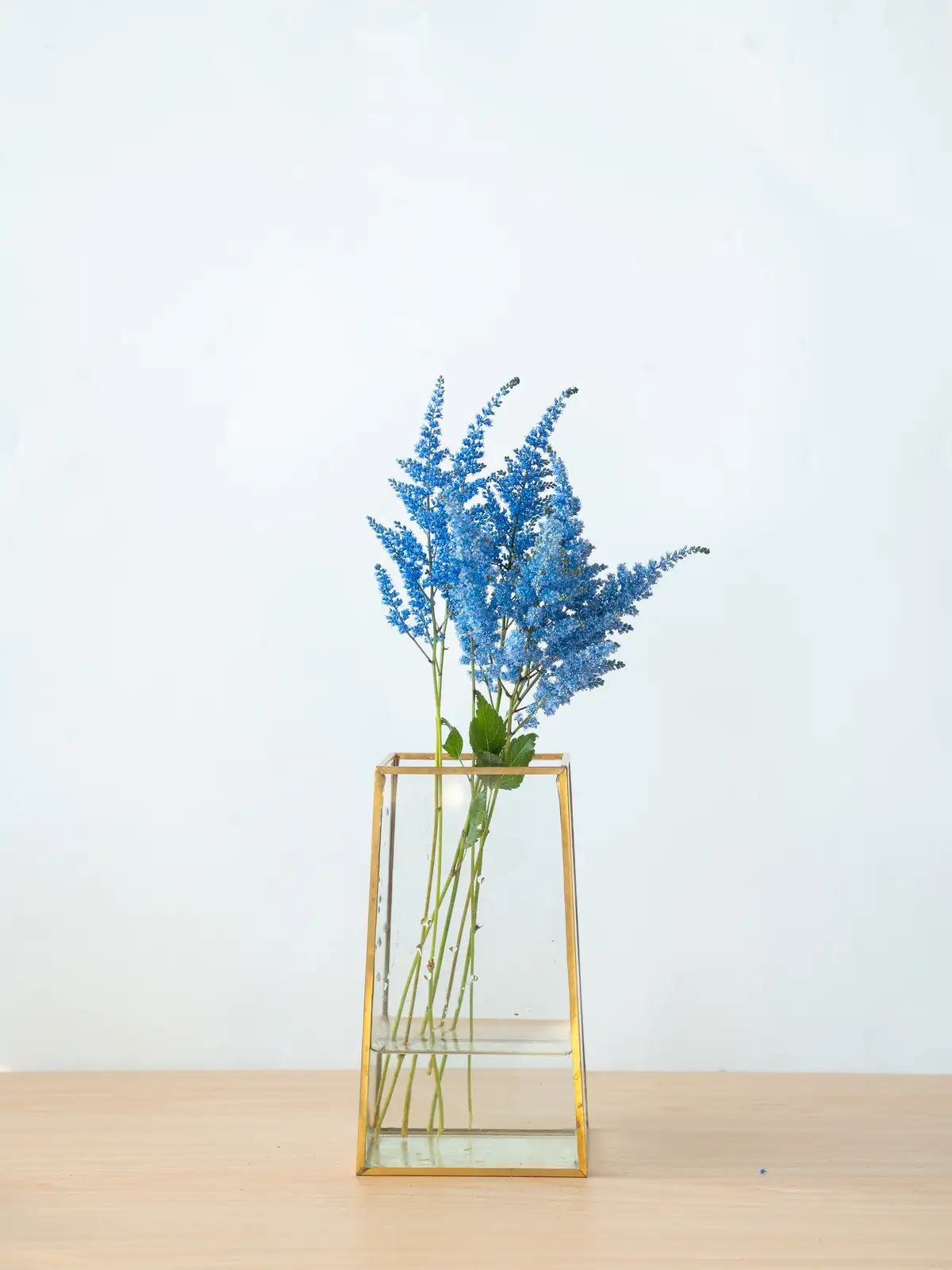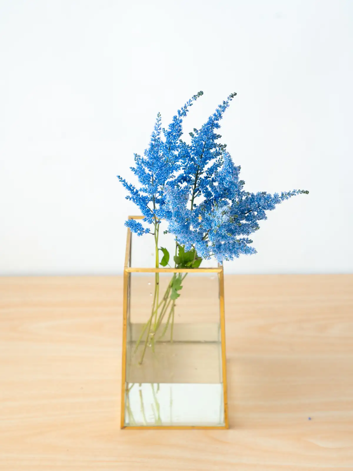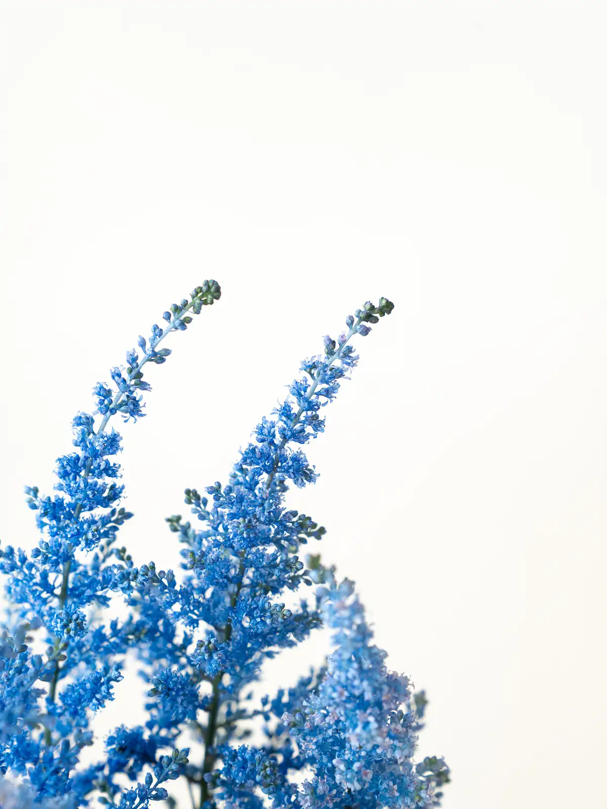 アスチルベの穂状花を青系に染めた素材。繊細な花房の質感はそのままに、鮮やかな色味がアクセントになります。