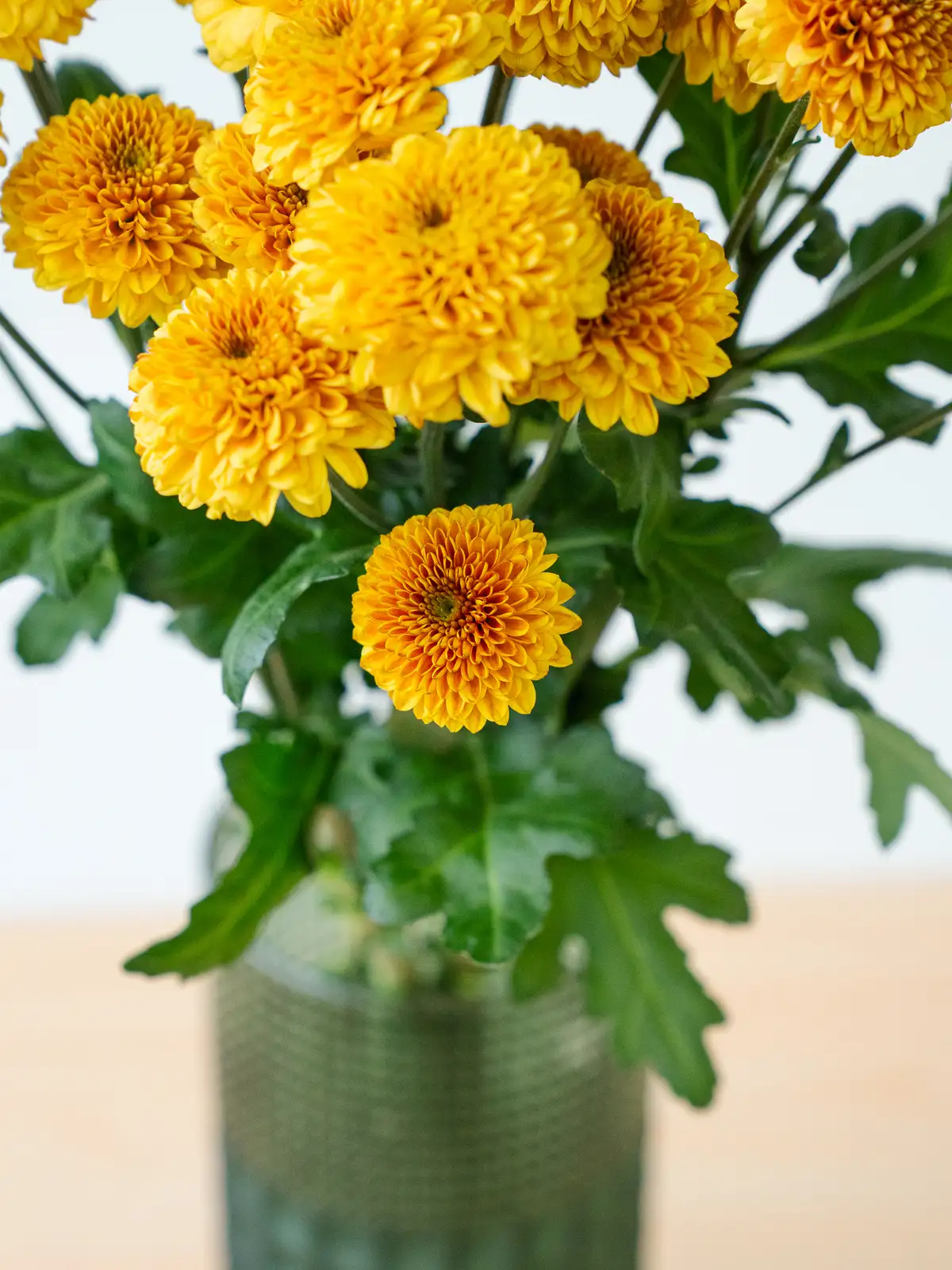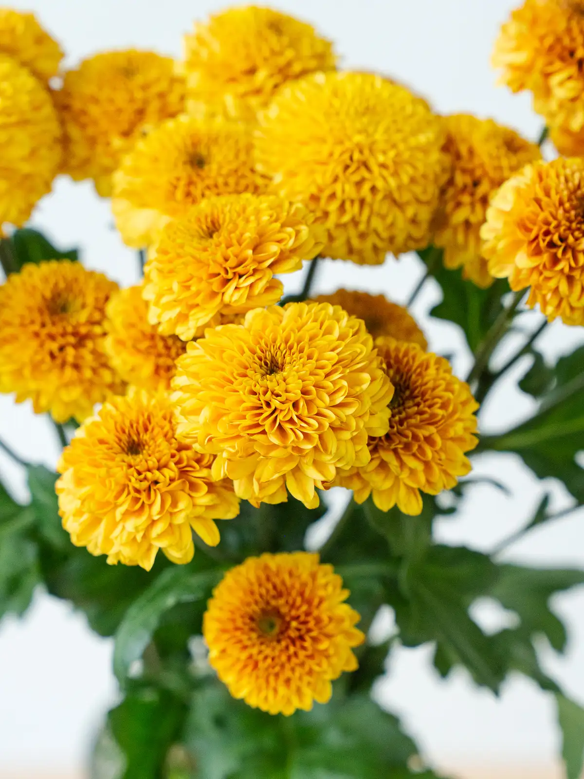 明るいオレンジ色の小輪花が枝分かれして咲くスプレー菊。花弁は密に重なり、鮮やかな発色が特徴です。
