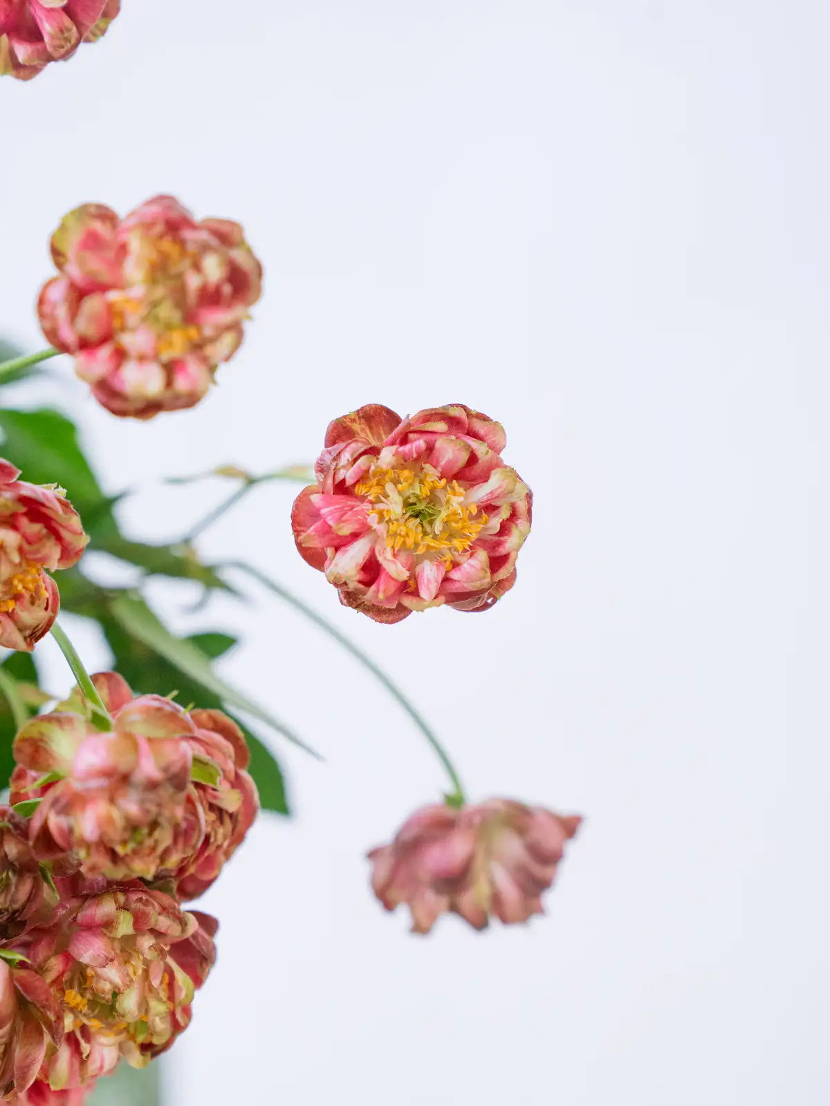淡いピンク色の小輪花がまとまって咲くスプレー菊。花弁が細かく、ふんわりとした柔らかな印象です。