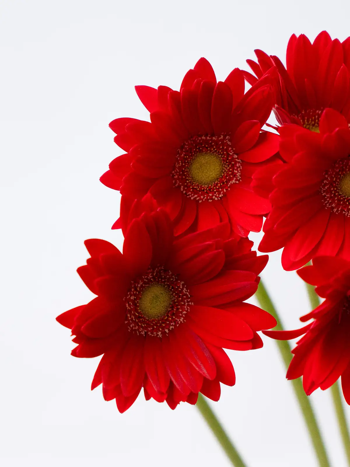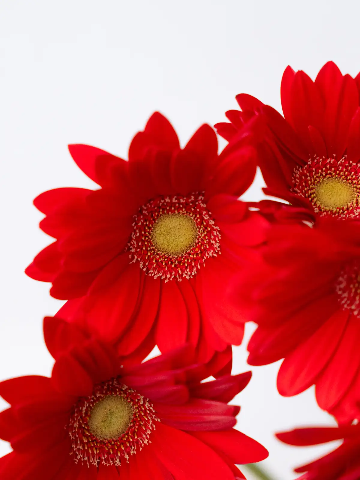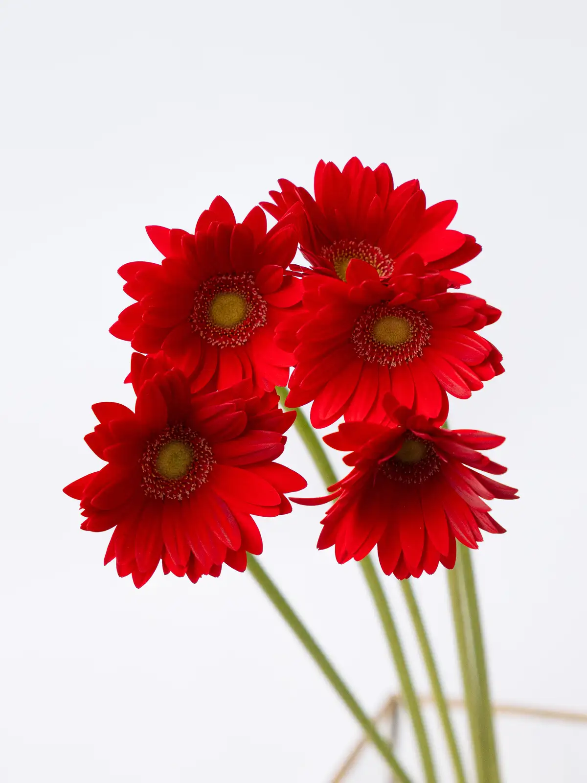 濃い赤色の花弁が印象的なガーベラ。中心部とのコントラストがはっきりしており、鮮やかな発色が特徴です。