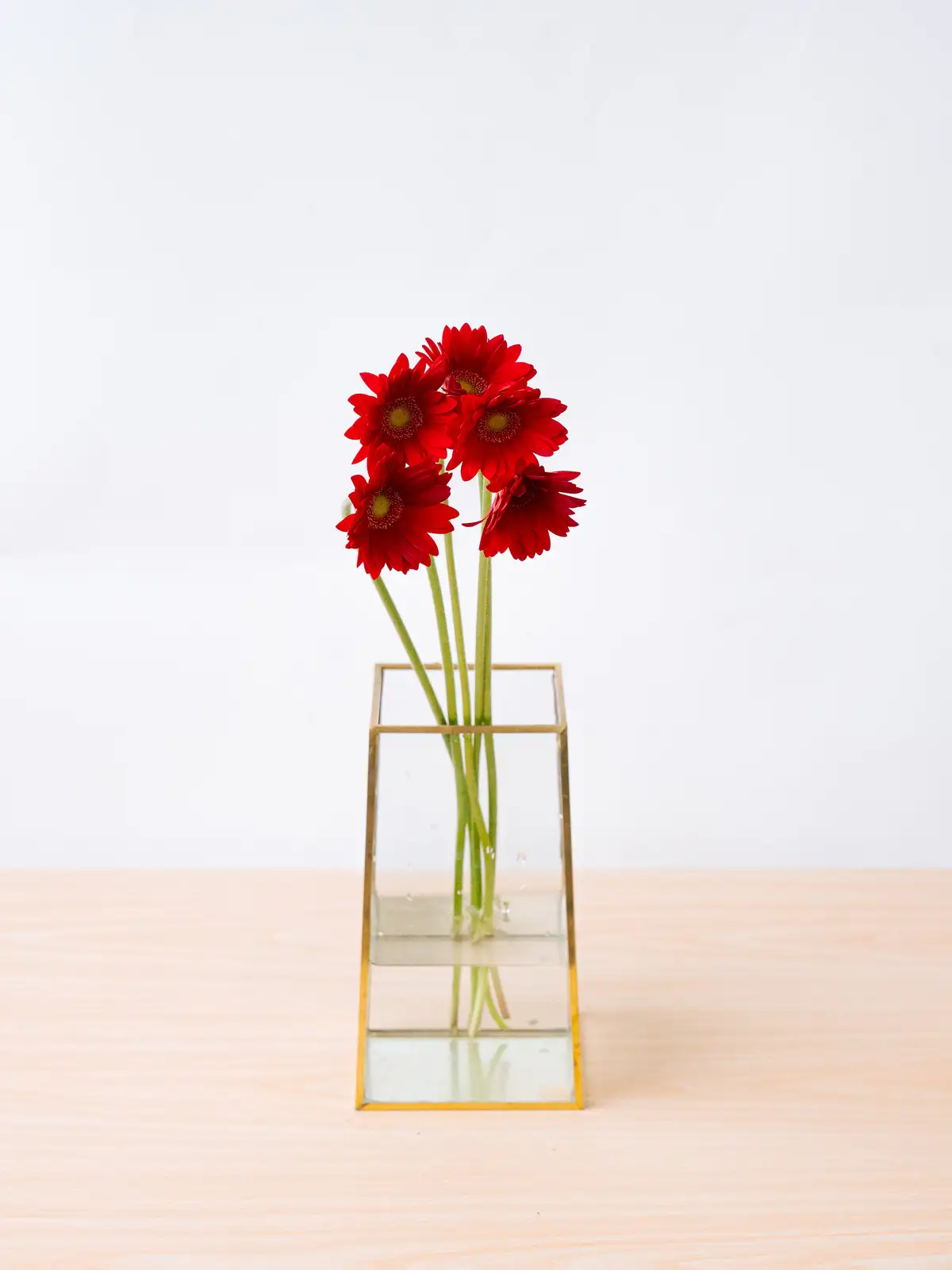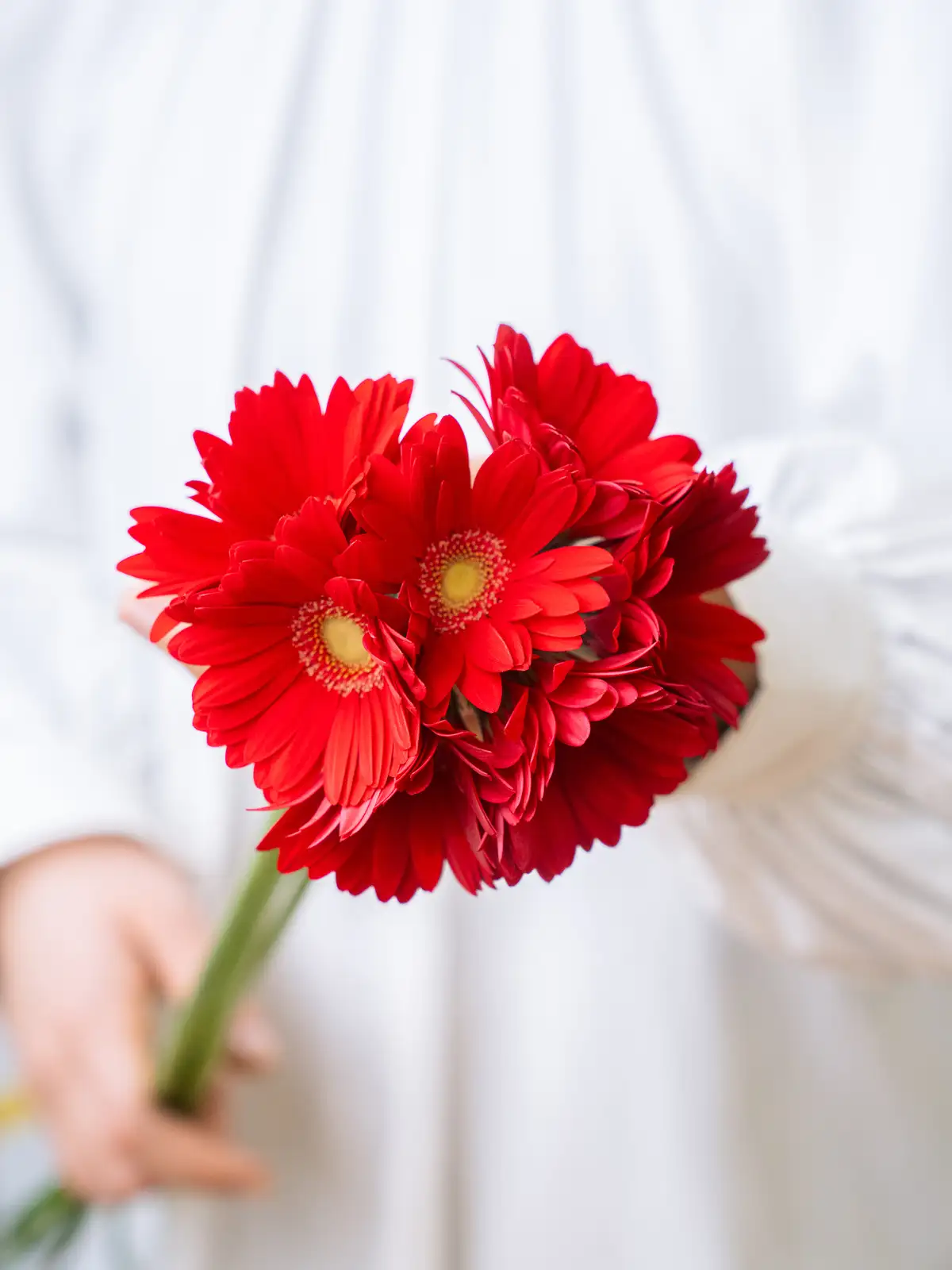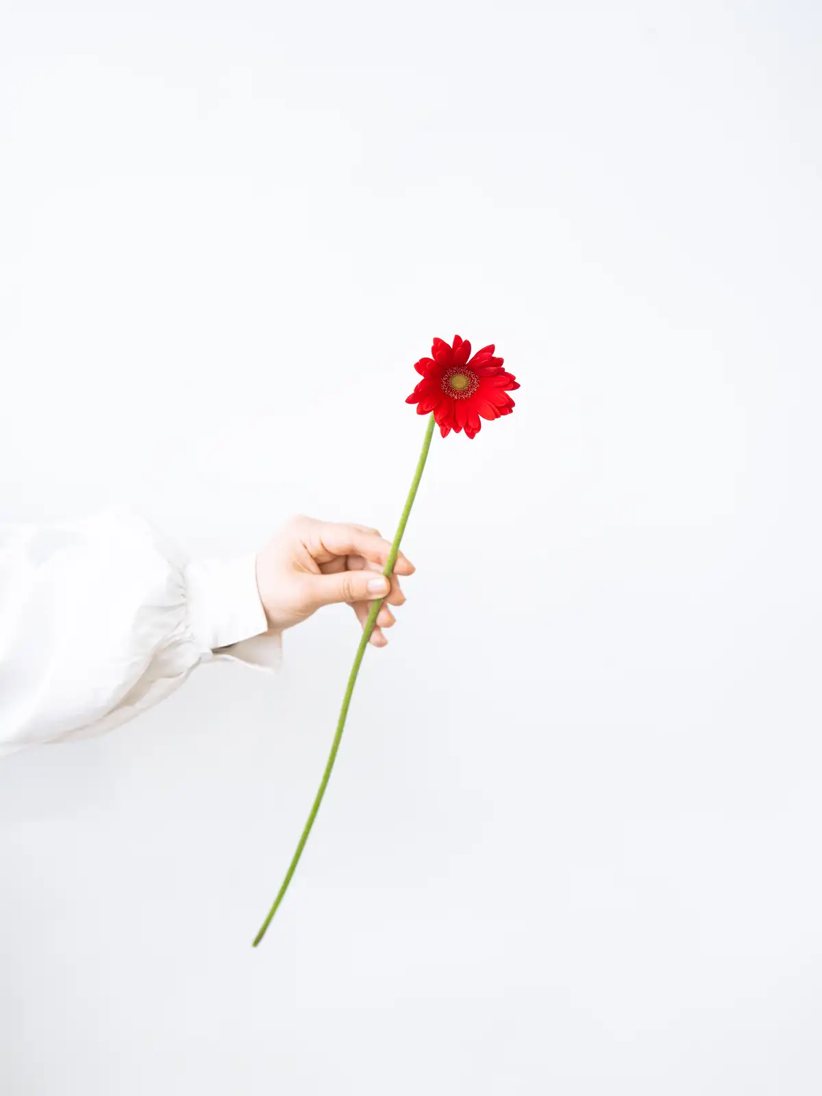 濃い赤色の花弁が印象的なガーベラ。中心部とのコントラストがはっきりしており、鮮やかな発色が特徴です。