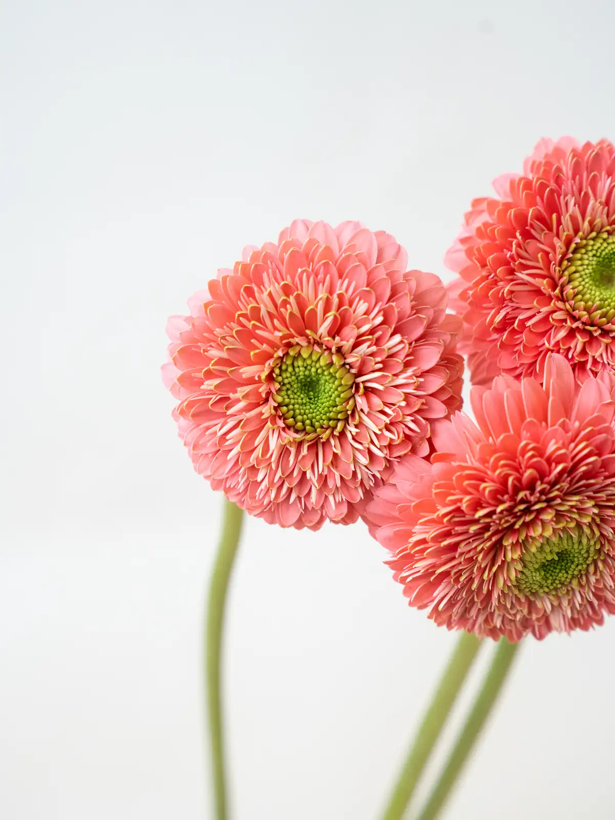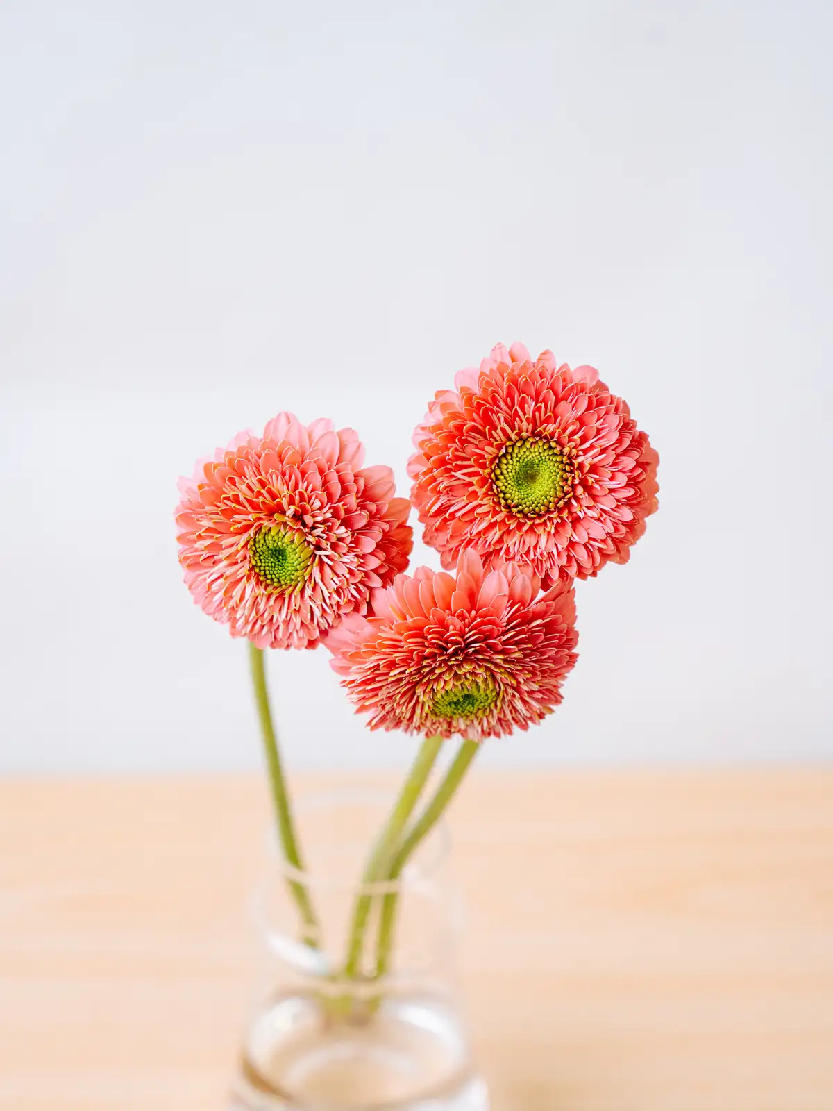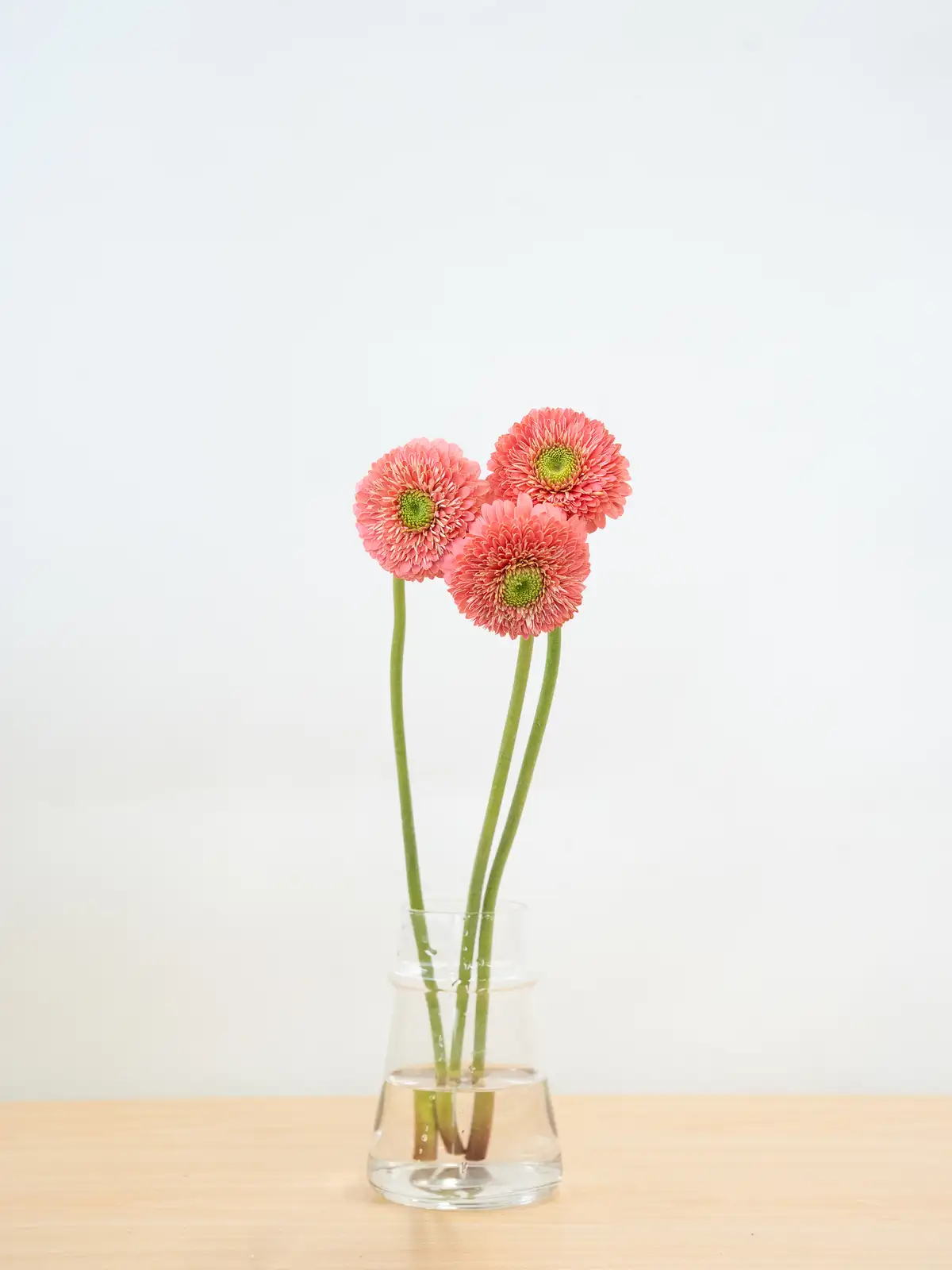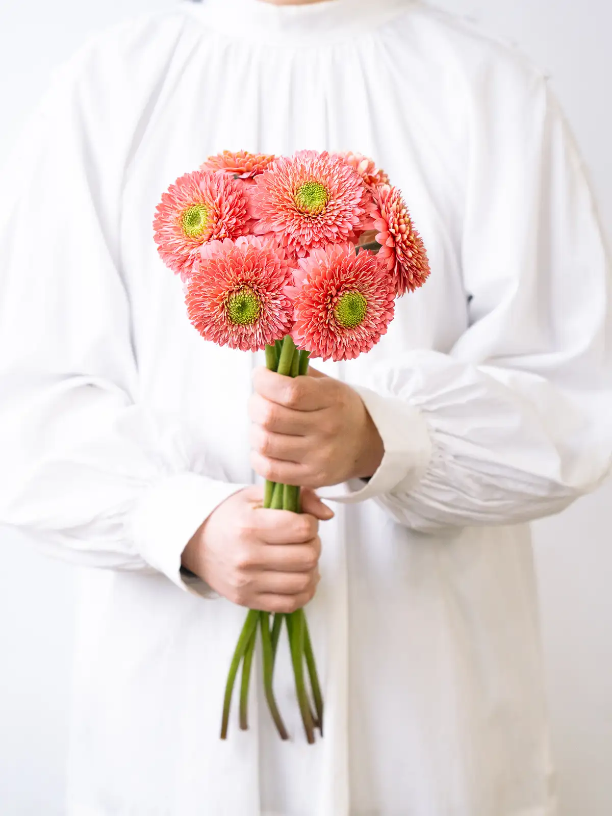 明るいピンク色の花弁が可愛らしいガーベラ。花形は整い、軽やかで華やかな印象を与えます。