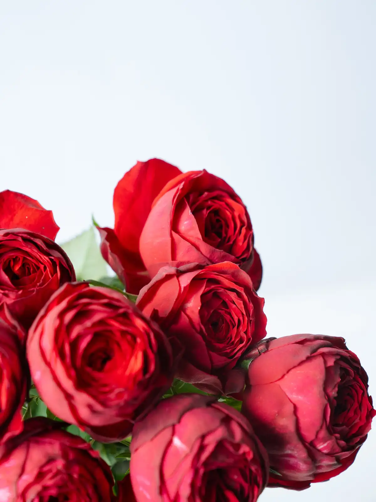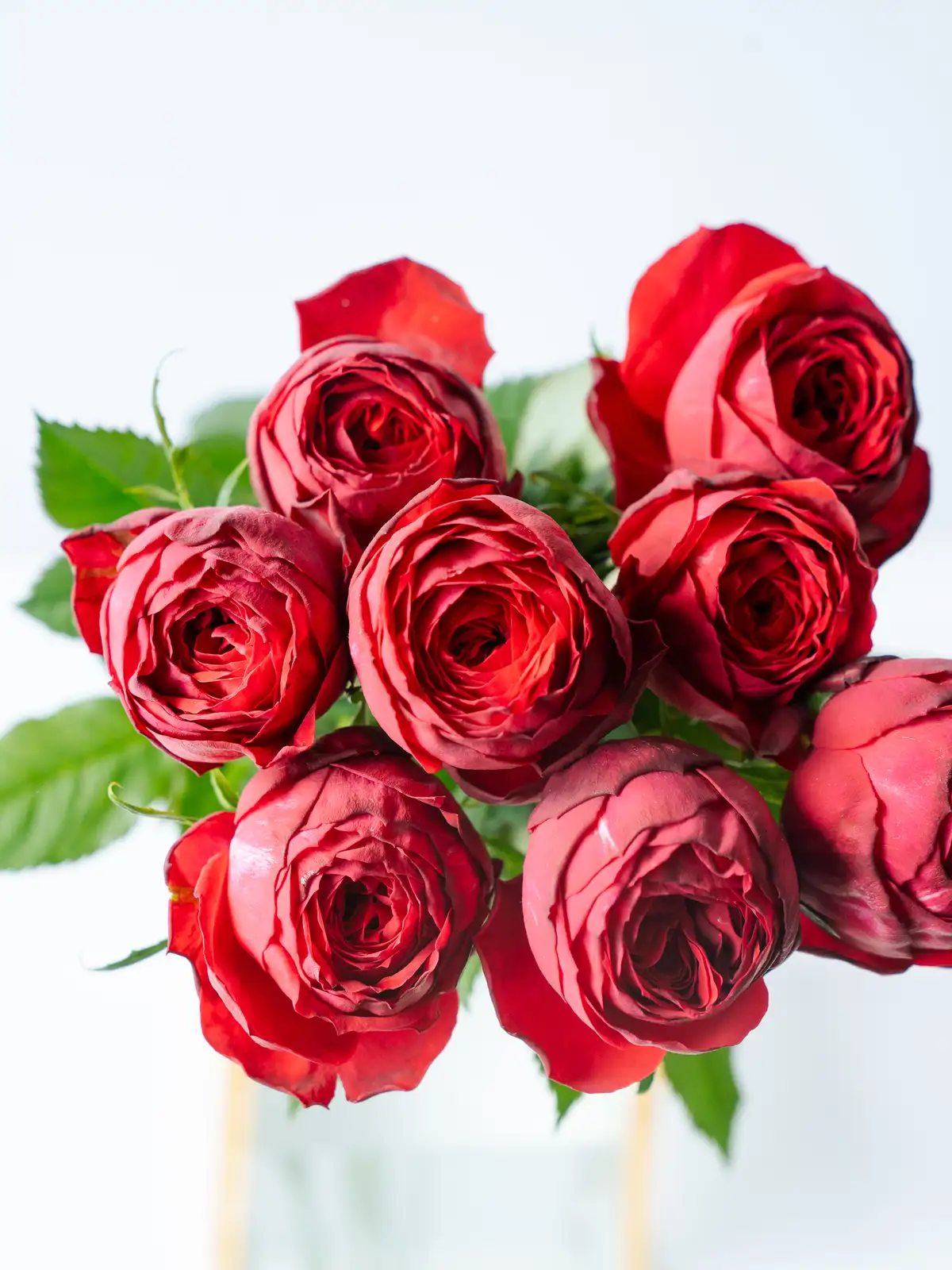 花弁がぎっしりと重なり、ラナンキュラスのような咲き方が特徴のバラ。赤色の花姿にしっかりとしたボリューム感があります。