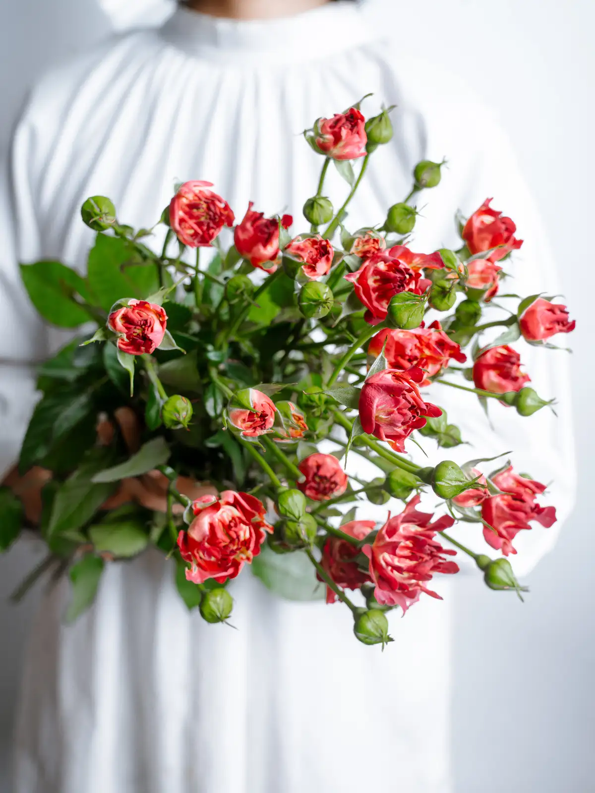 入荷した花は1本ずつ丁寧に水揚げ処理を行い、発送までしっかり管理。斜め切り・ハンマー叩きなど、花に合わせた水揚げを行います。届いた瞬間から、美しく咲く準備が整った状態でお届けします。
