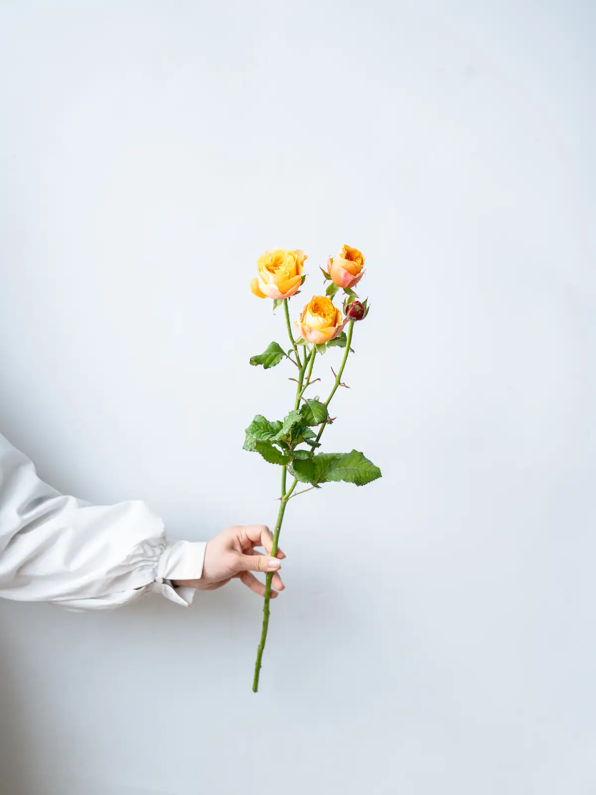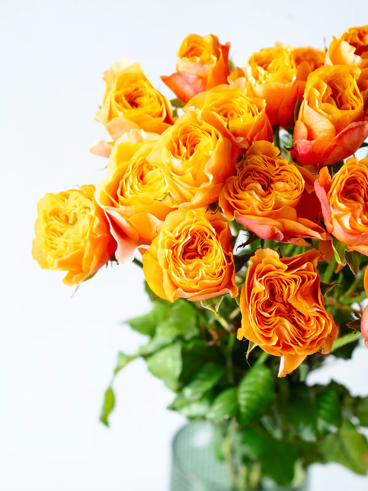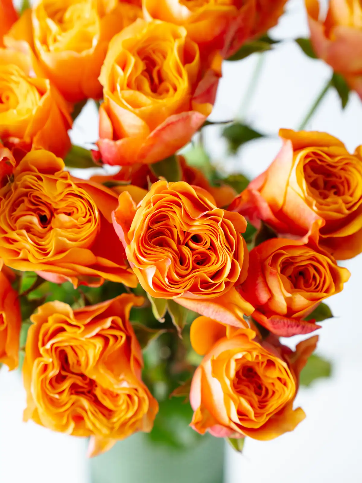 オレンジピンク系の花色が特徴のスプレーバラ。明るく温かみのある色合いで、まとまりのある花付きです。