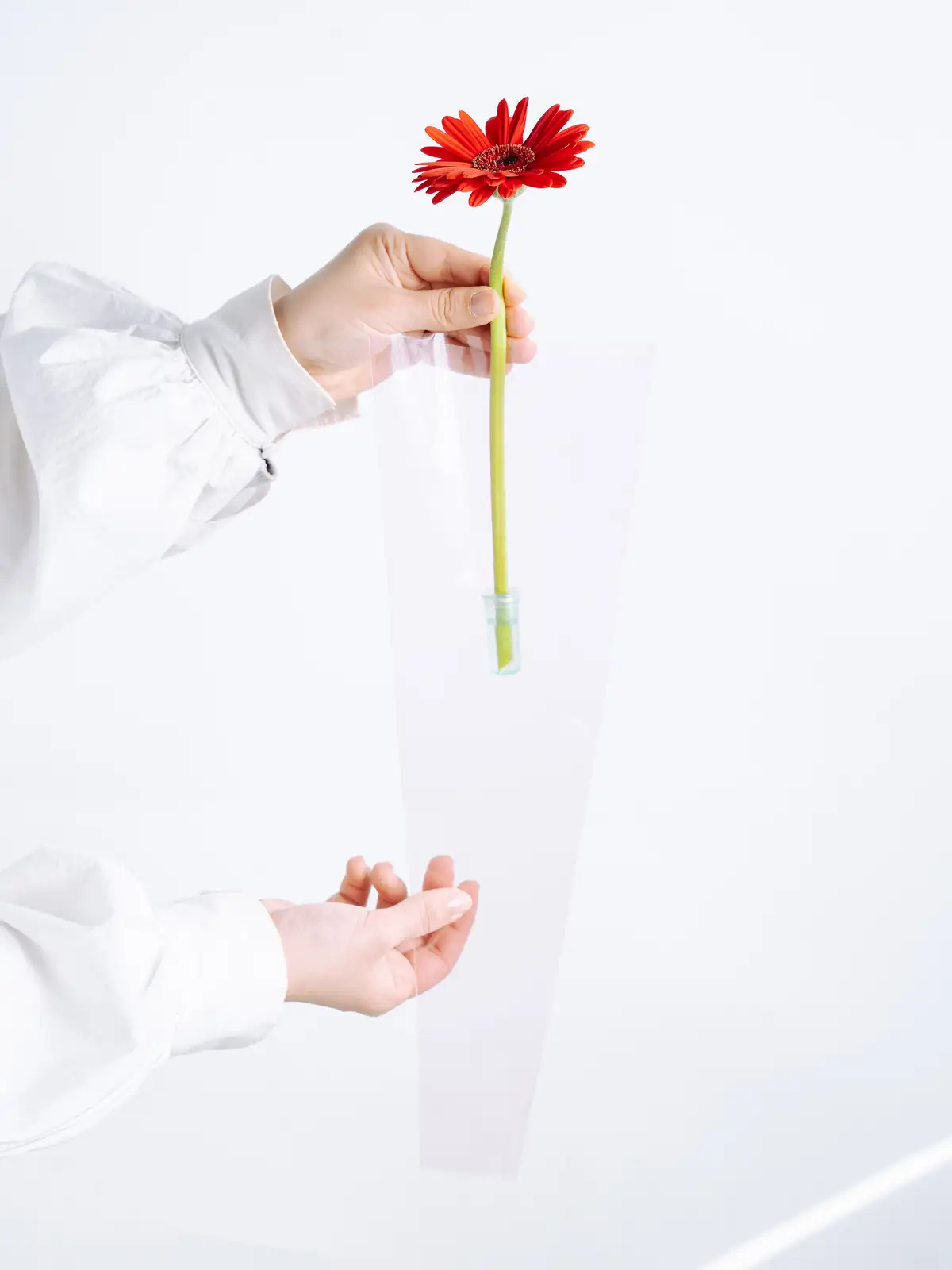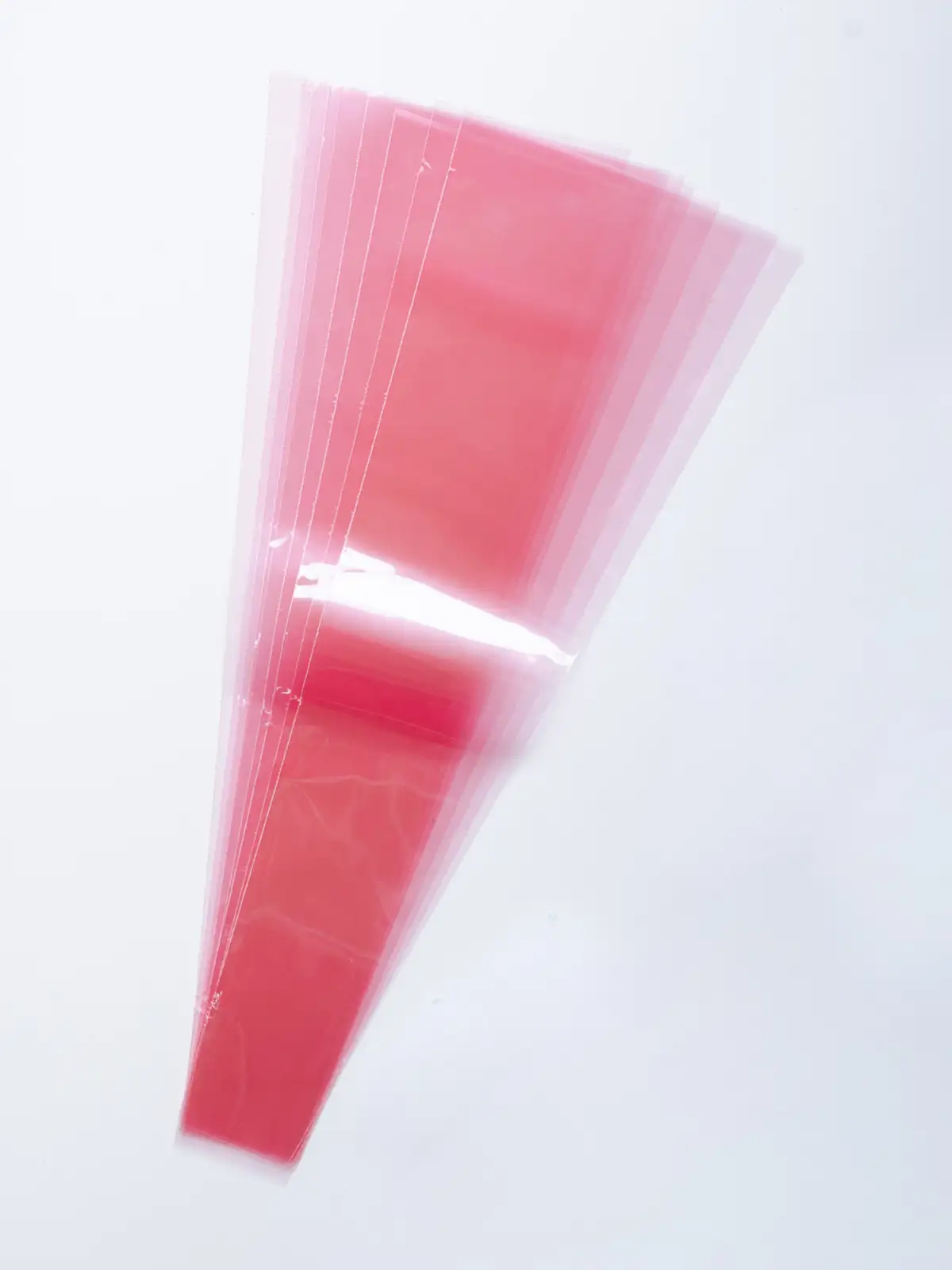 花束やギフトフラワーのラッピングに彩りを添えたい際に活躍する、透け感のあるピンクの花袋です。透けるカラーがラッピングに彩りを加え、軽やかな印象に仕上げます。