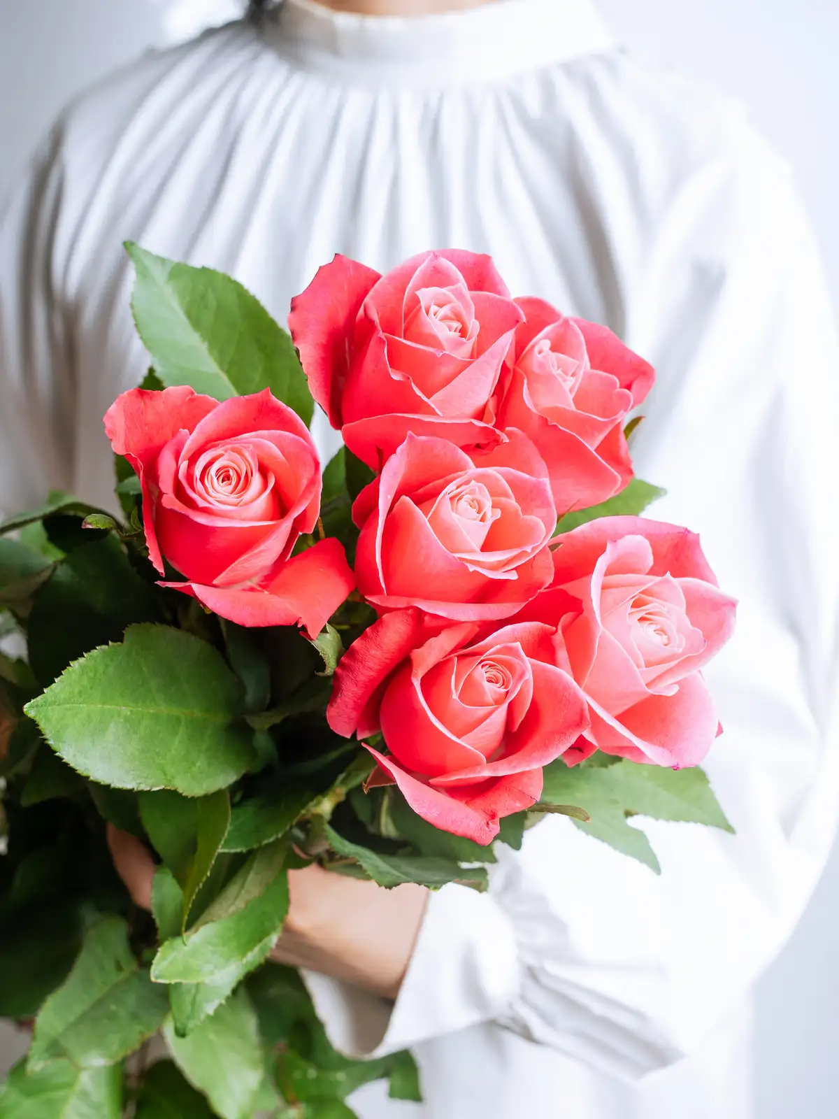 入荷した花は1本ずつ丁寧に水揚げ処理を行い、発送までしっかり管理。斜め切り・ハンマー叩きなど、花に合わせた水揚げを行います。届いた瞬間から、美しく咲く準備が整った状態でお届けします。