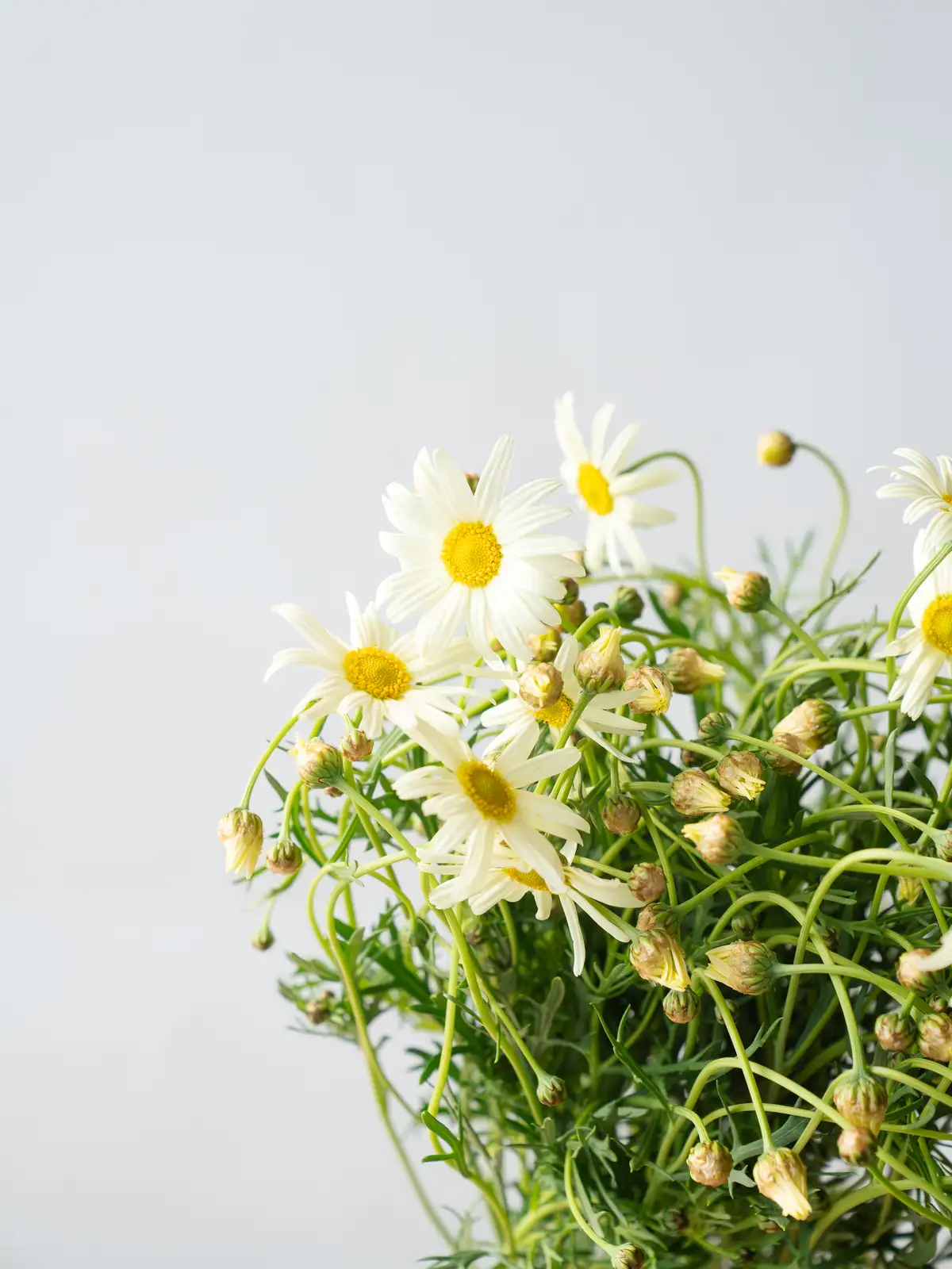 鮮やかな黄色の花弁と中央の管状花が特徴の一重咲きマーガレット。日向は明るく華やかな黄色が印象的な品種で、春の陽だまりを思わせる温かみのある花姿です。