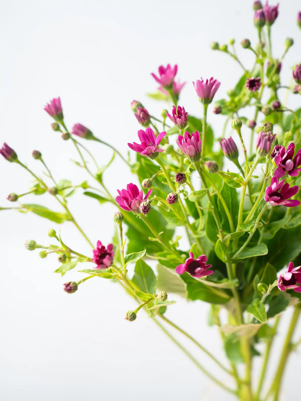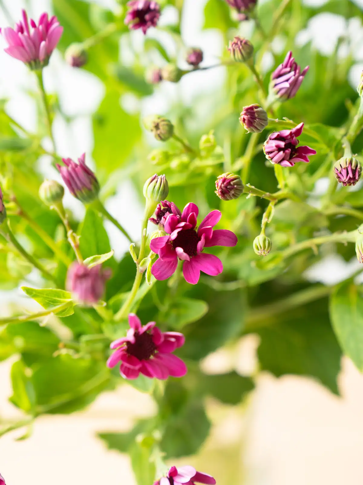 ラズベリーを思わせる鮮やかなピンク色の小花が密集して咲くサイネリア。切り花用に品種改良されたティアラシリーズは発色が良く、愛らしい花色と豊かな花付きが特徴です。