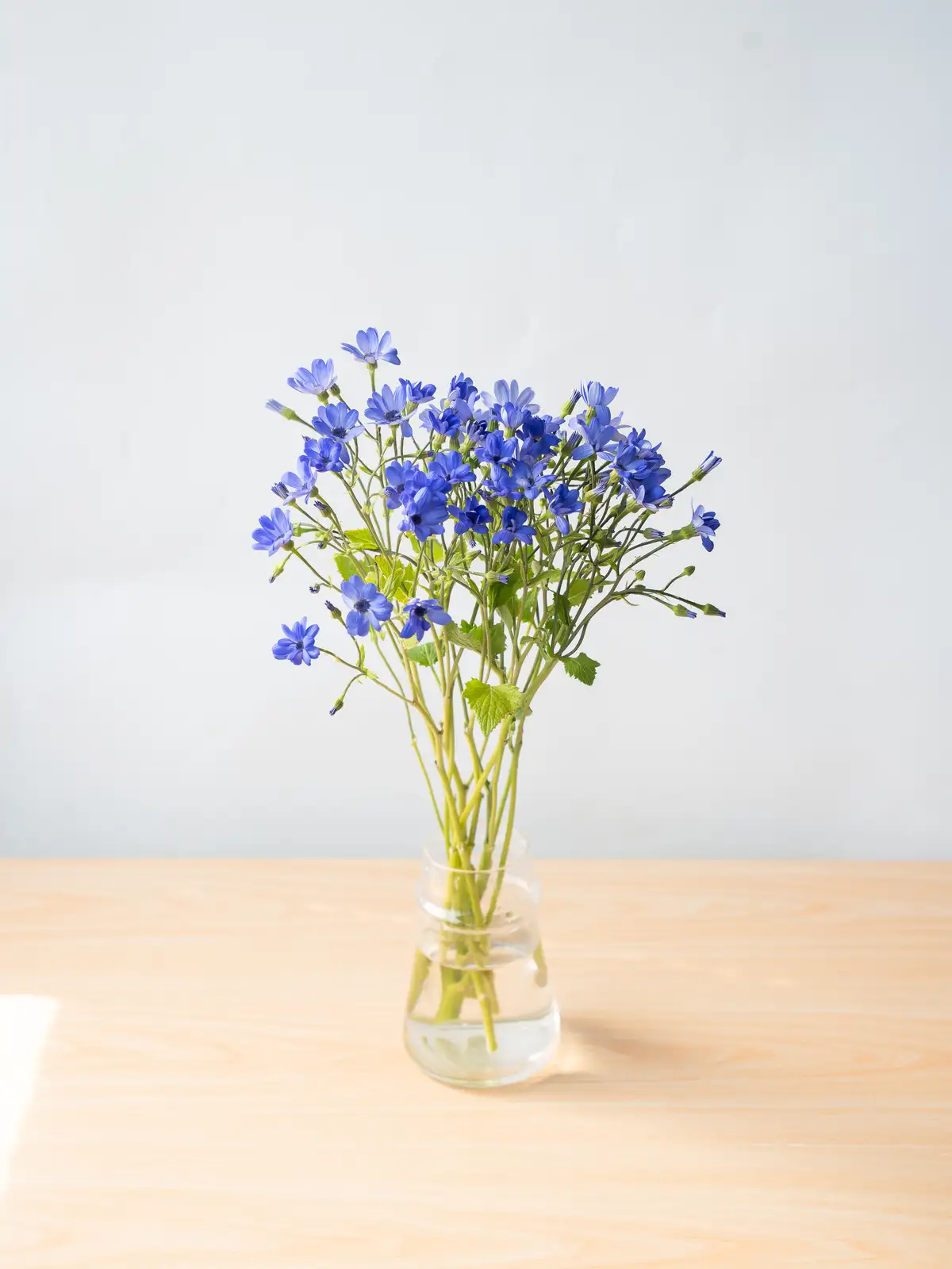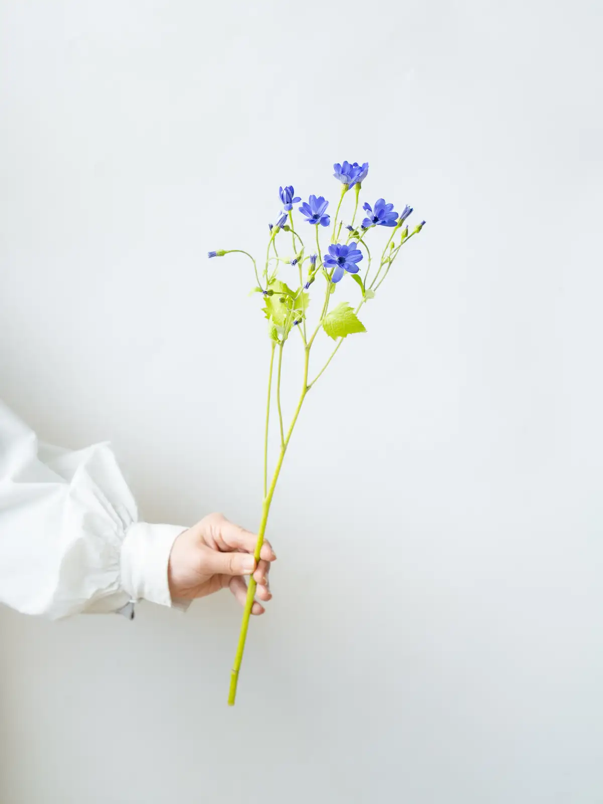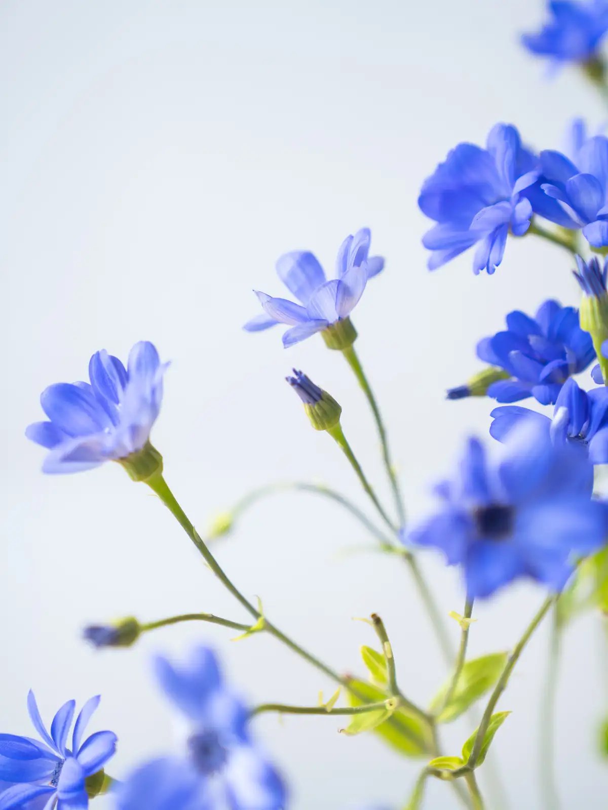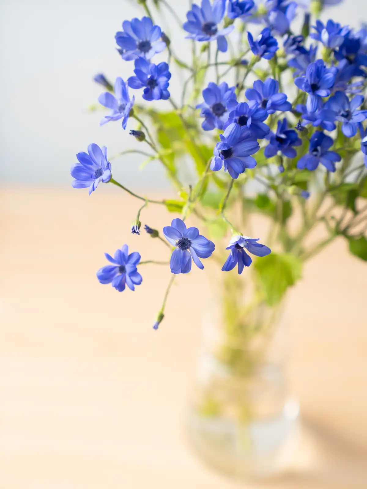海の青を思わせる鮮やかなブルーの花色が特徴のサイネリア。ティア(Tia)シリーズは切り花向けに品種改良されており、発色が良く存在感のある青花はアレンジメントのアクセントとして人気です。