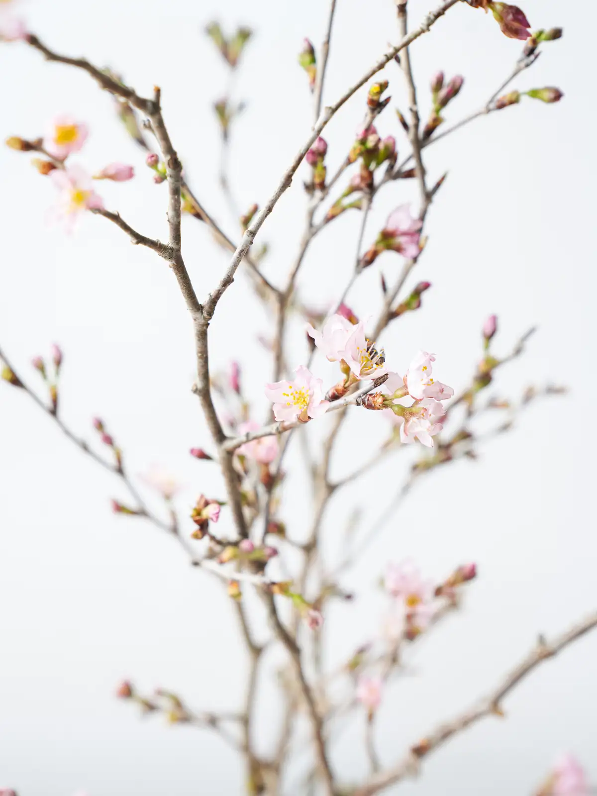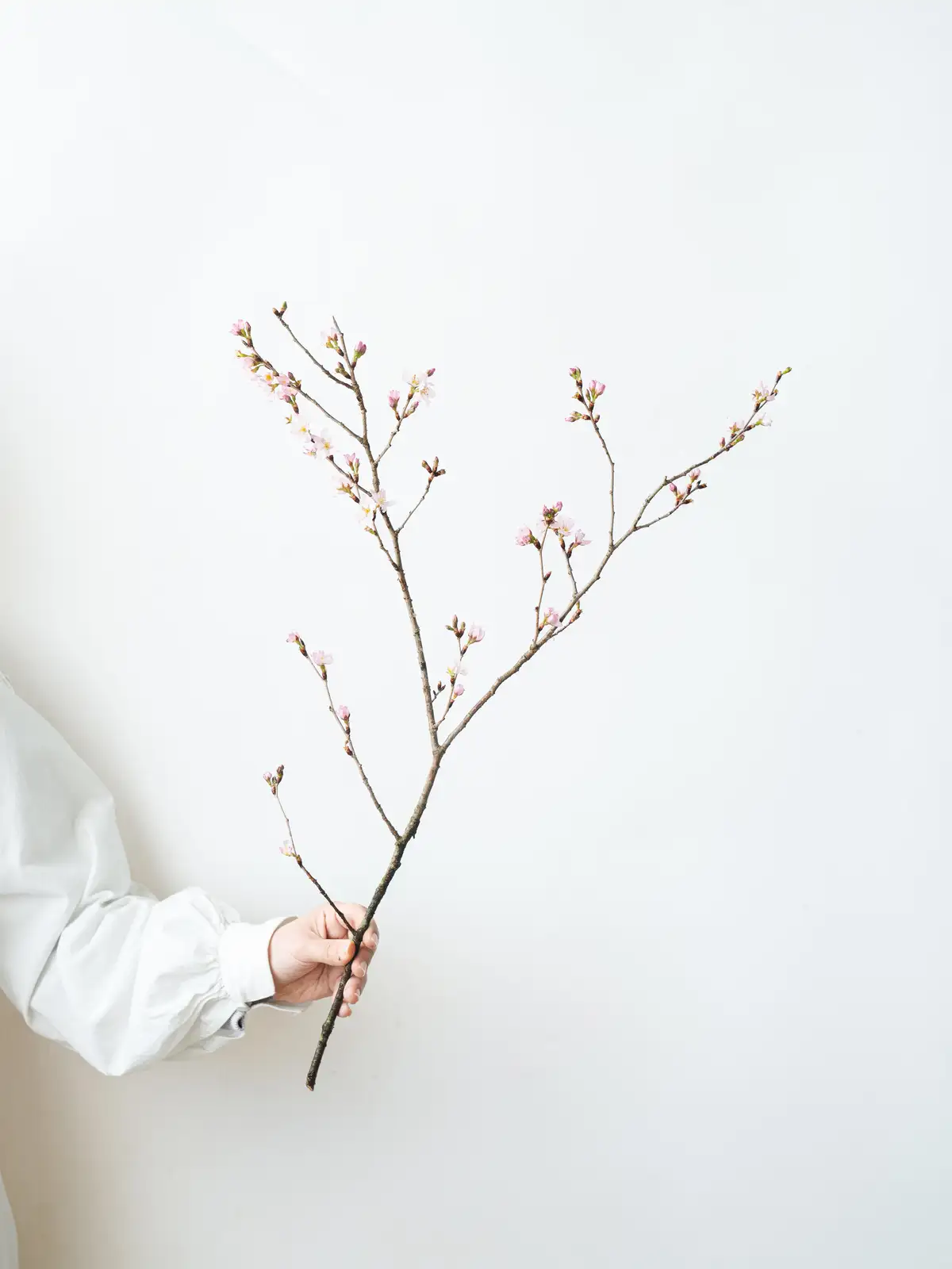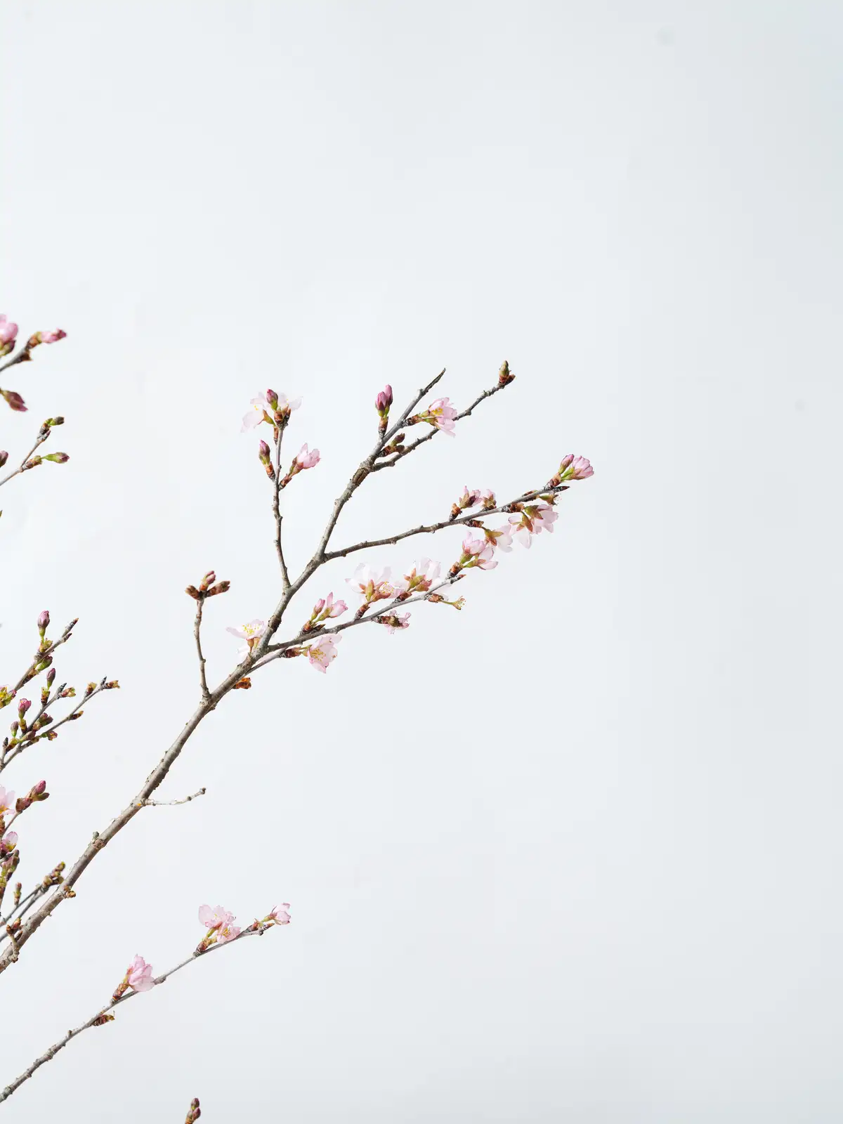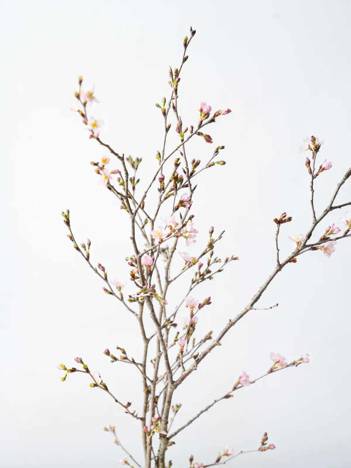 香川県産のひより桜の切り枝。春らしい淡いピンクの花が枝に咲き誇り、やわらかな花色と愛らしい花姿が魅力です。和婚や春の装花に人気の花材です。