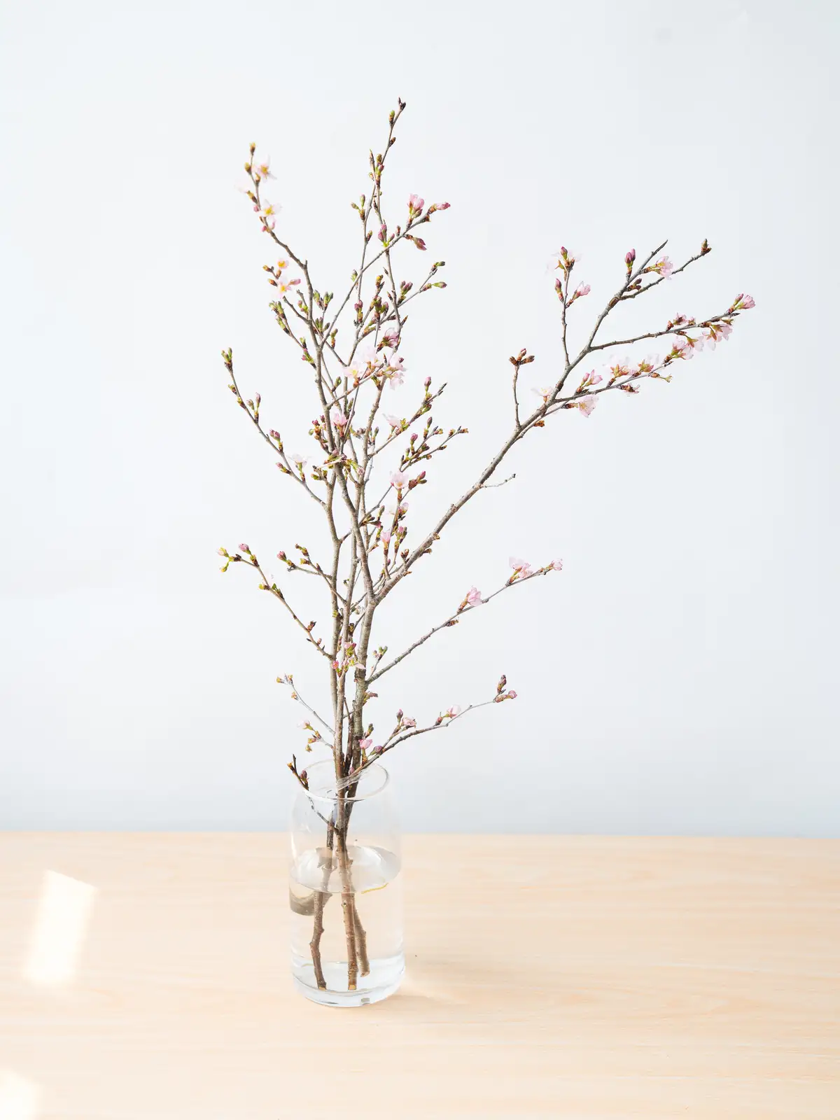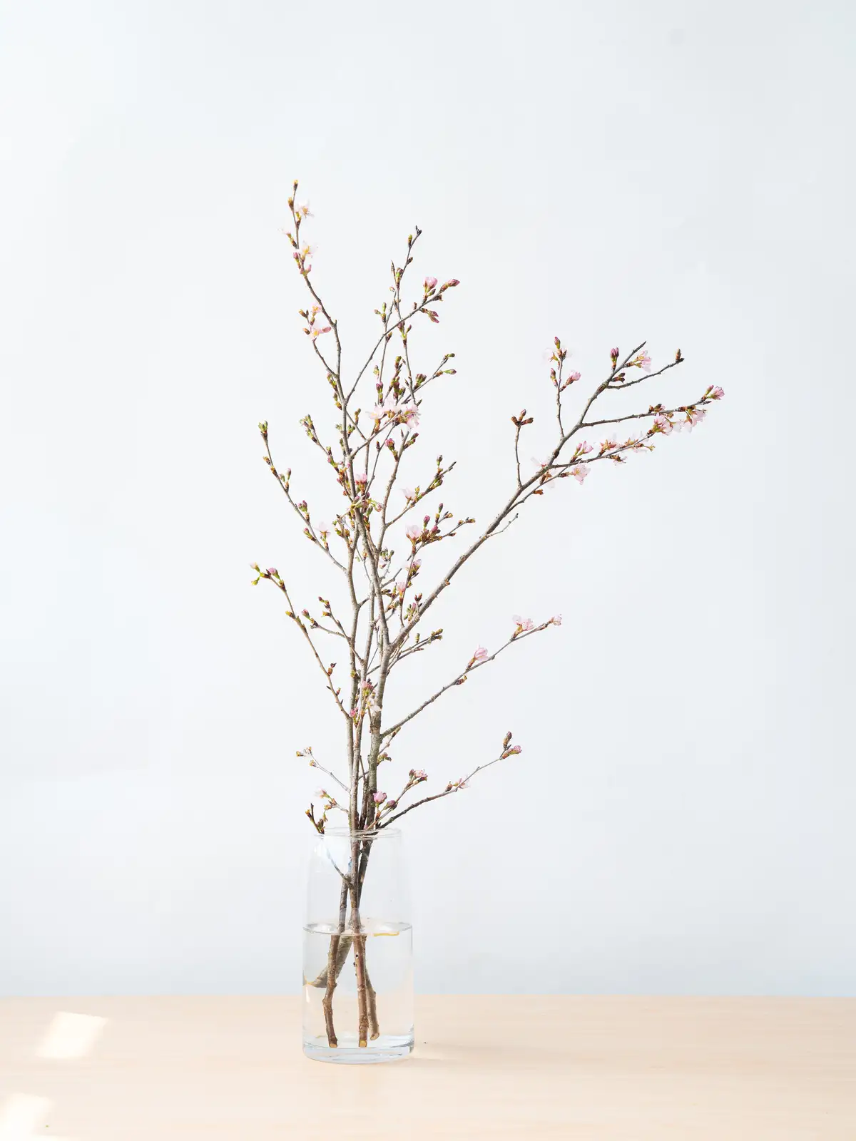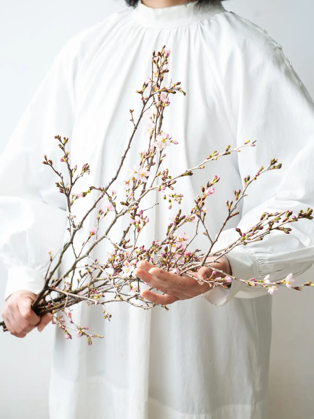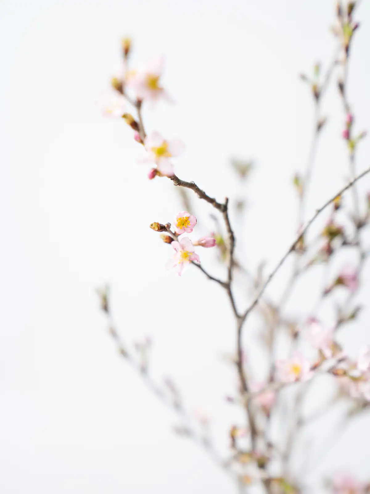 香川県産のひより桜の切り枝。春らしい淡いピンクの花が枝に咲き誇り、やわらかな花色と愛らしい花姿が魅力です。和婚や春の装花に人気の花材です。