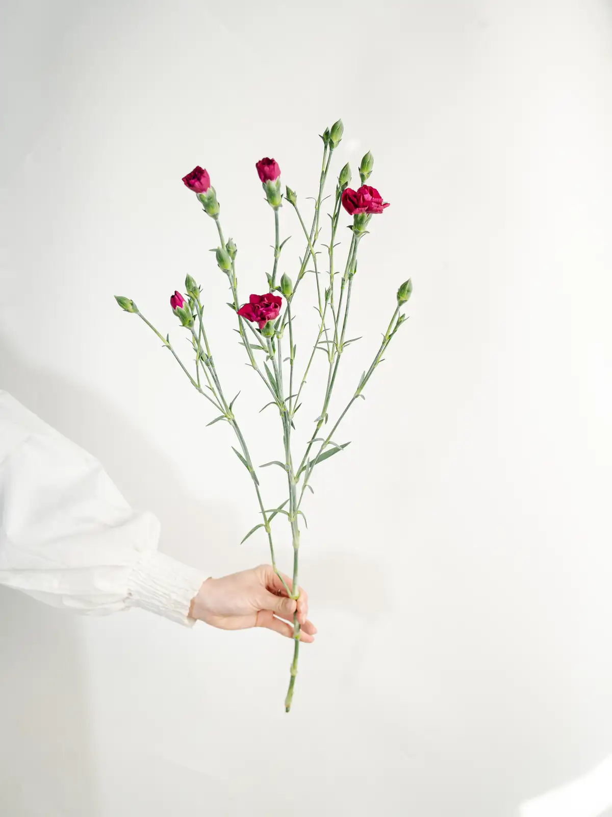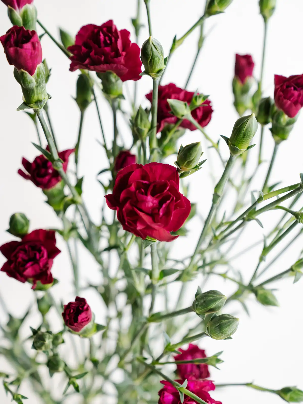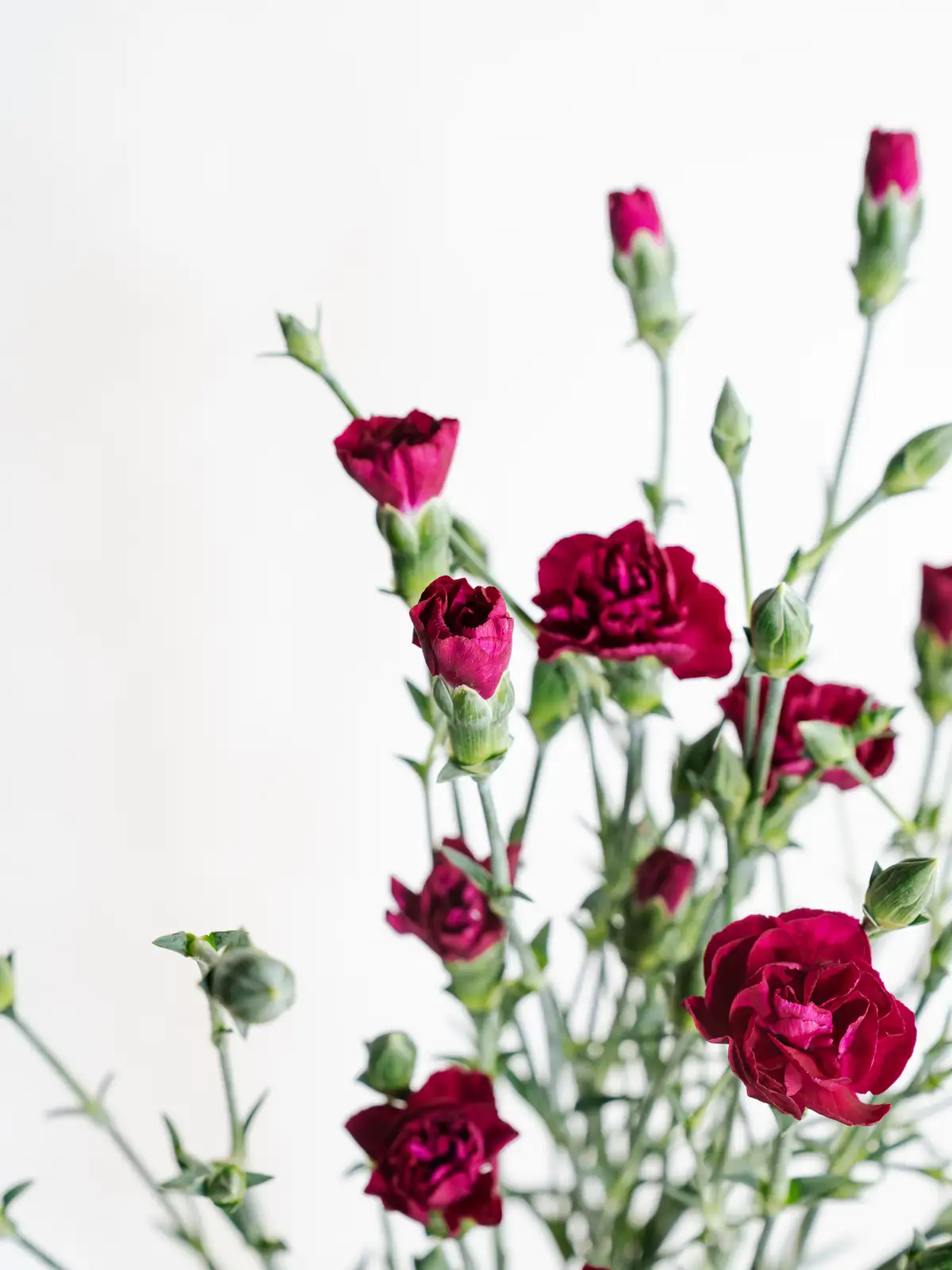 深みのある紫色が特徴のスプレーカーネーションです。一茎に複数の花を咲かせ、ボリューム感のあるアレンジメントを演出します。花持ちが良く、長期間お楽しみいただけます。