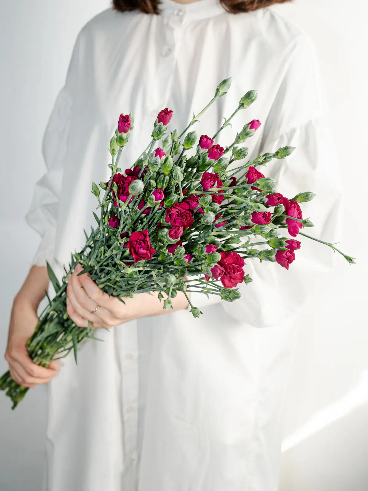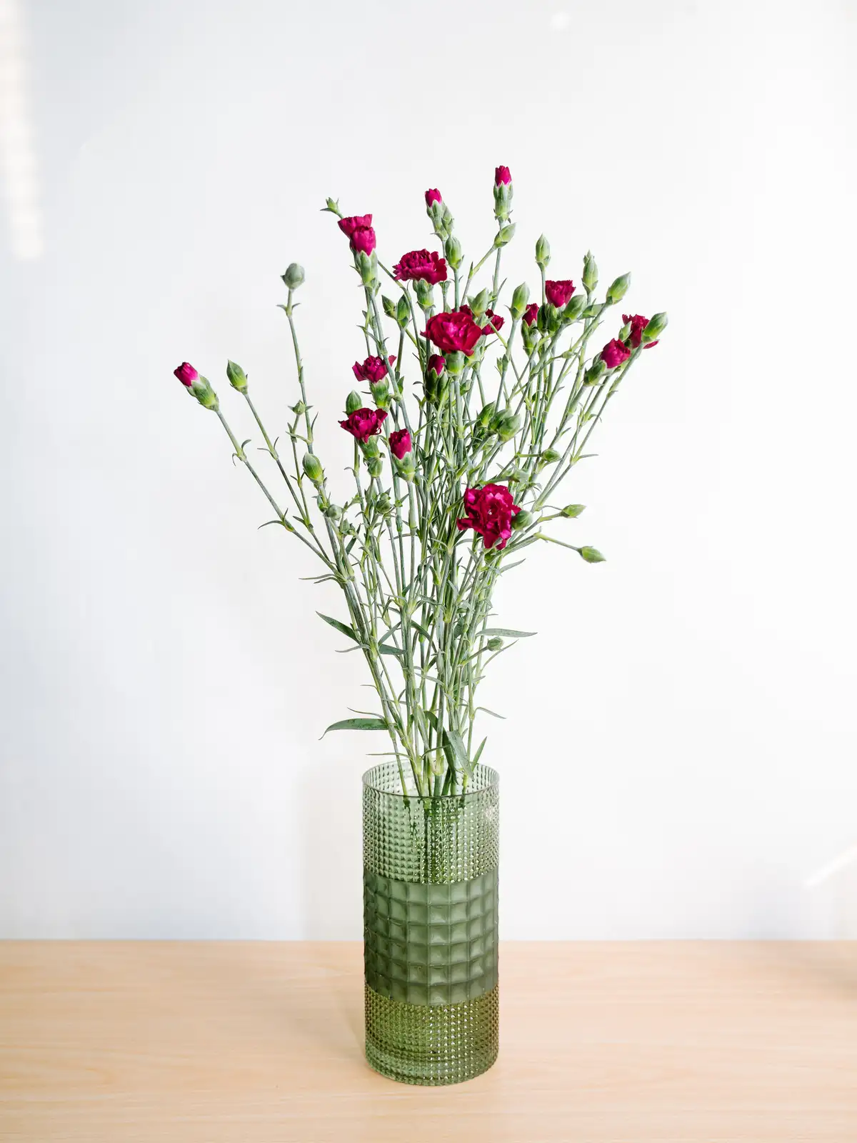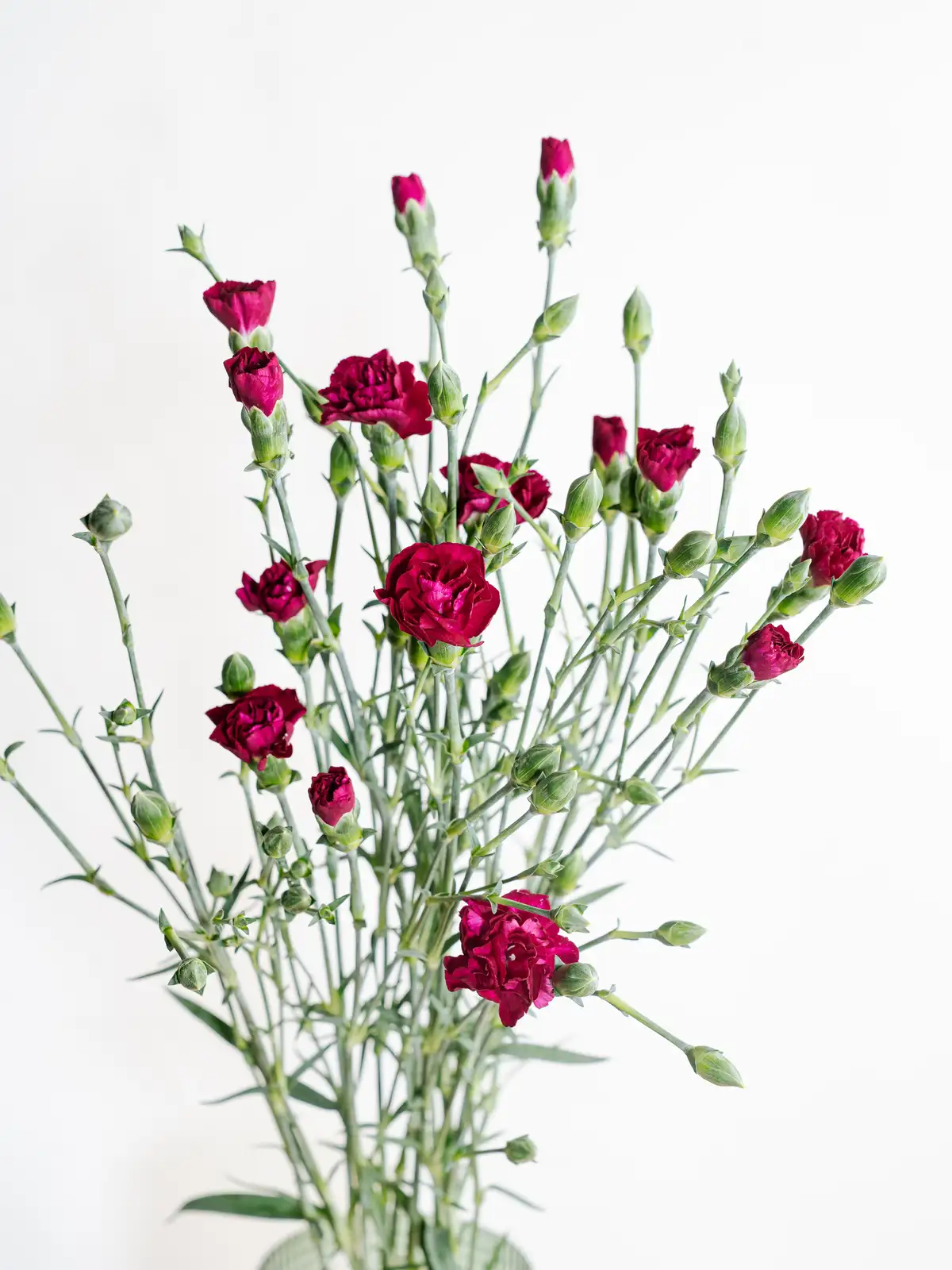 深みのある紫色が特徴のスプレーカーネーションです。一茎に複数の花を咲かせ、ボリューム感のあるアレンジメントを演出します。花持ちが良く、長期間お楽しみいただけます。