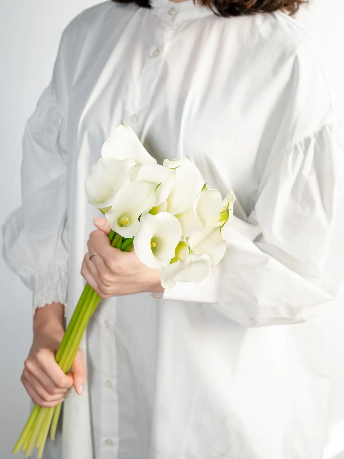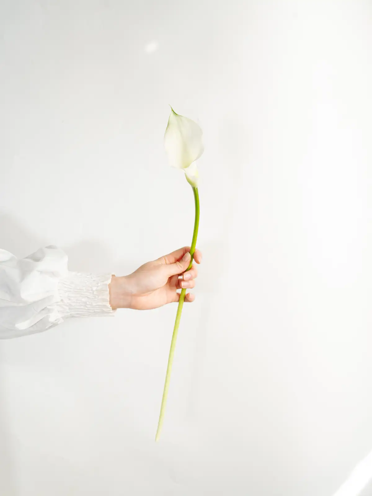 純白の仏炎苞が優美なカラーです。上品な佇まいが特徴で、一輪でも存在感があります。ウェディングやフォーマルなシーンの装飾に適しています。