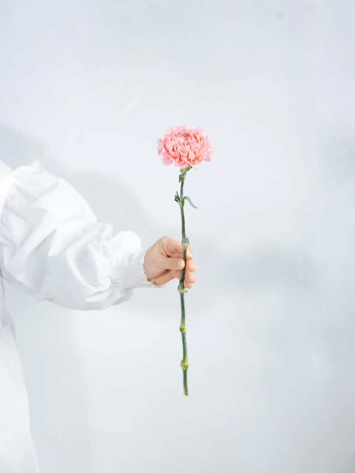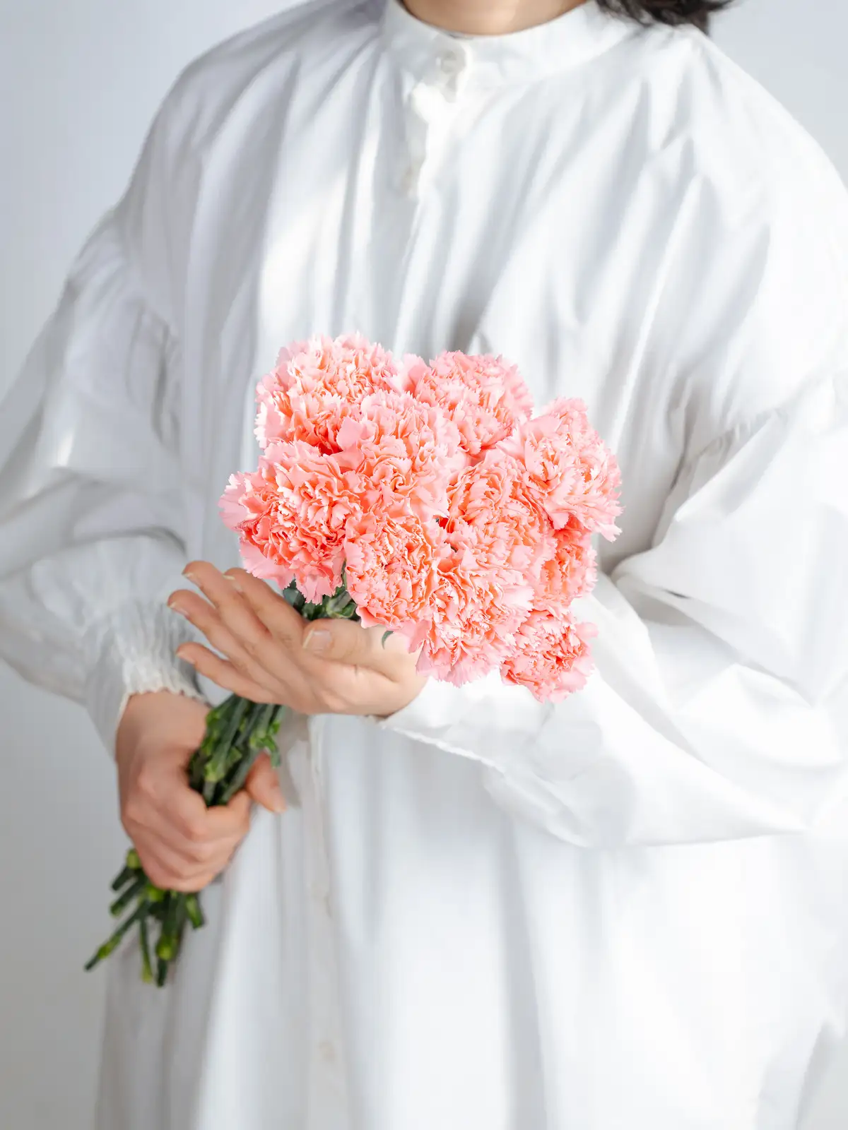 華やかなピンク色の花弁が目を引くスタンダードカーネーション。茎がしっかりとしており、アレンジメントの主役にも脇役にも使いやすい品種です。