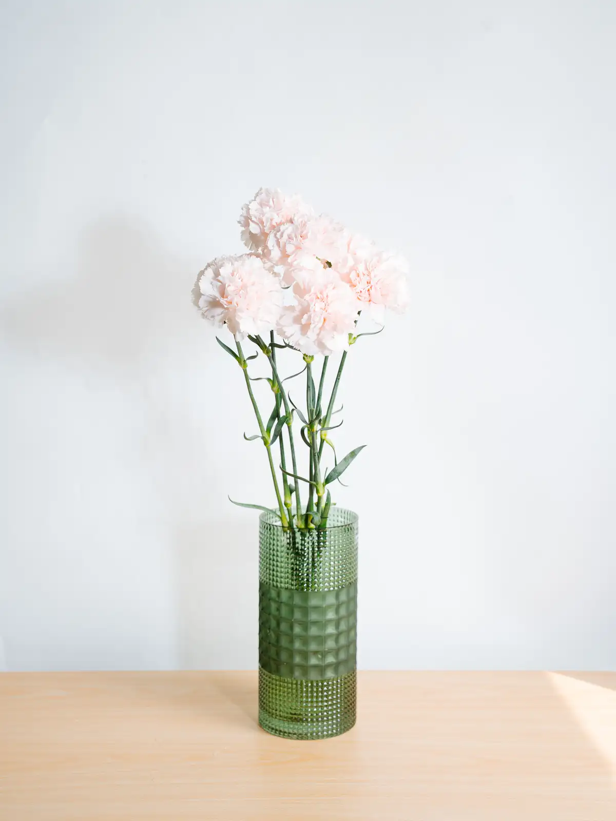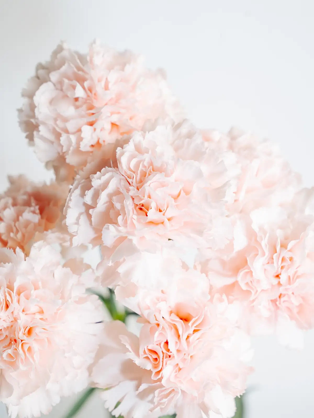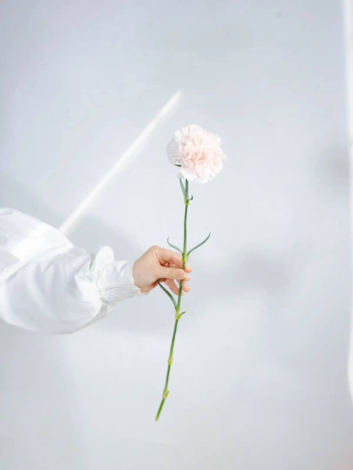 淡いピンク色が柔らかく繊細な印象を与えるスタンダードカーネーション。贈り物やブライダル装花にも使いやすい上品な品種です。