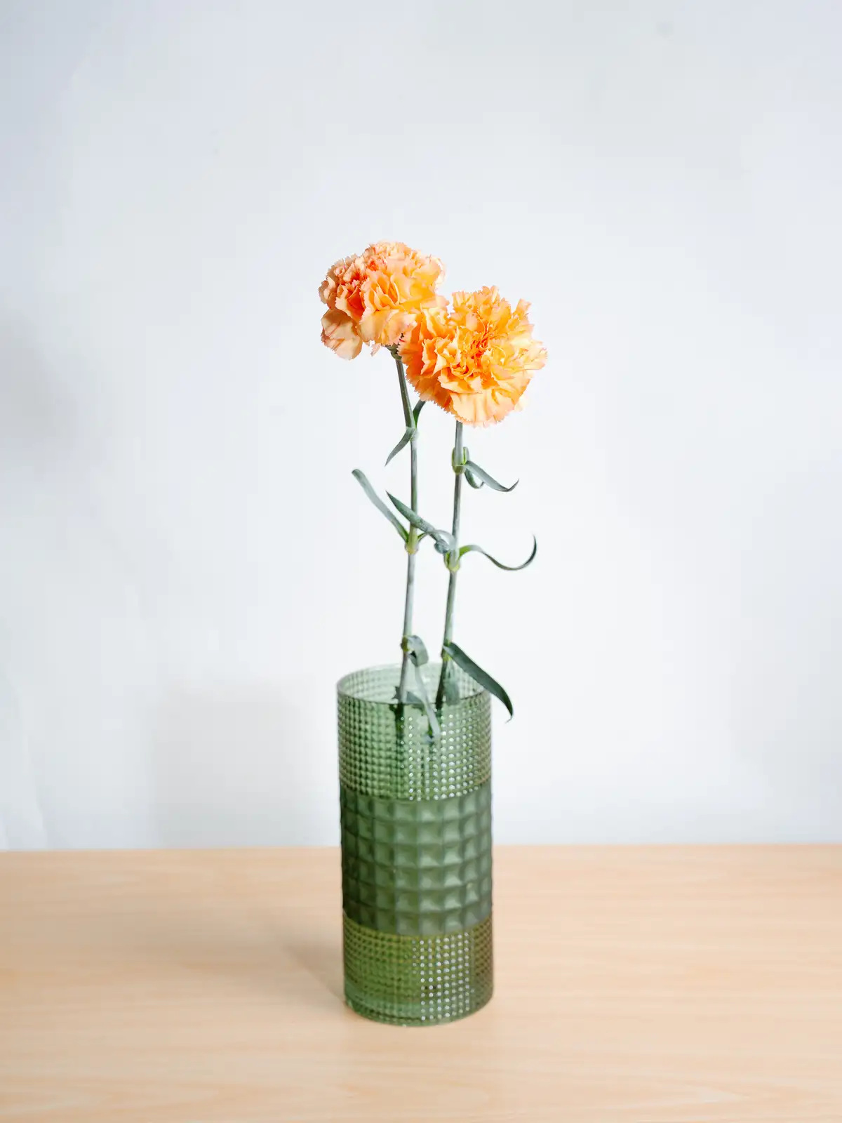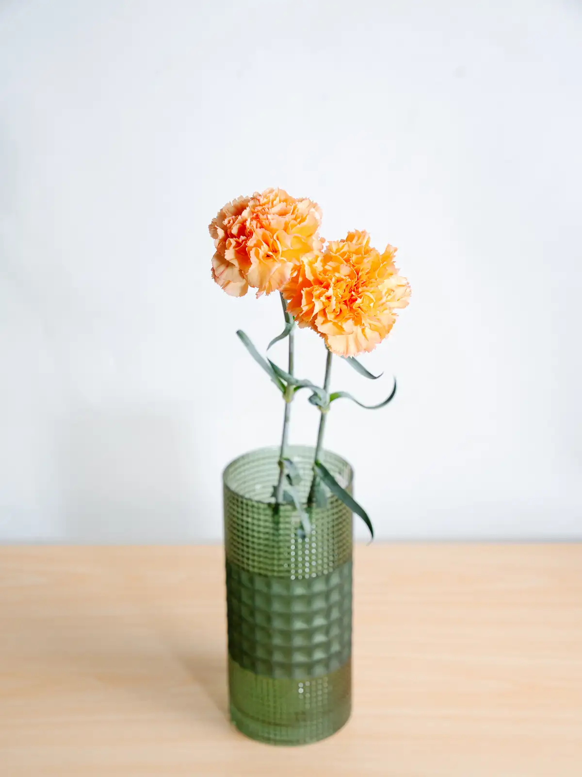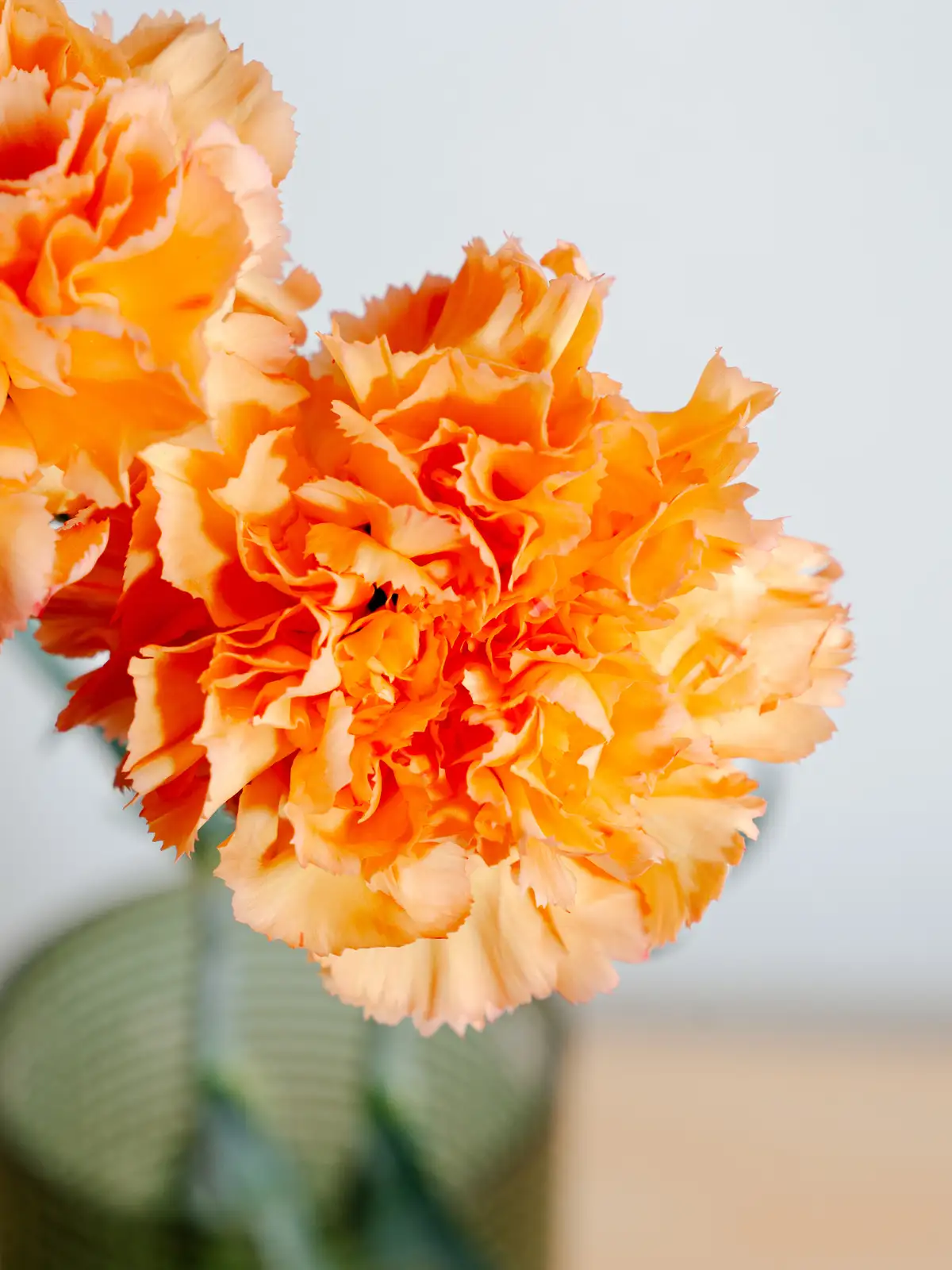 鮮やかなオレンジ色が陽気な雰囲気を演出するスタンダードカーネーション。明るいトーンのアレンジメントに活躍します。