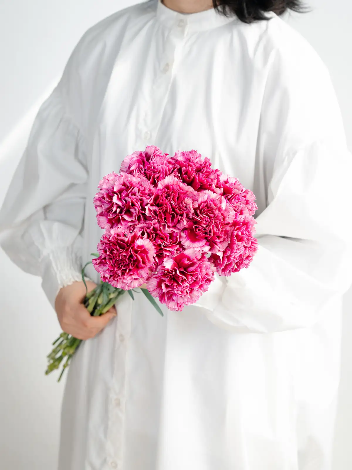 入荷した花は1本ずつ丁寧に水揚げ処理を行い、発送までしっかり管理。斜め切り・ハンマー叩きなど、花に合わせた水揚げを行います。届いた瞬間から、美しく咲く準備が整った状態でお届けします。