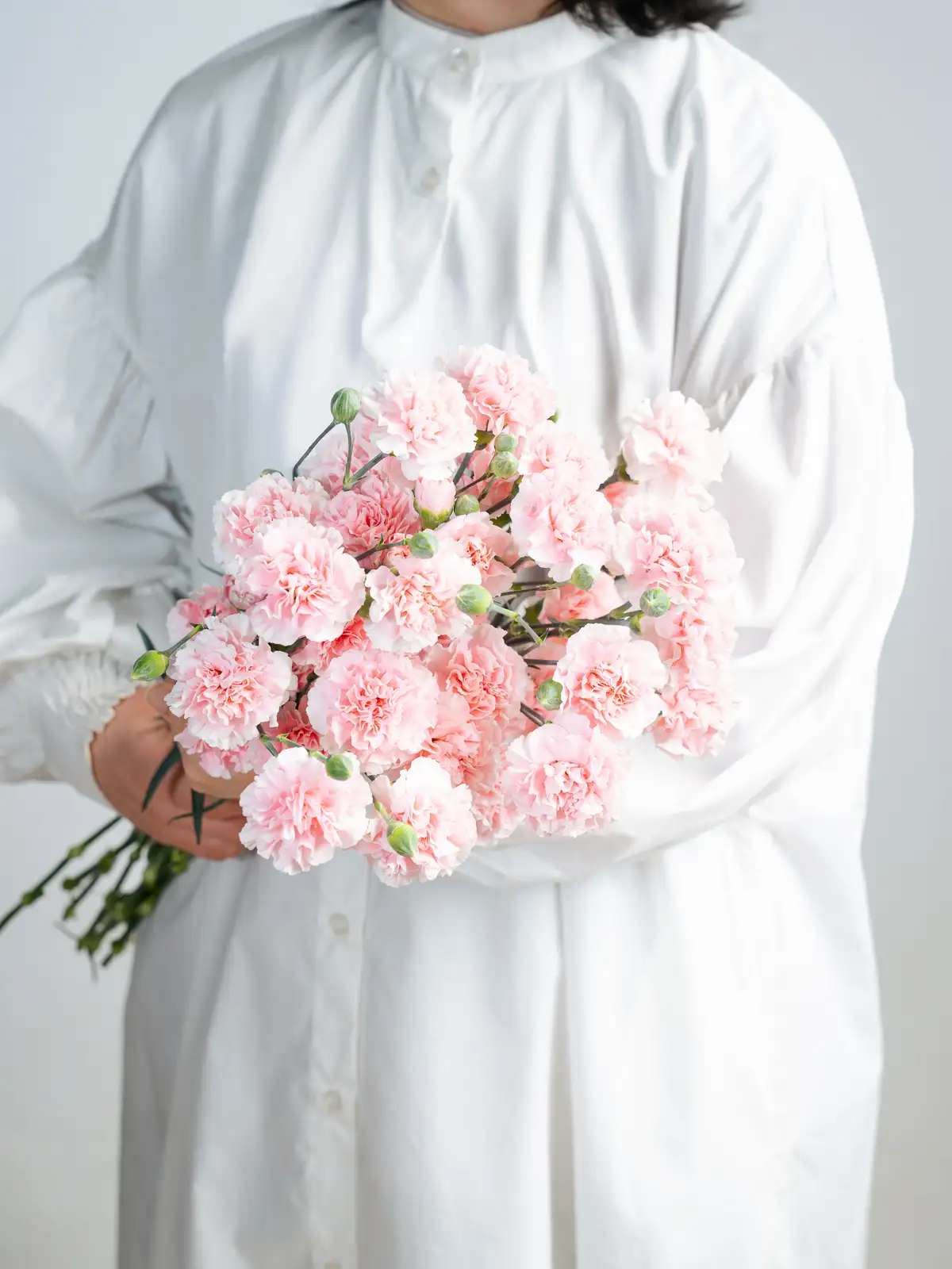 やわらかなピンク色の小花がふんわりと咲くスプレーカーネーション。優しい雰囲気のアレンジメントにぴったりです。