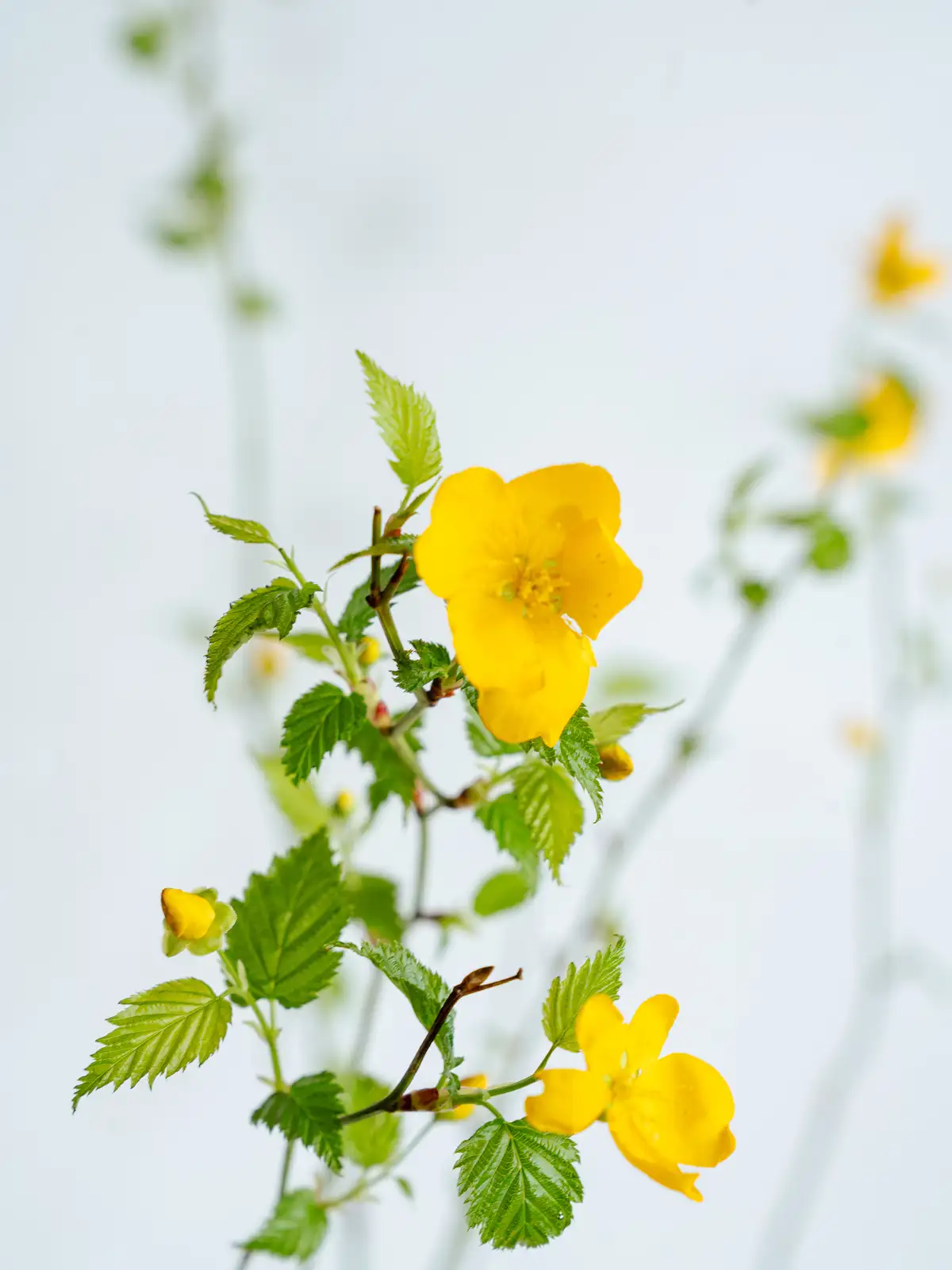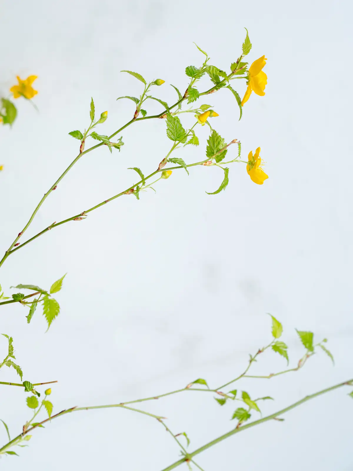 春を告げる鮮やかな黄色い花が美しい落葉低木。しなやかな枝ぶりが特徴で、和風の生け花からモダンなアレンジまで幅広く使えます。