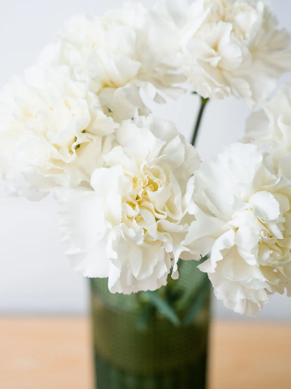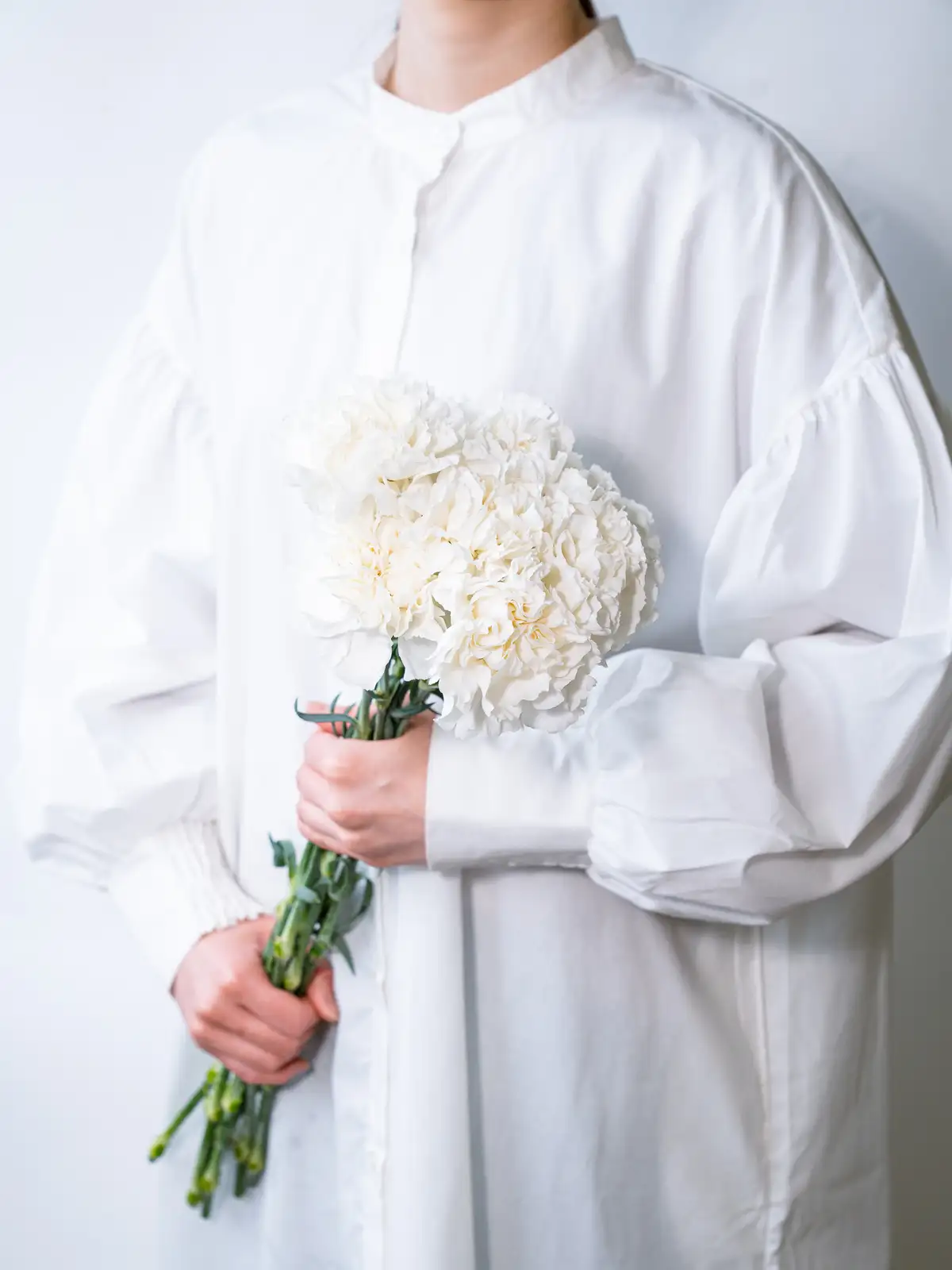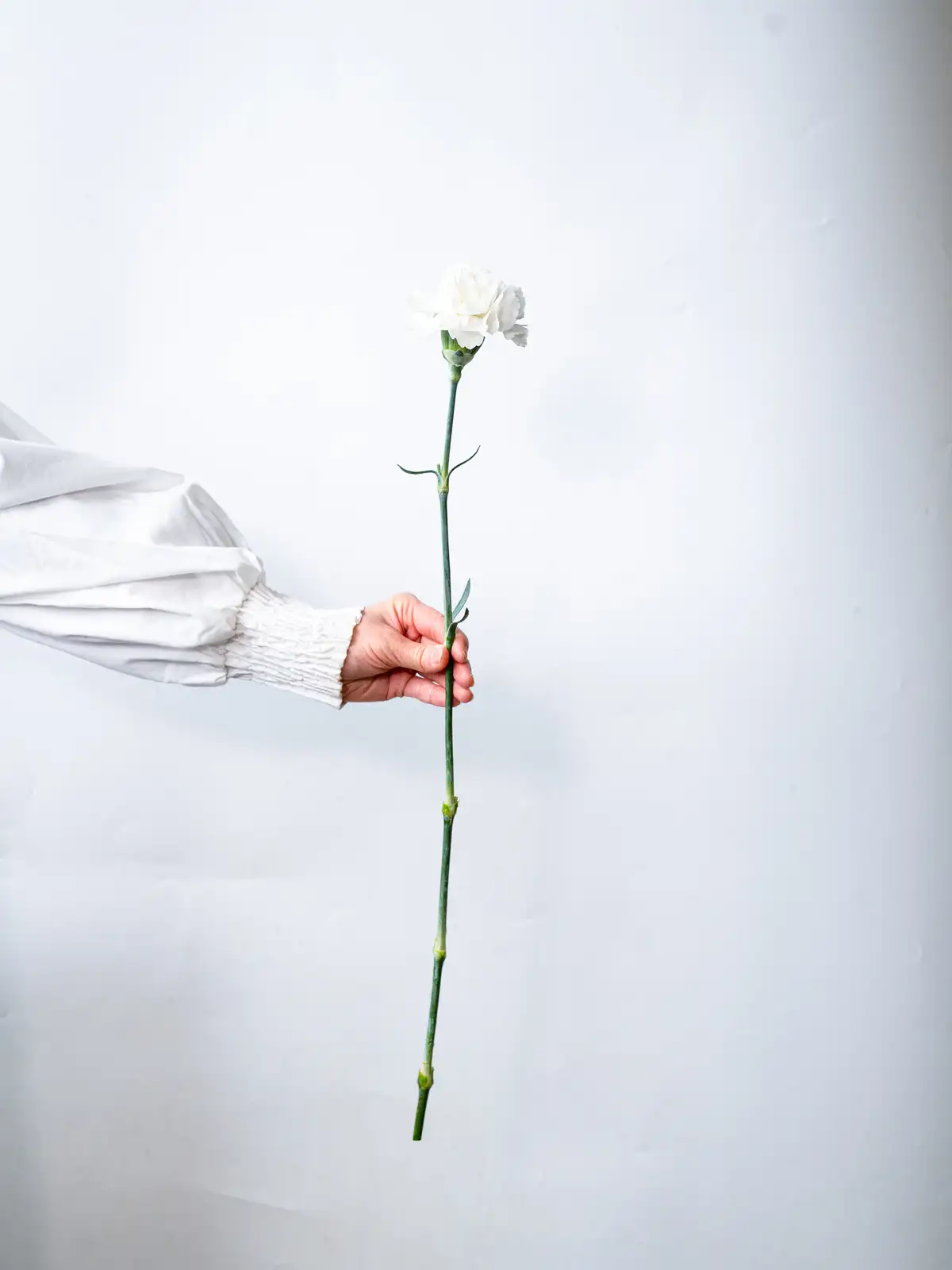 純白の花弁が整然と重なり、端正な咲き姿が特徴のカーネーション。茎が長く豪華な印象で、ギフトやフォーマルなアレンジに最適です。