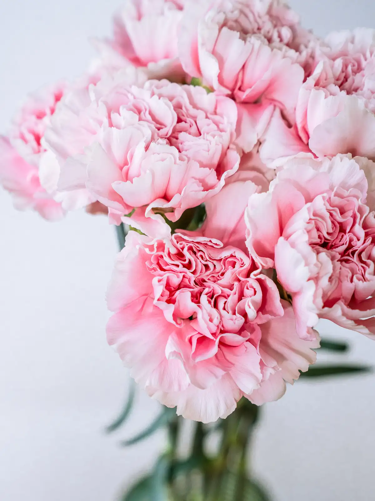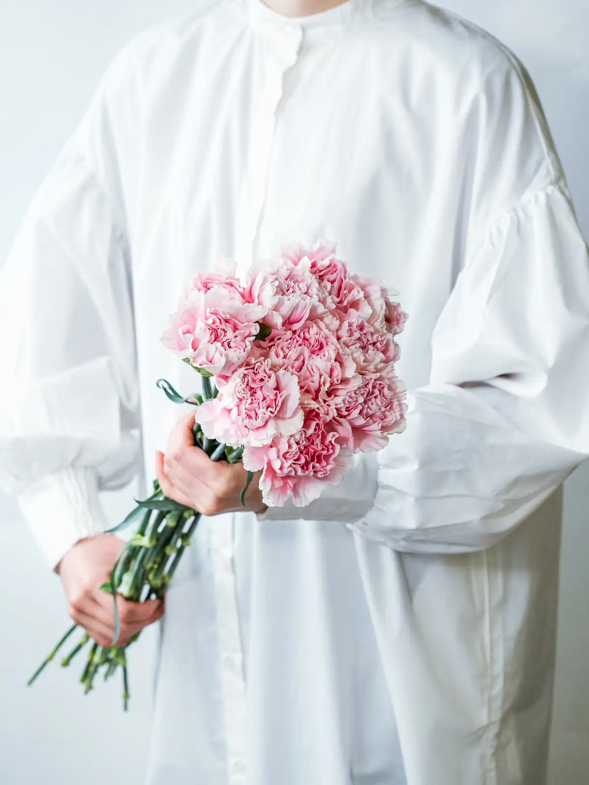 やさしいピンク色の花弁が愛らしいカーネーション。柔らかな色調がブーケや花束に温かみを添え、母の日や感謝の気持ちを伝えるシーンに重宝します。