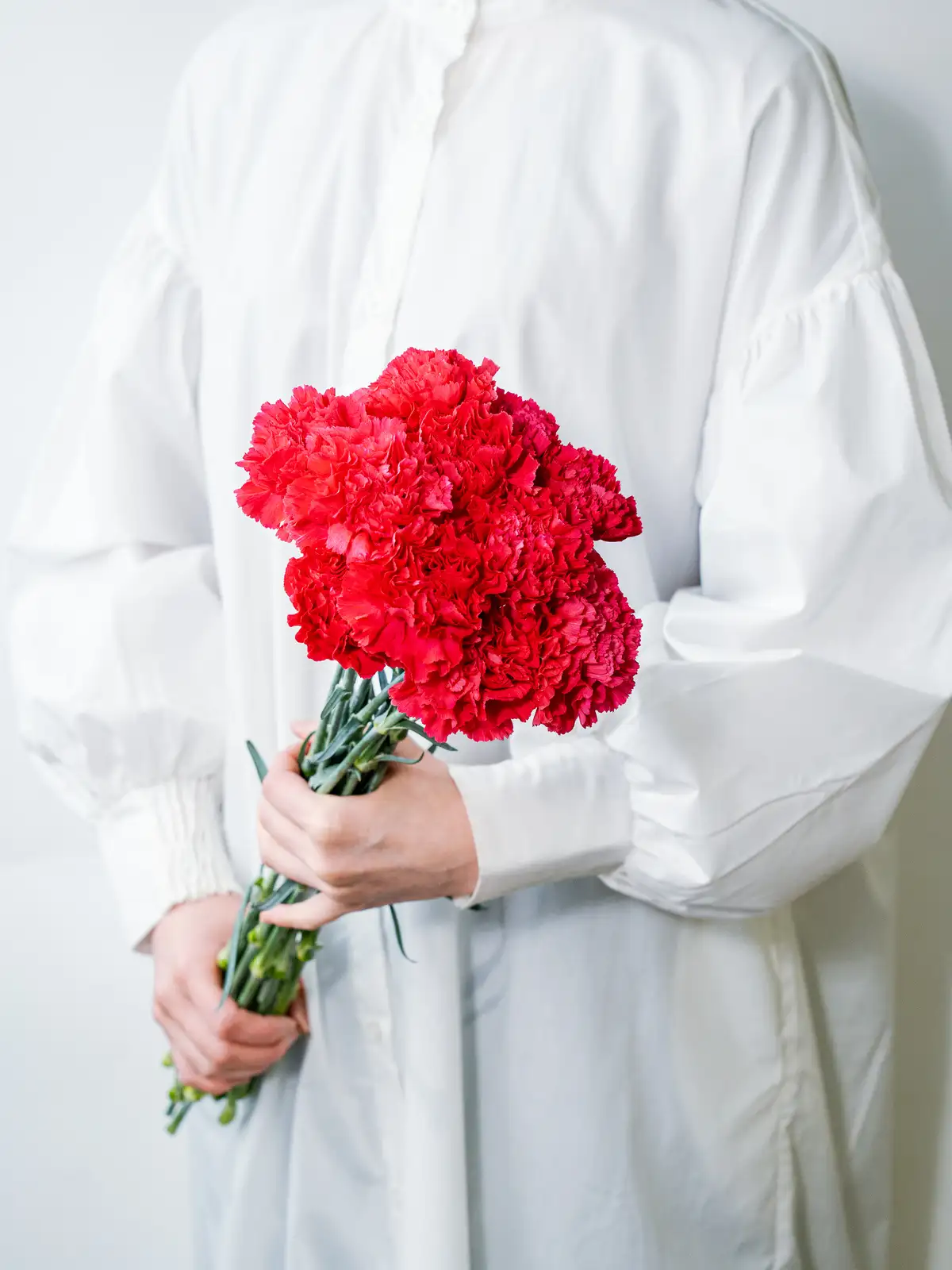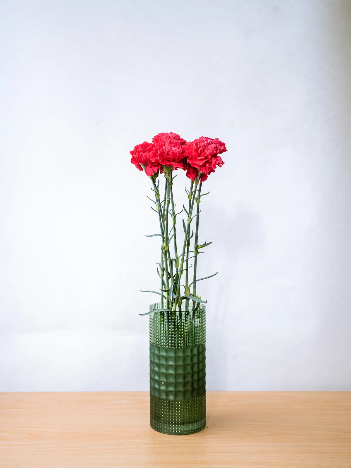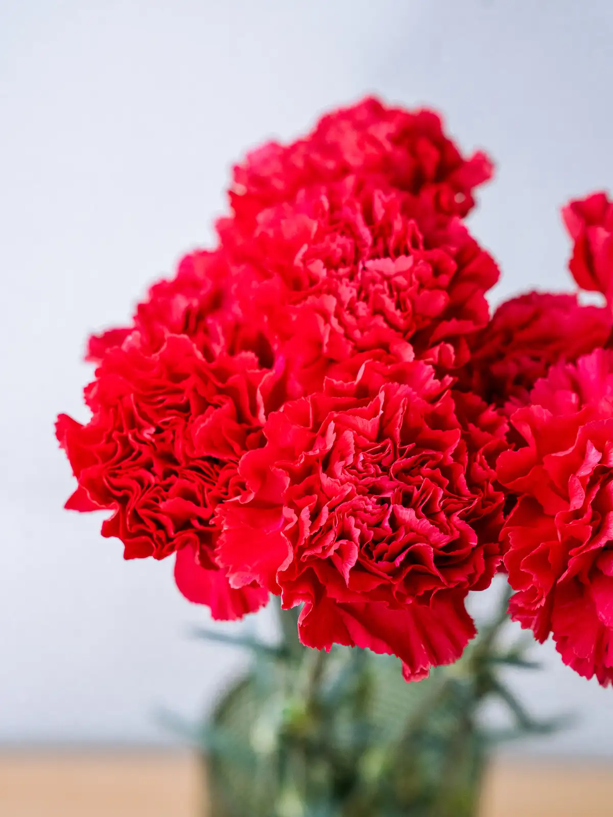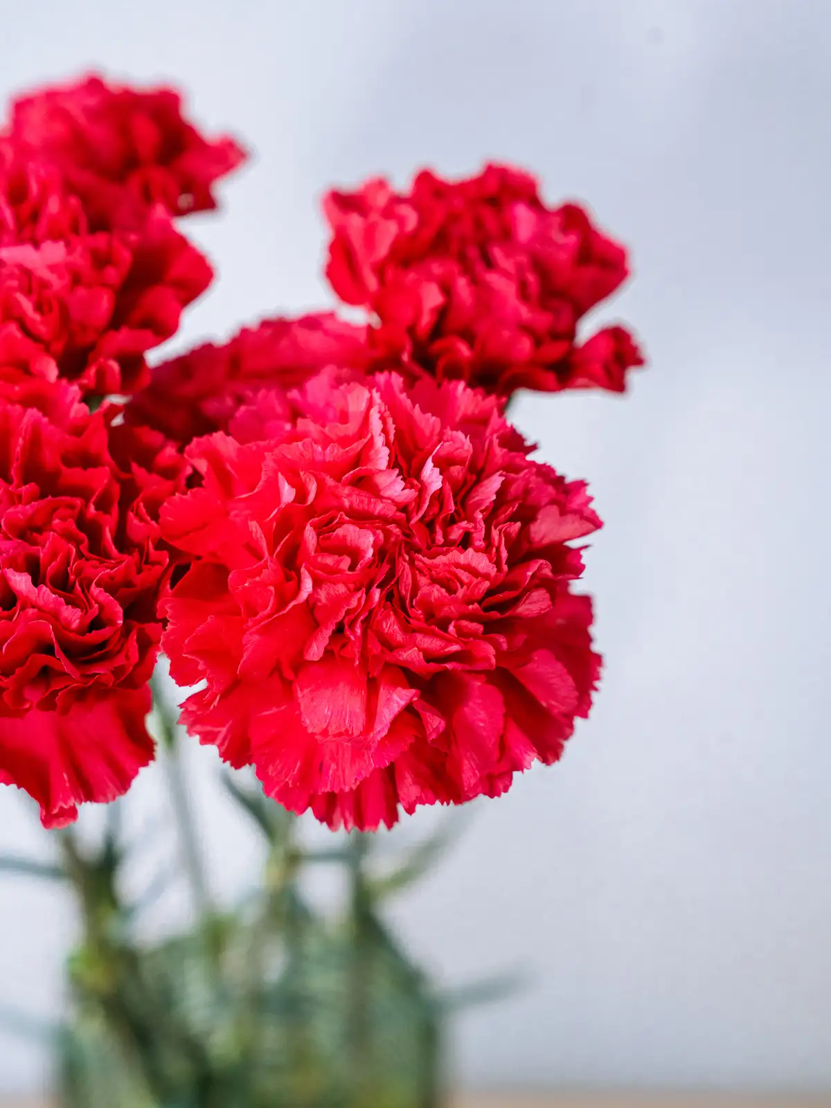 鮮やかな濃いピンク色の花弁が美しいカーネーション。ボリュームのある咲き姿で、ギフトのメイン花材として存在感を発揮します。
