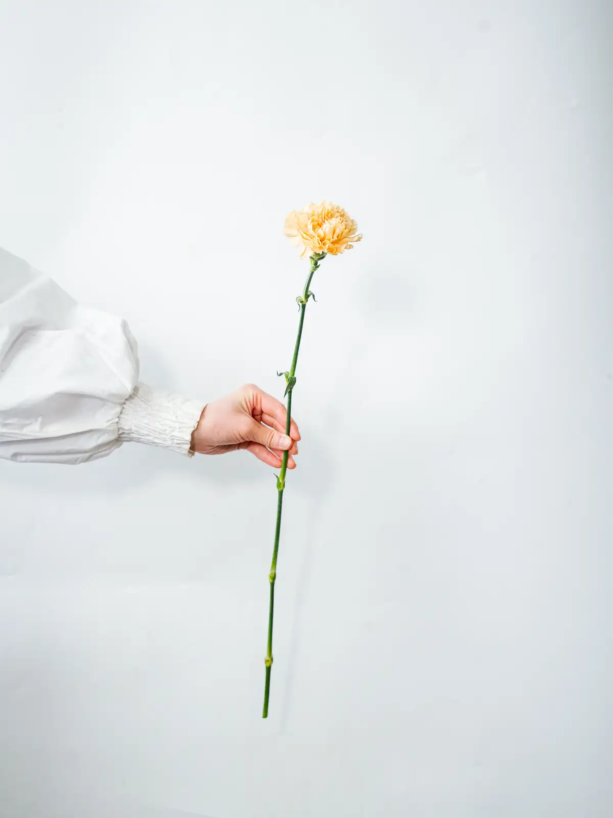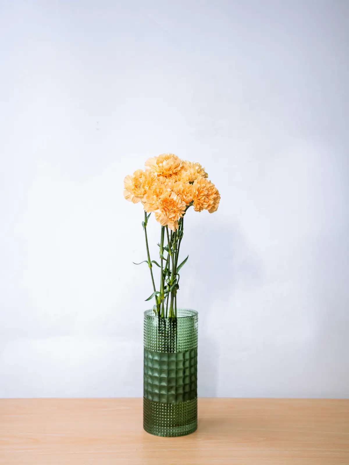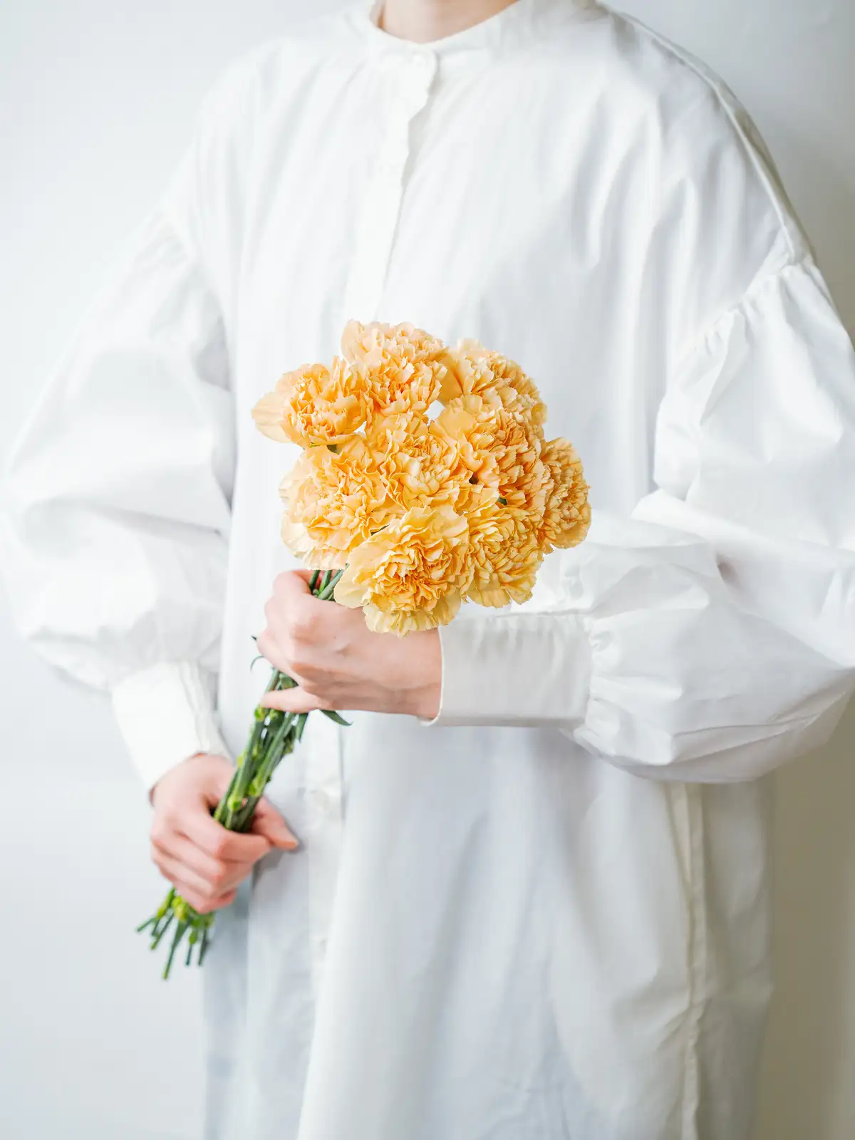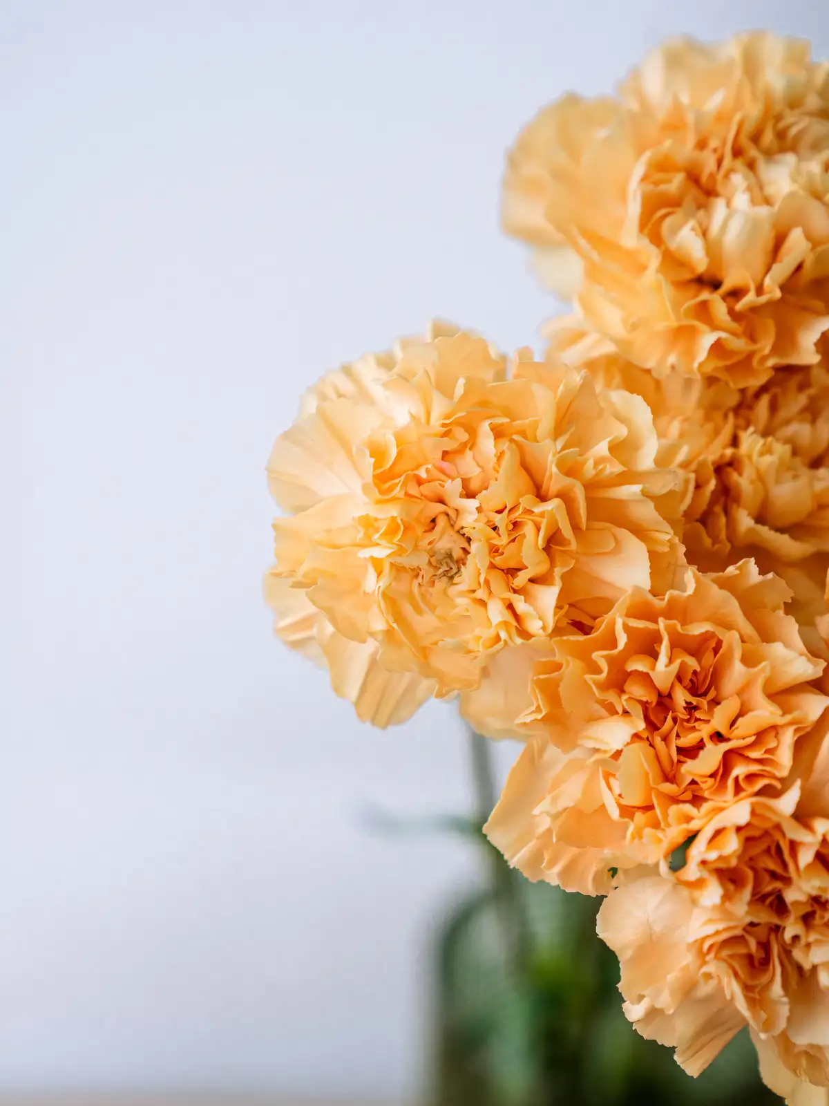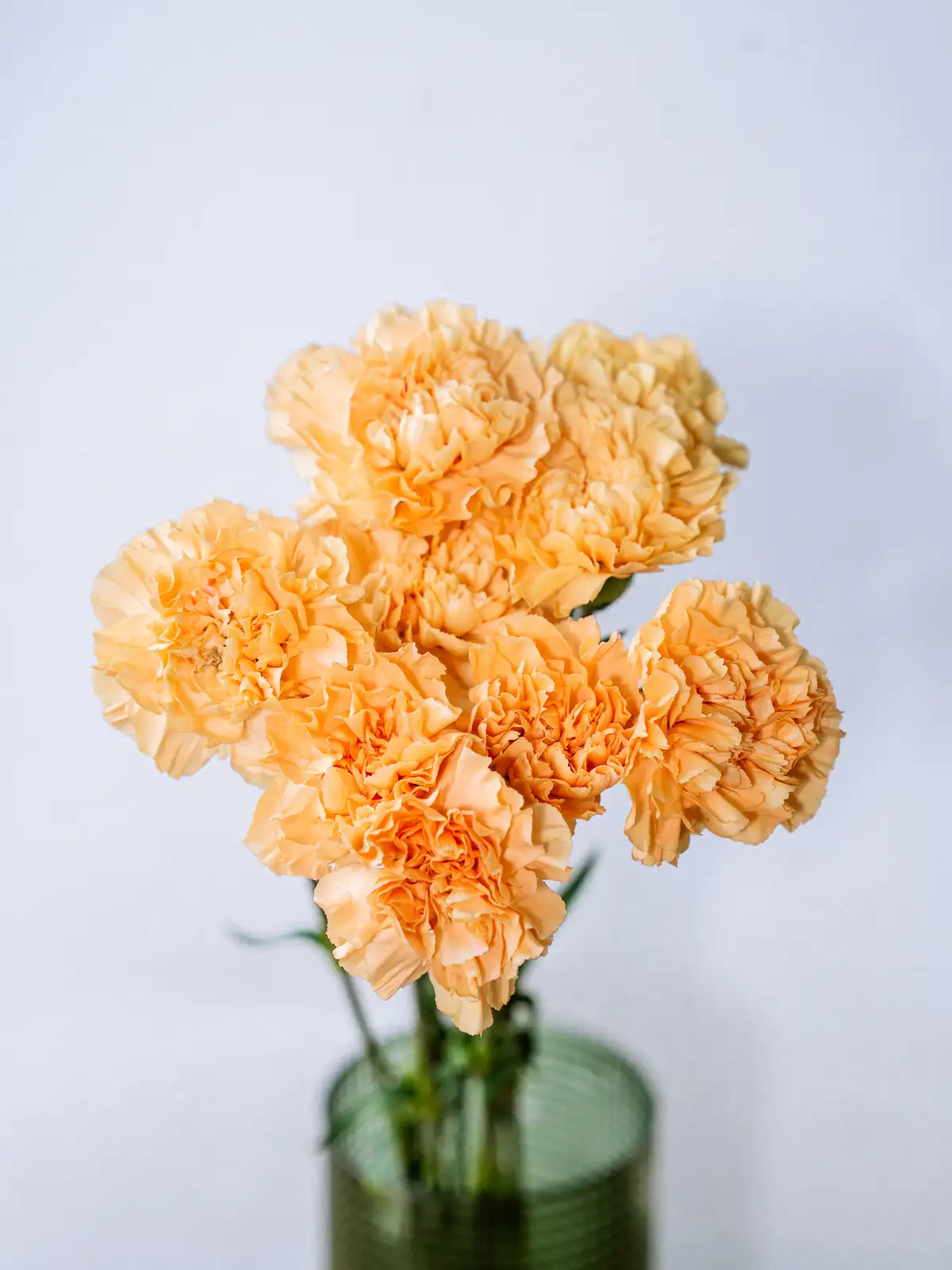 アプリコットがかった柔らかなオレンジ色が温かみのある印象のカーネーション。ナチュラルなアレンジや春のギフトに適しています。