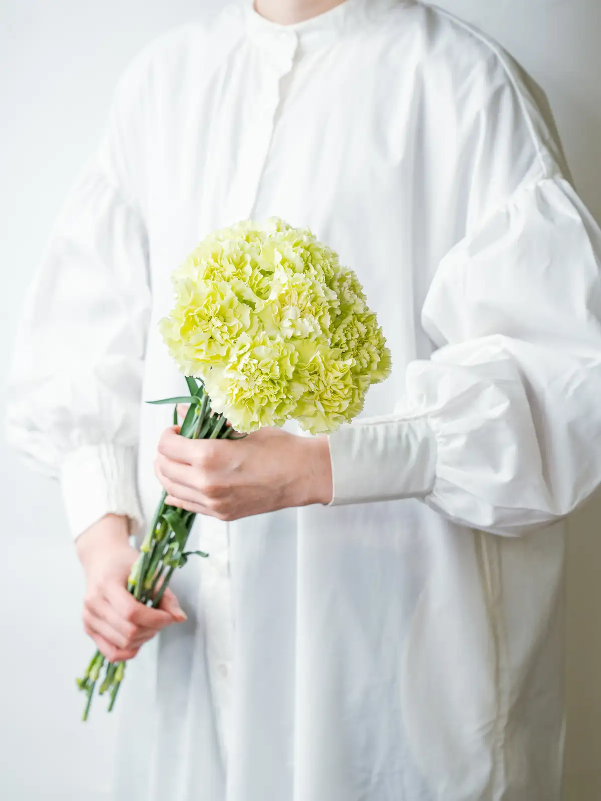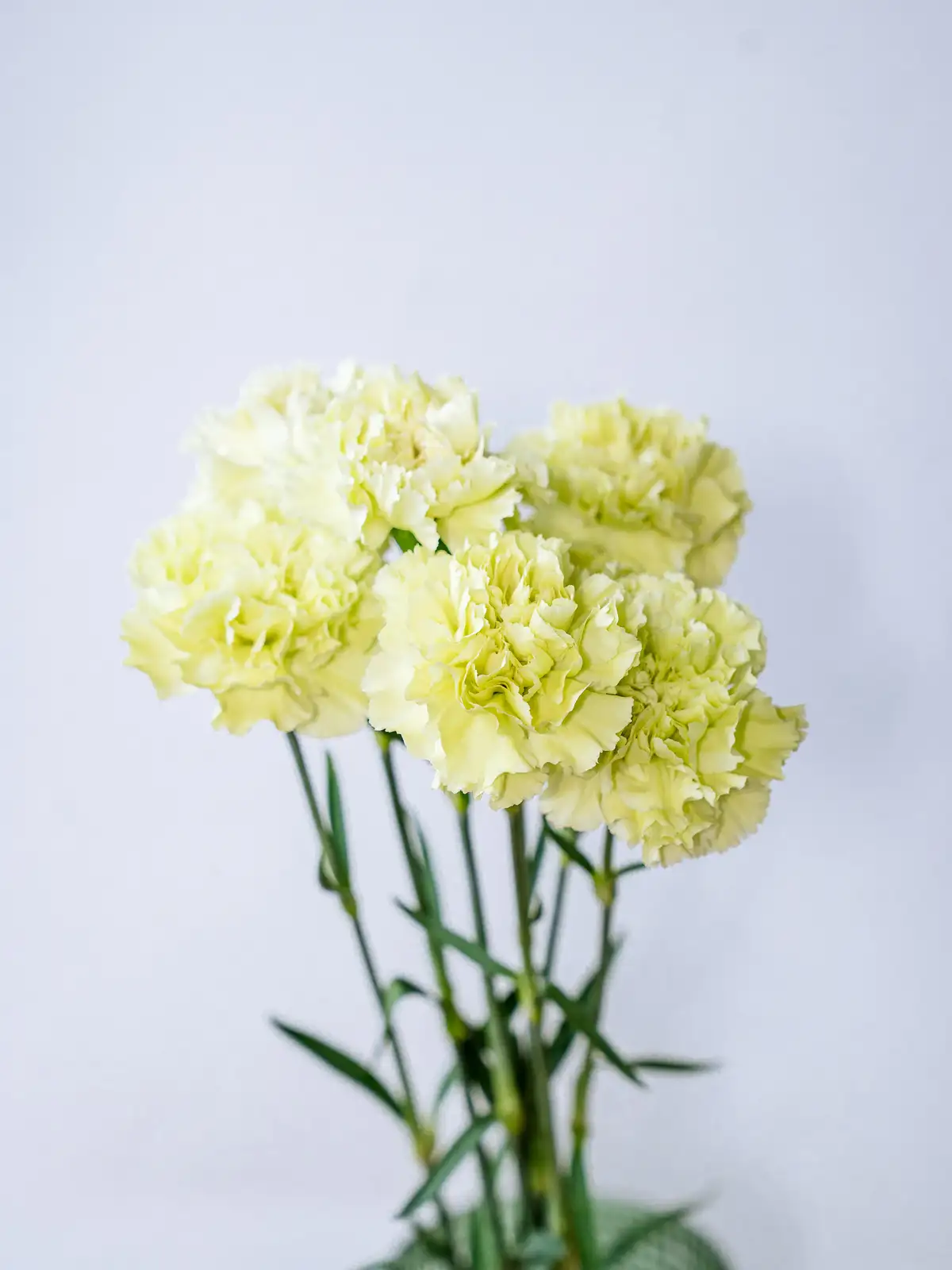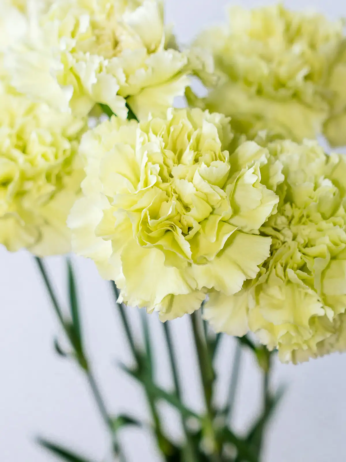 清々しいグリーン色の花弁が個性的なカーネーション。アレンジに清涼感をもたらし、白や淡いカラーの花材との組み合わせで引き立ちます。