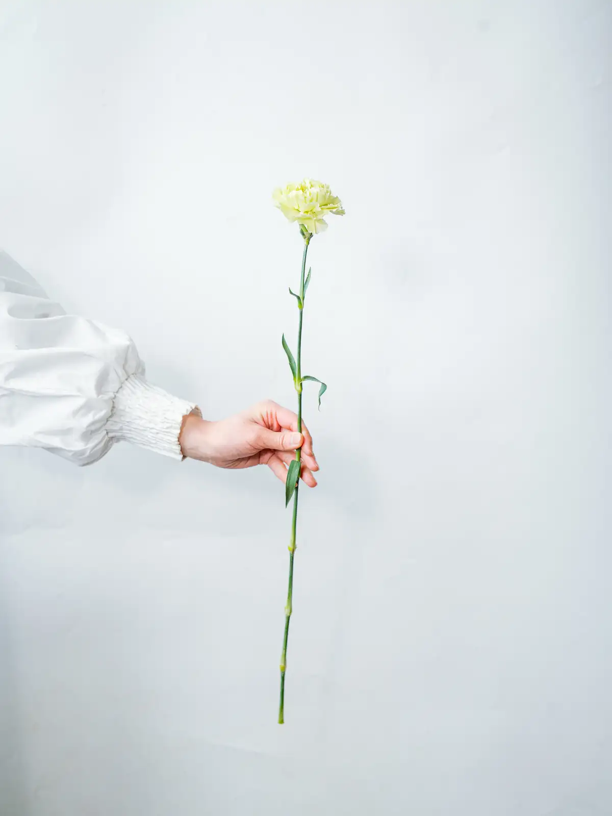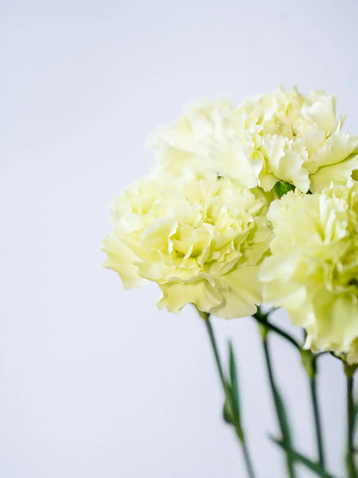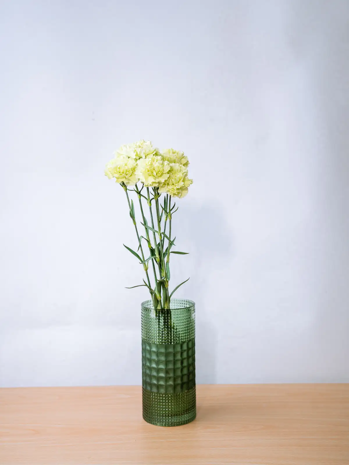 清々しいグリーン色の花弁が個性的なカーネーション。アレンジに清涼感をもたらし、白や淡いカラーの花材との組み合わせで引き立ちます。