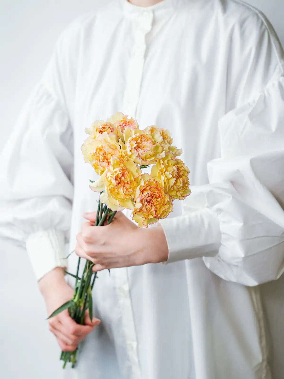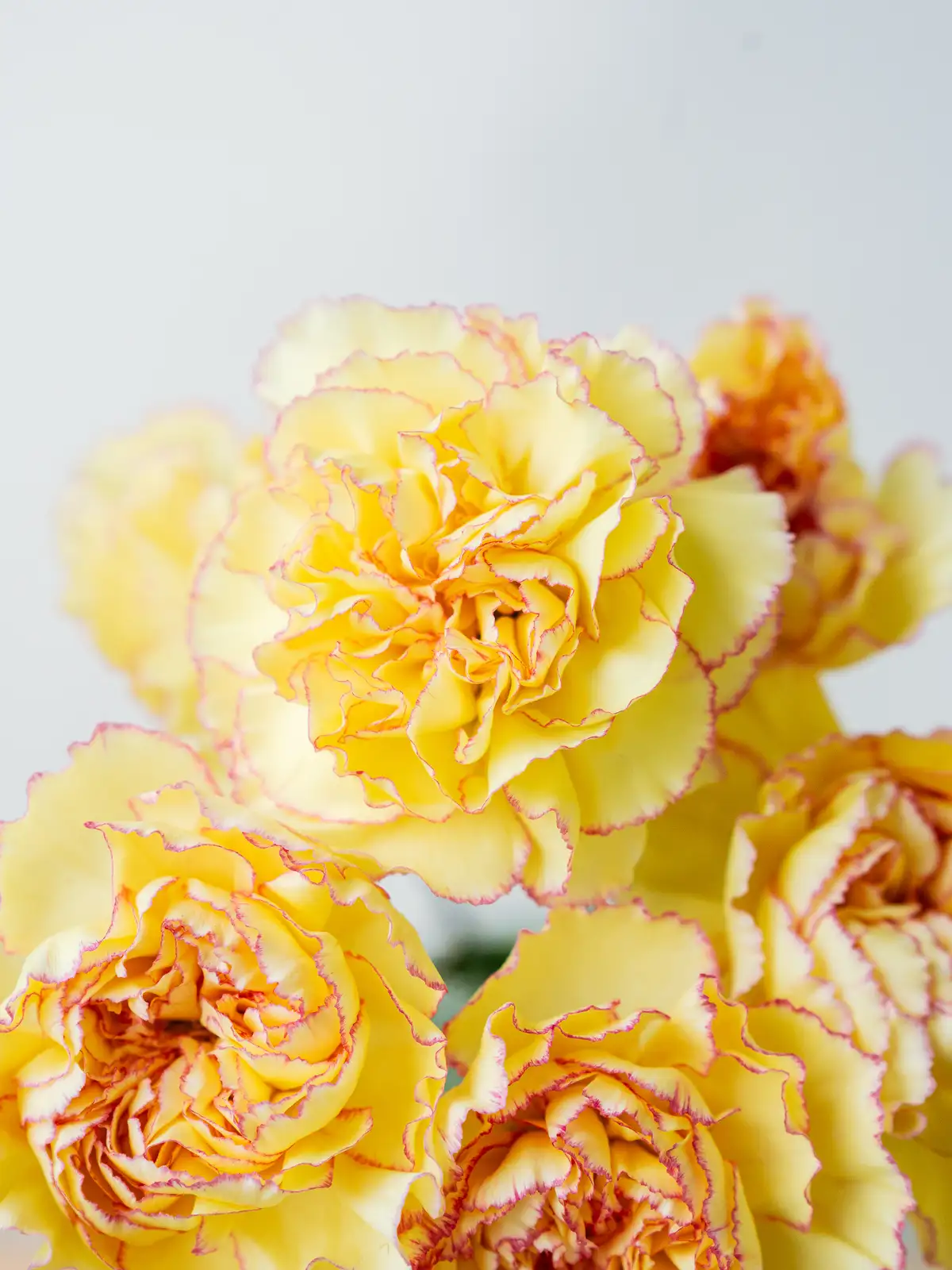 黄色と赤の鮮やかな2色使いが祝い事にふさわしいカーネーション。明るくはっきりした色合いがアレンジに元気なアクセントを加えます。