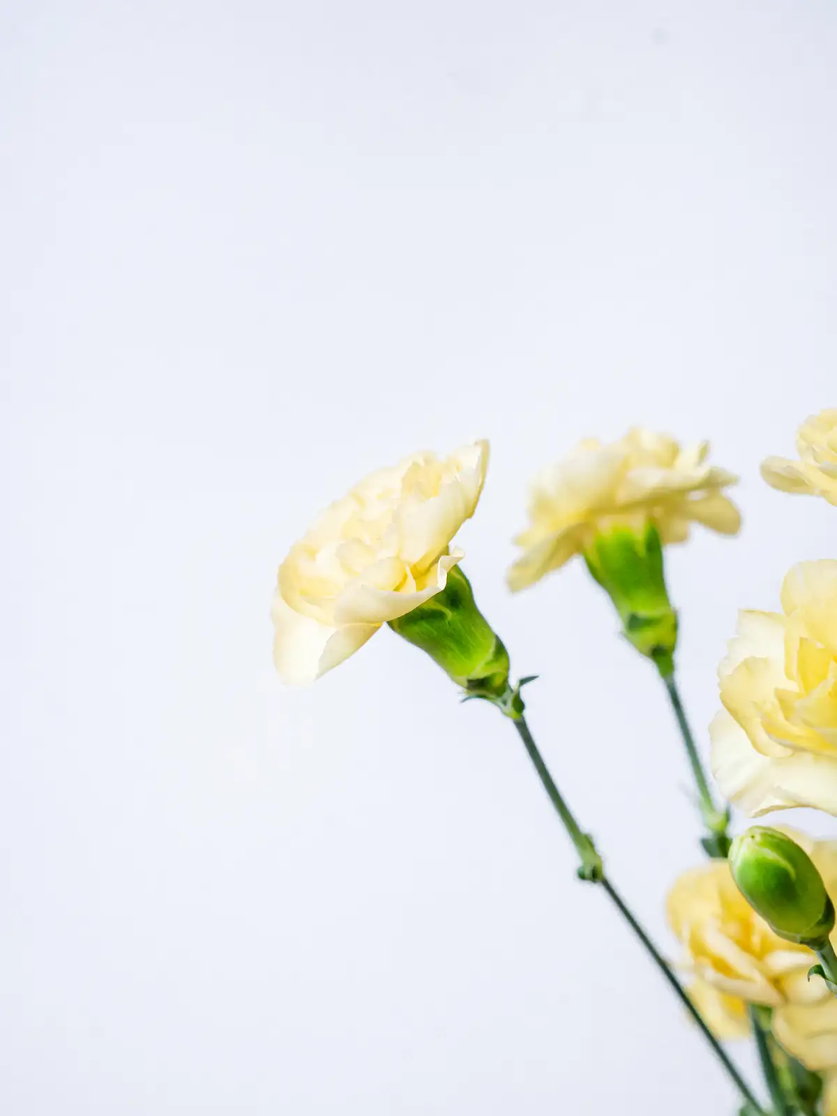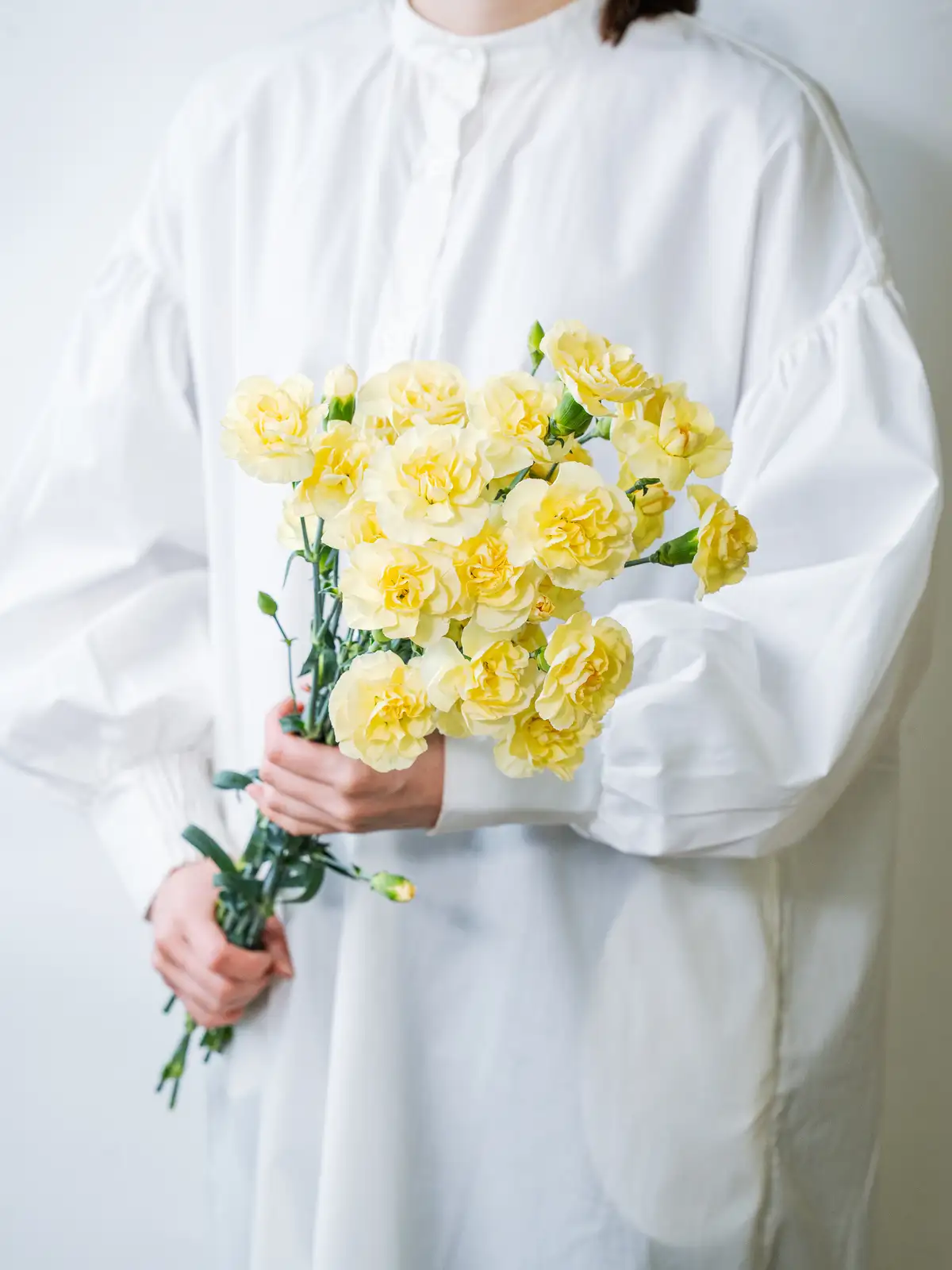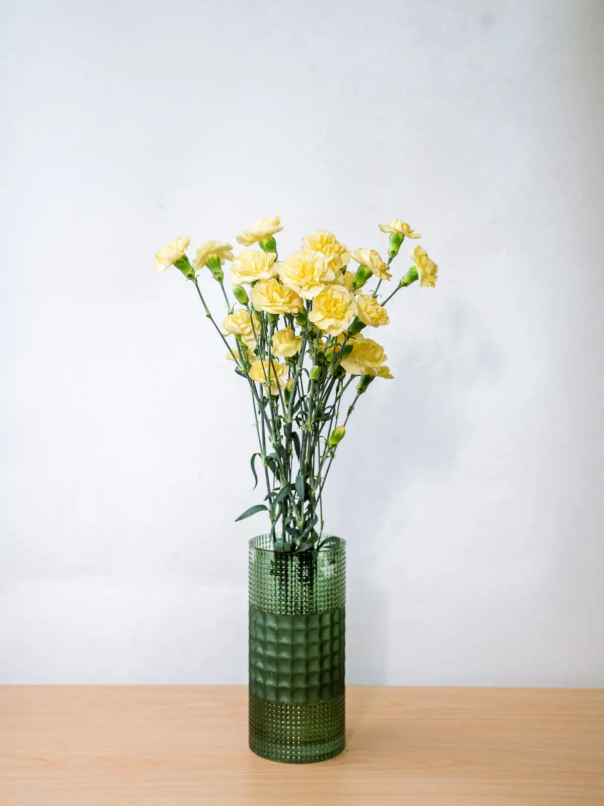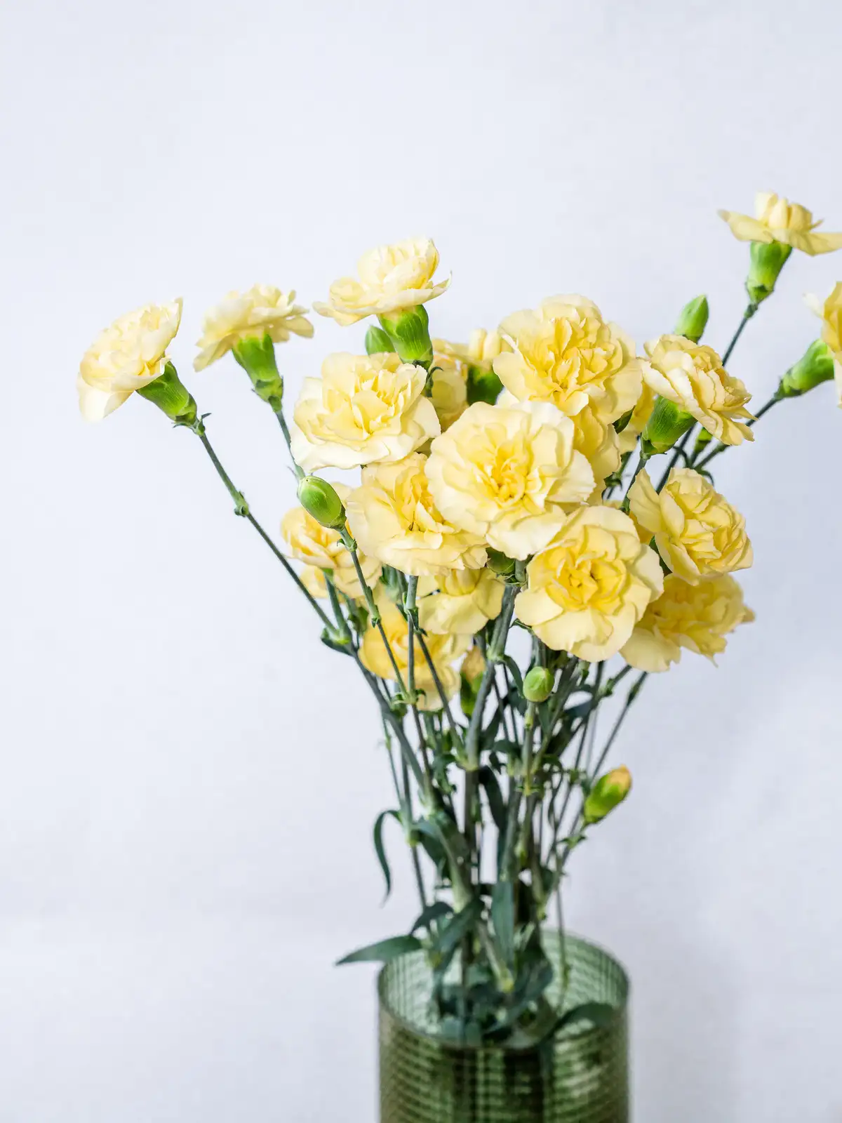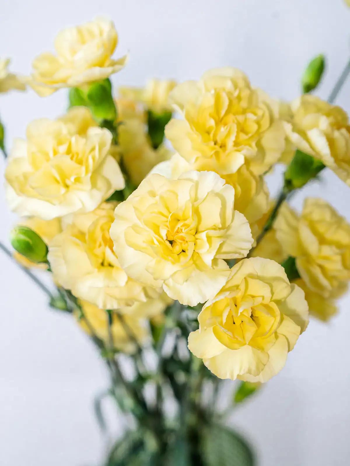 鮮やかな黄色の小花が多数咲くスプレーカーネーション。明るく元気な印象で、春のアレンジや感謝のギフトに彩りを添えます。