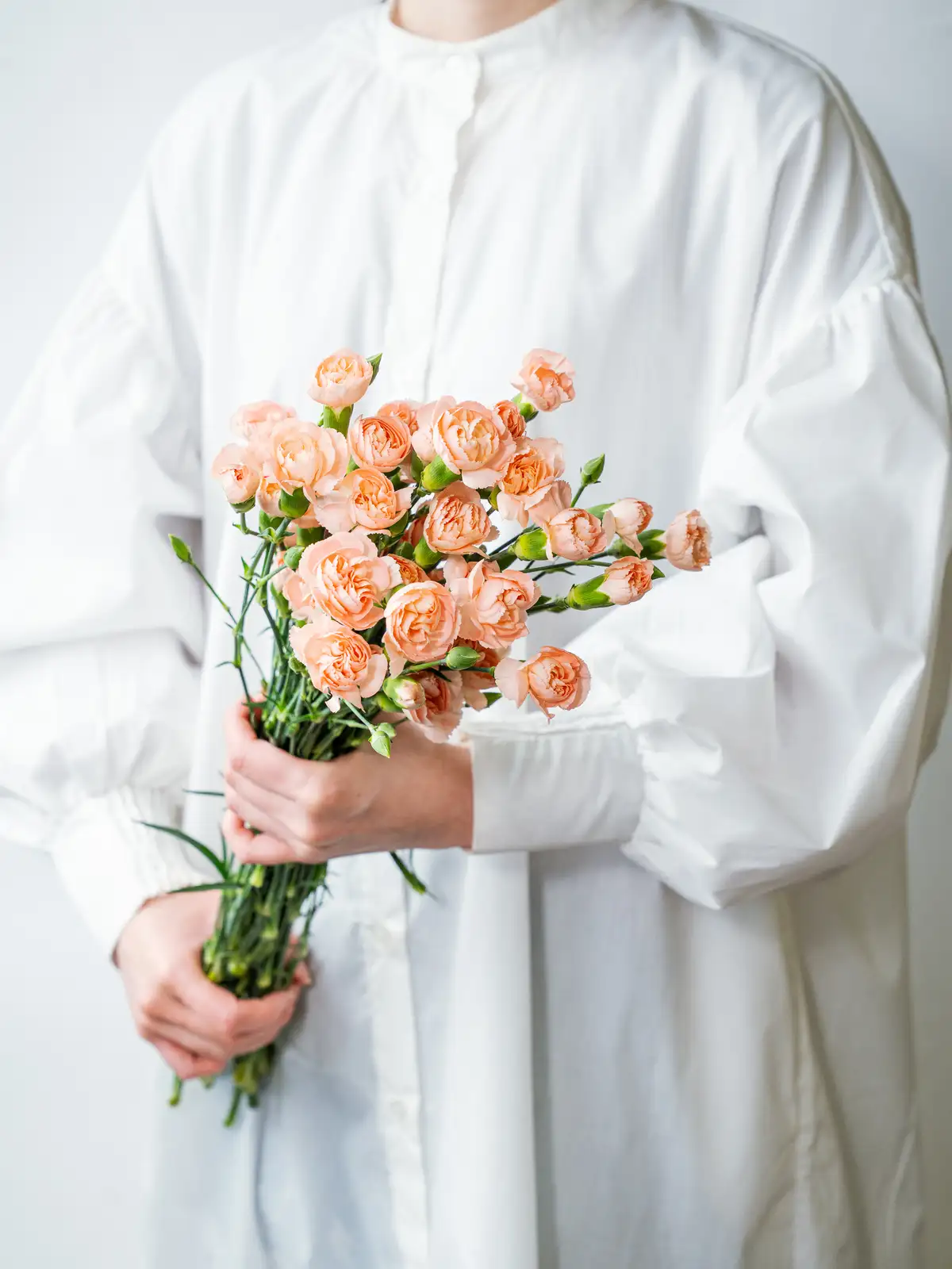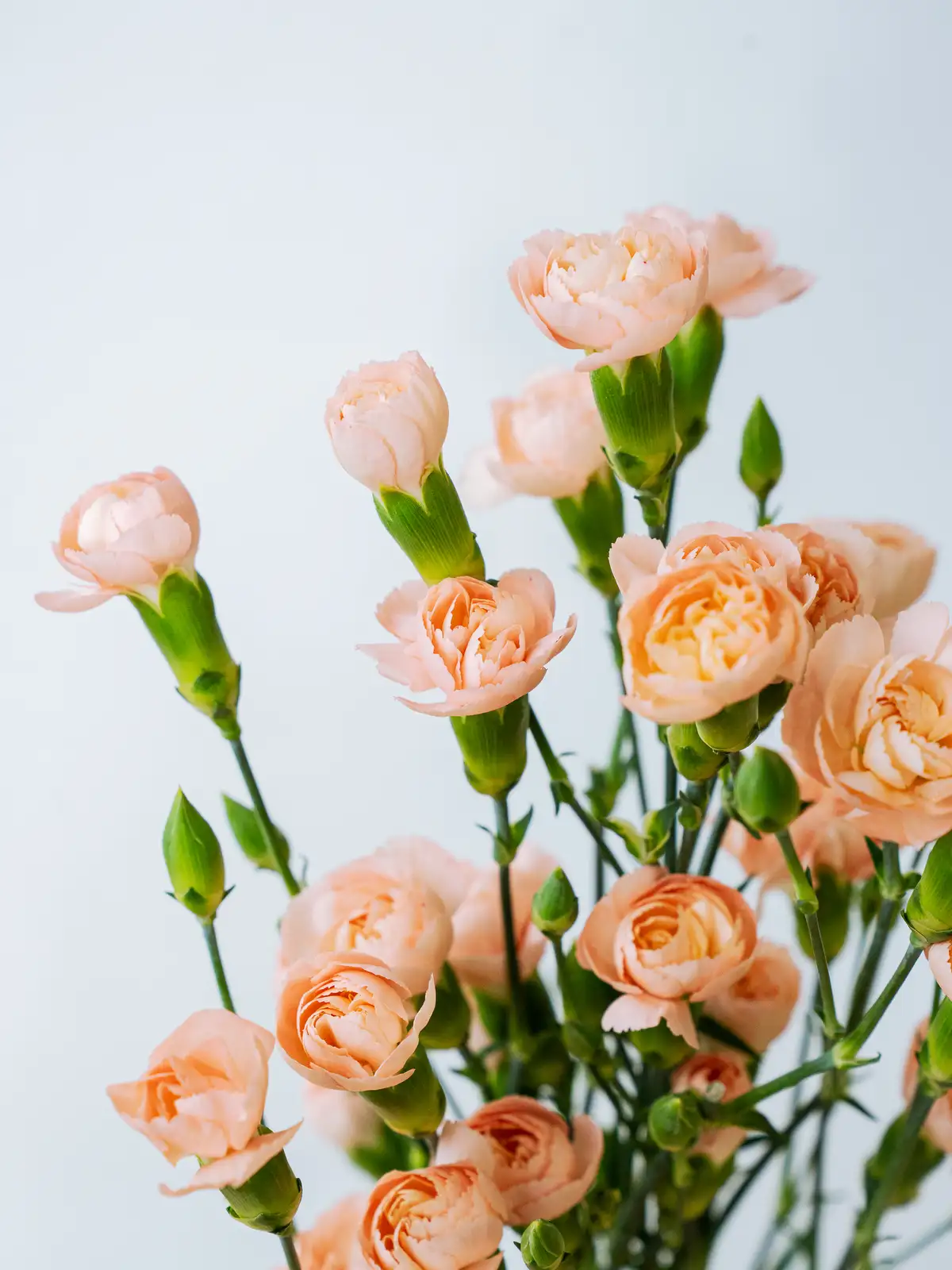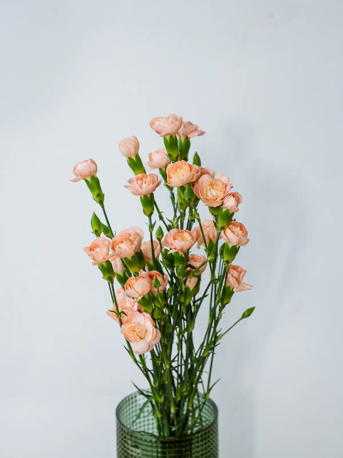 温かみのある淡いオレンジ色の小花が多数咲くスプレーカーネーション。可愛らしい花姿がブーケやアレンジのボリューム感を自然に高めます。