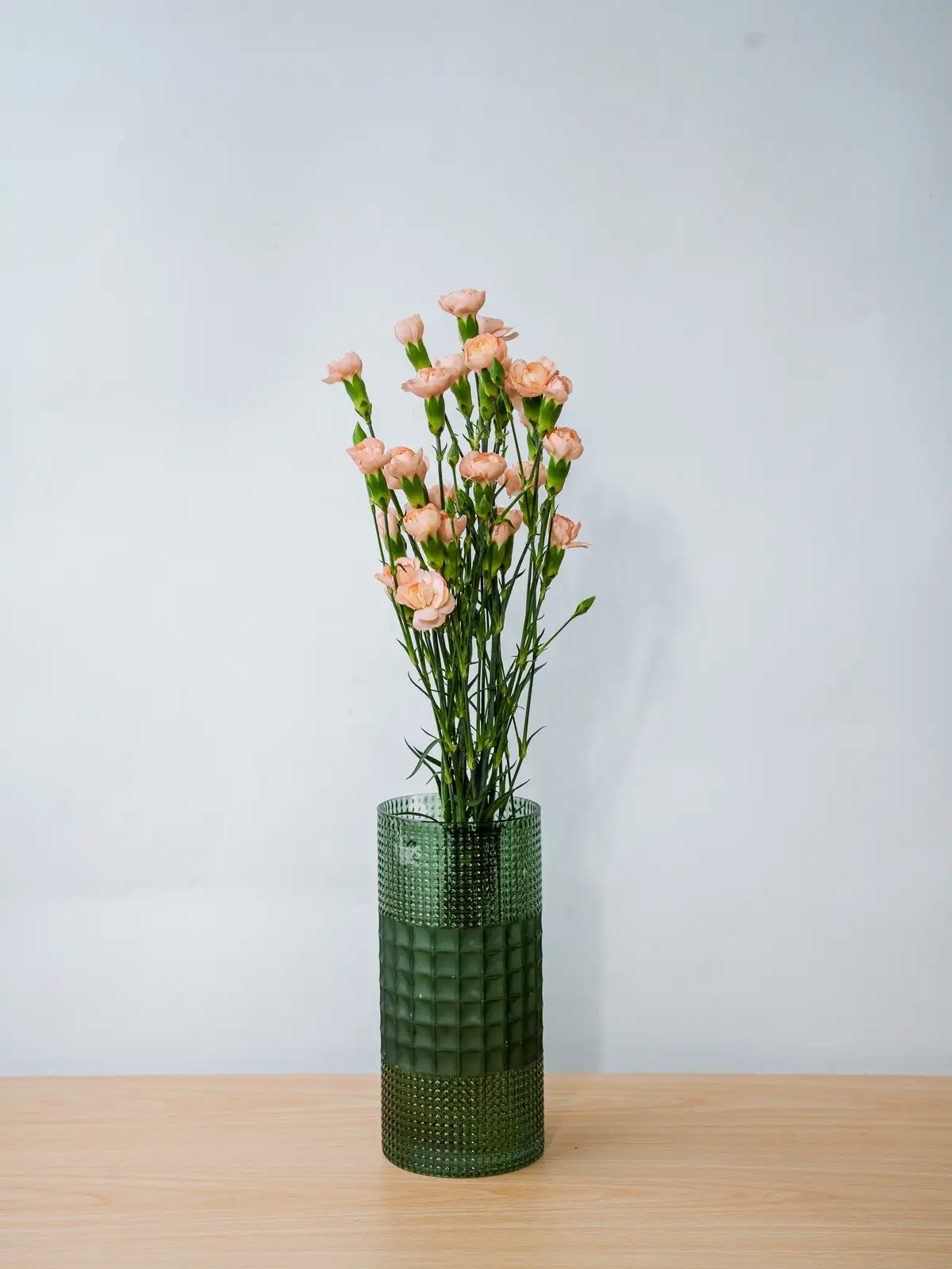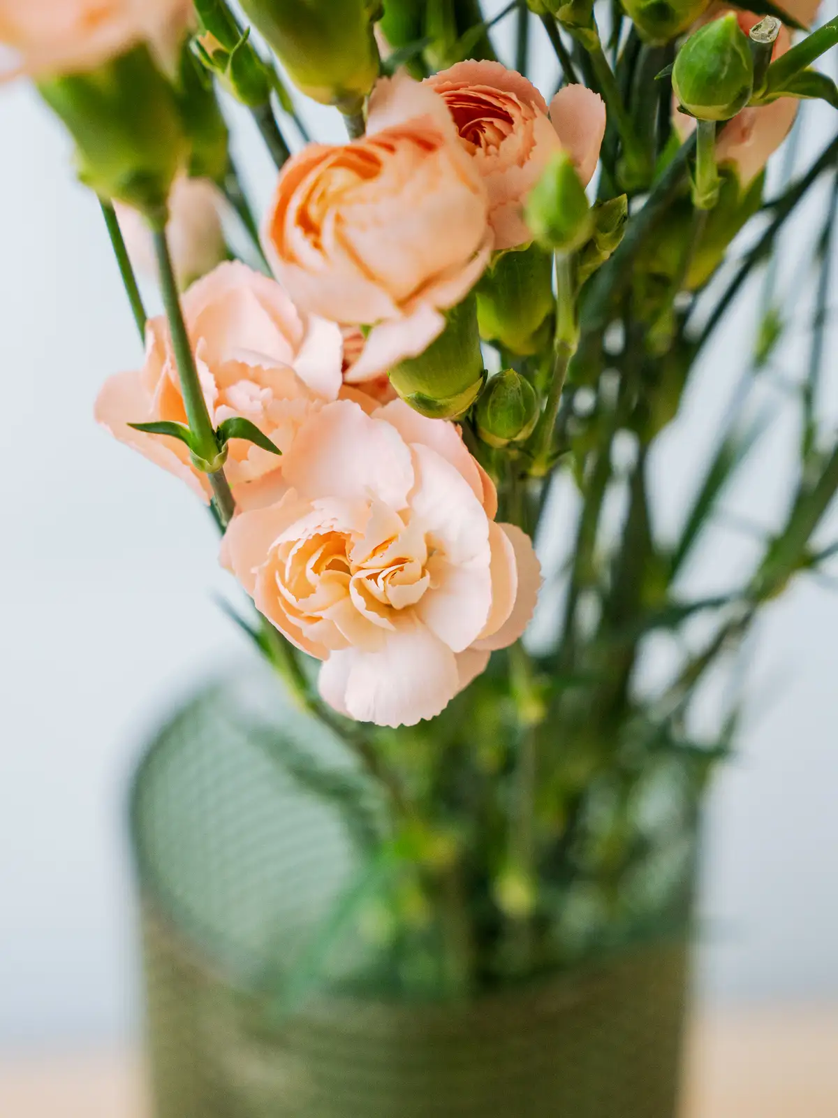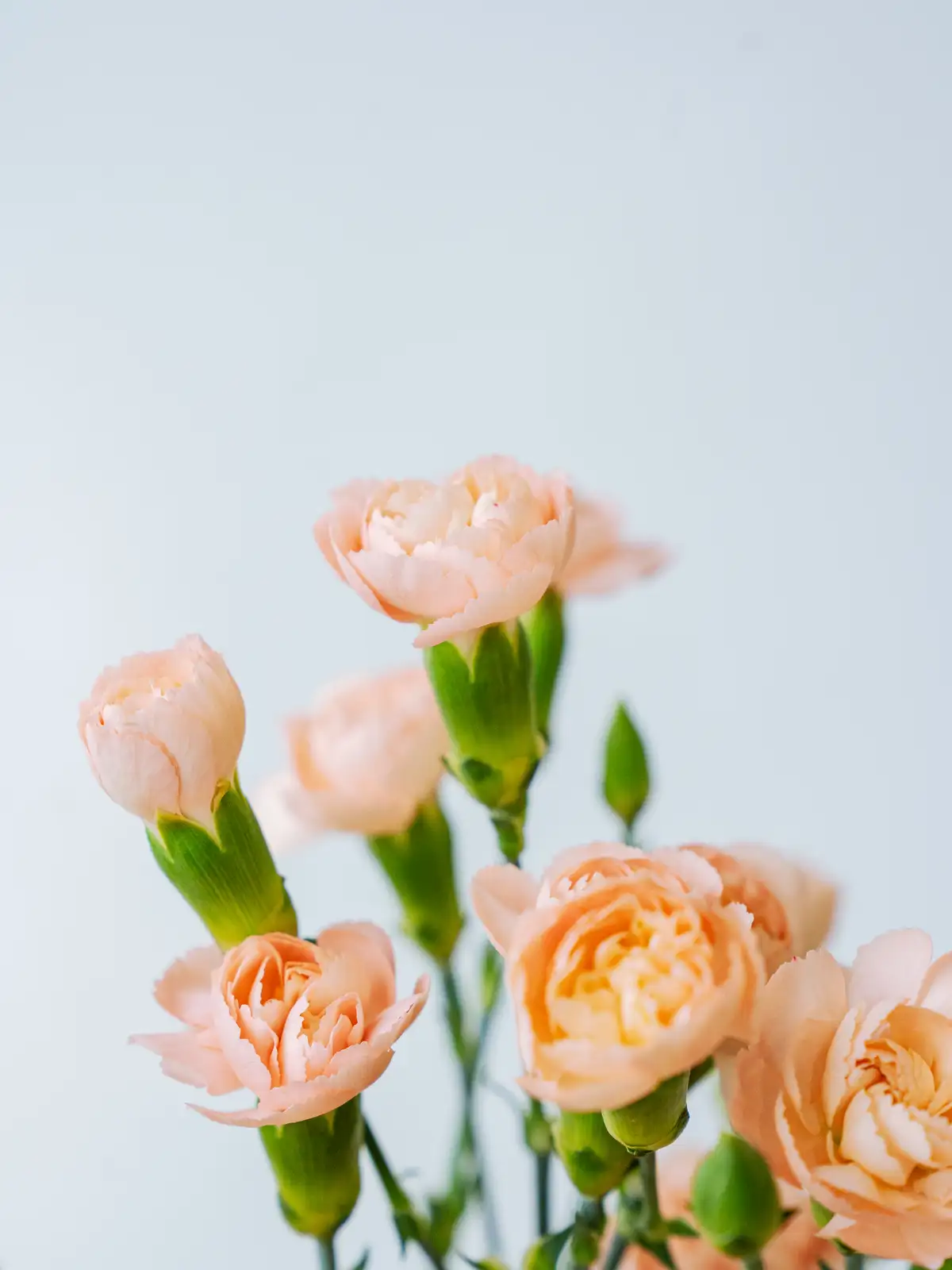 温かみのある淡いオレンジ色の小花が多数咲くスプレーカーネーション。可愛らしい花姿がブーケやアレンジのボリューム感を自然に高めます。