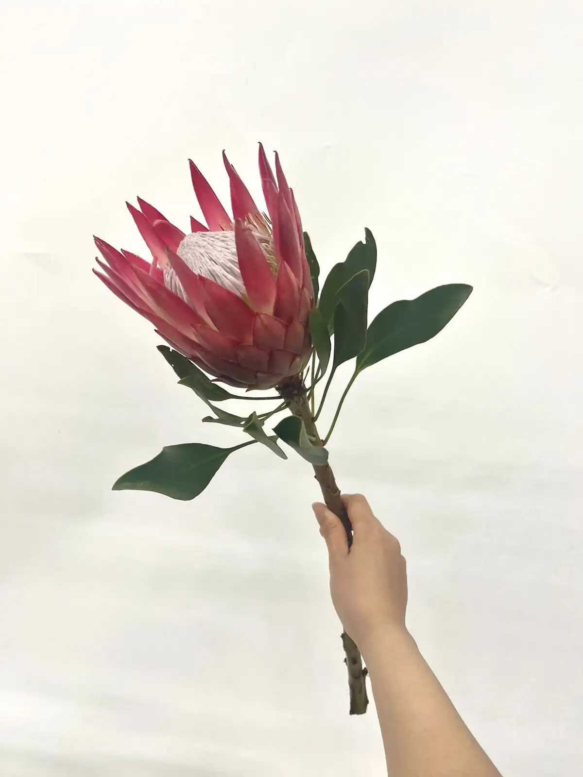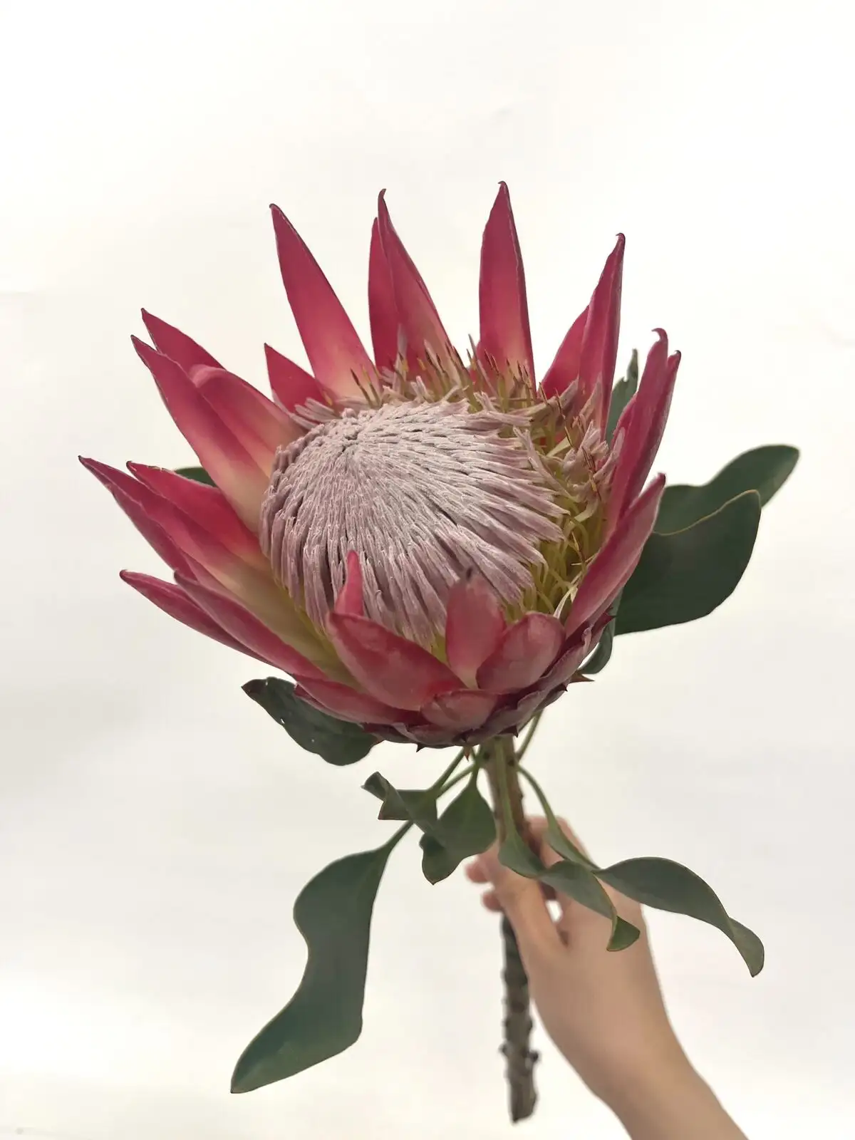 南アフリカ原産の大型プロテアで、花径は最大30cmにもなる圧倒的な存在感を持つ花材。肉厚な花弁が幾重にも重なり、ドライフラワーとしても美しく仕上がります。