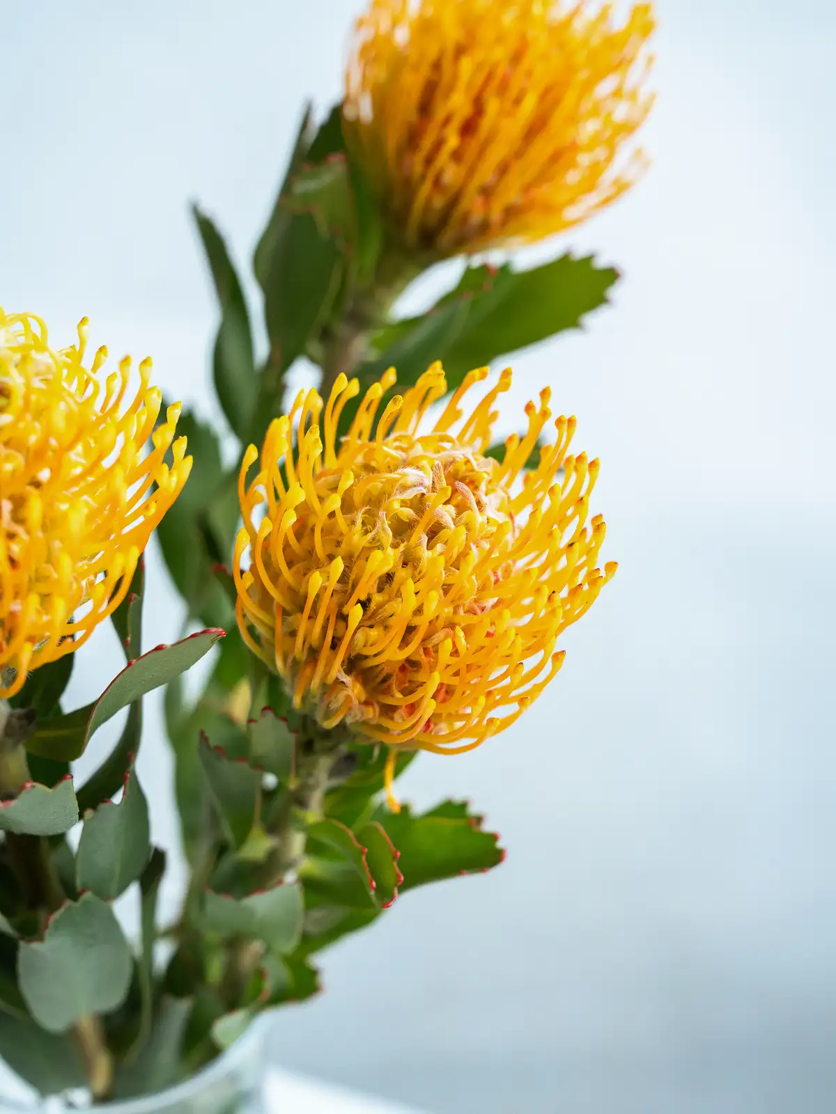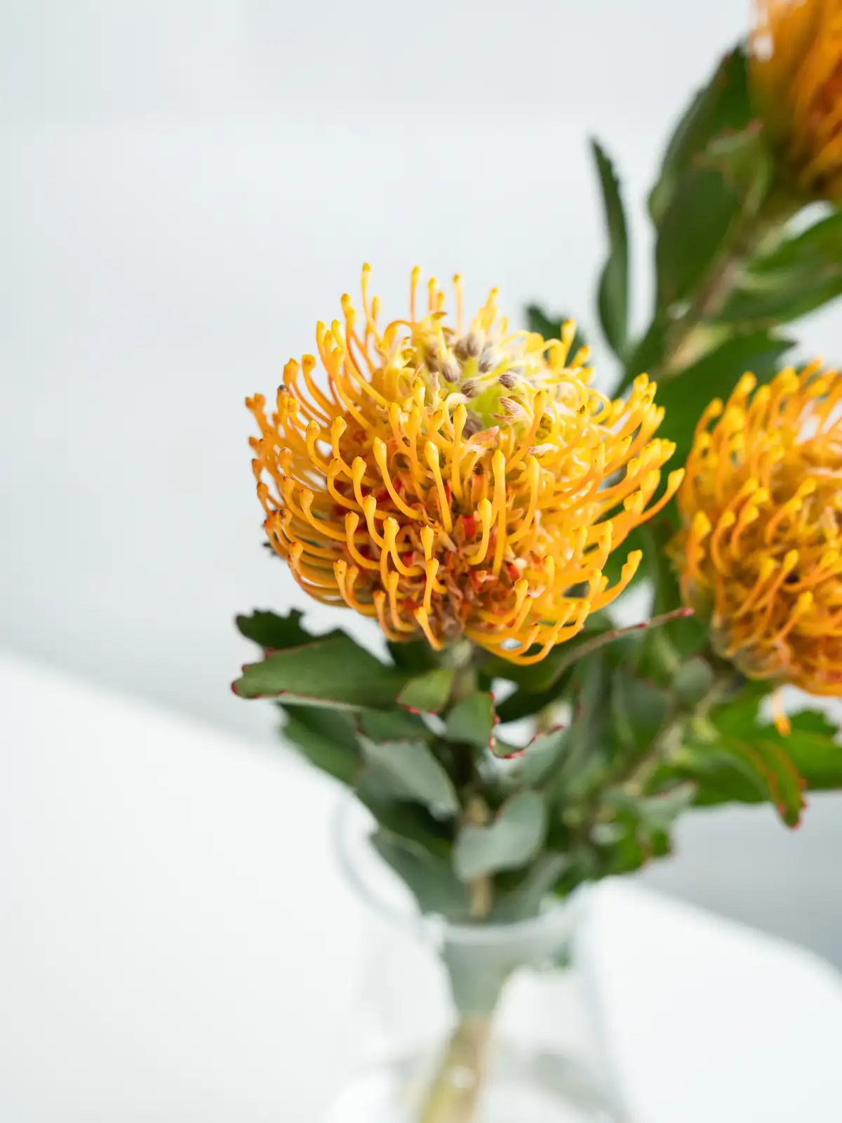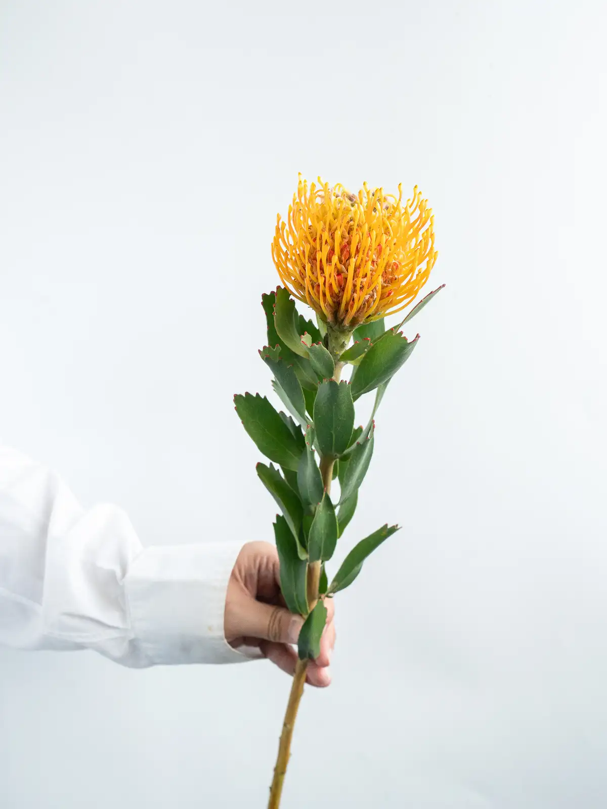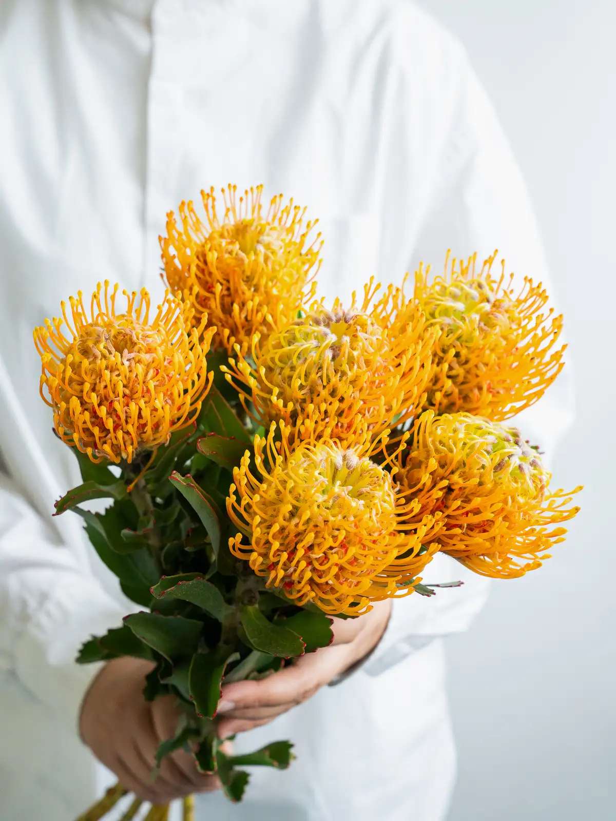 オレンジ色のピンクッション。明るい雰囲気で華やかなアレンジやギフトにぴったりです。